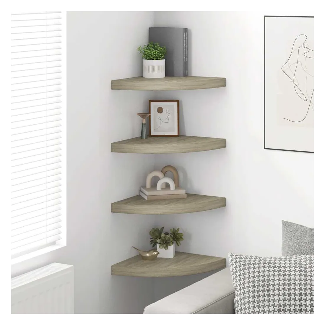 Cet ensemble de 4 étagères d'angle élégantes est idéal pour afficher vos livres préférés, décorations, photos, prix, etc. Cette étagère de présentation, fabriquée en MDF alvéolaire de qualité et en métal solide, est stable et durable. Avec un système de montage invisible, l’étagère murale est facile à installer et sert d’endroit idéal pour stocker des articles tels que des récompenses, des livres, des objets de collection, des ornements, etc. Cette étagère flottante convient à tout décor et transforme un mur vide en une fonctionnalité de design !