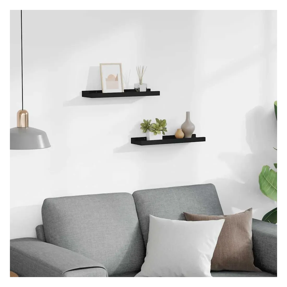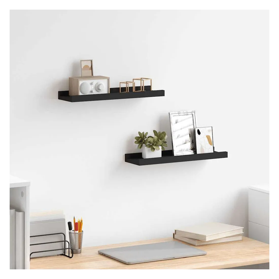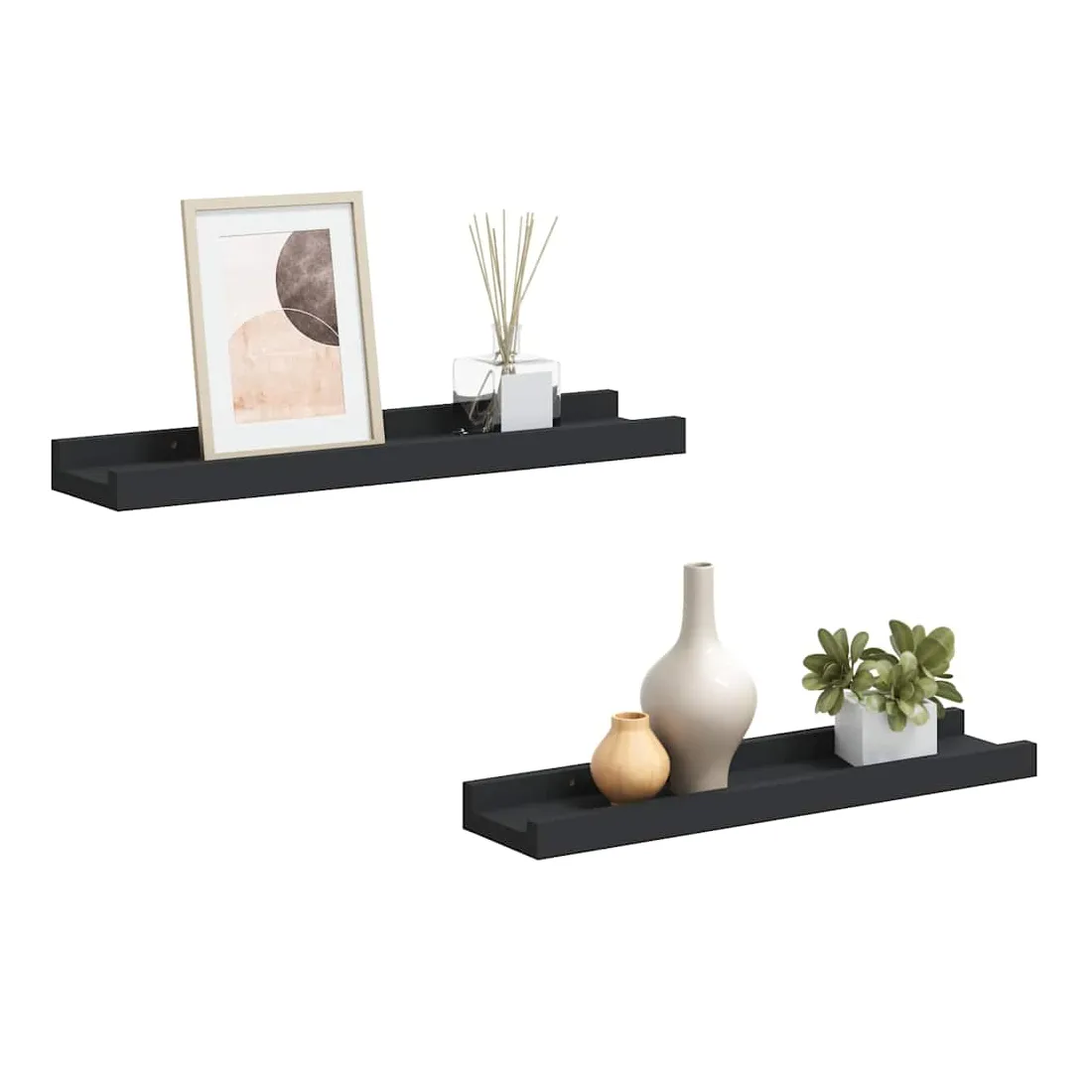 Cet ensemble élégant de rebords d’affichage muraux est conçu pour économiser votre espace au sol, se débarrasser de vos vieux rebords de plancher inclinables. Elles rendent parfaitement vos murs beaux et remplis de vos souvenirs les plus précieux. Fabriquée en MDF laqué, cette étagère est durable et stable. Vous pouvez les monter individuellement ou en rangée sur le mur, offrant ainsi l’espace idéal pour organiser vos cadres photo et décorations. Les photos sont simplement appuyées contre le mur. Le bord avant de la bande de photos protège vos articles décoratifs de tomber. Elle est facile à accrocher avec les trous de serrure situés à l'arrière.