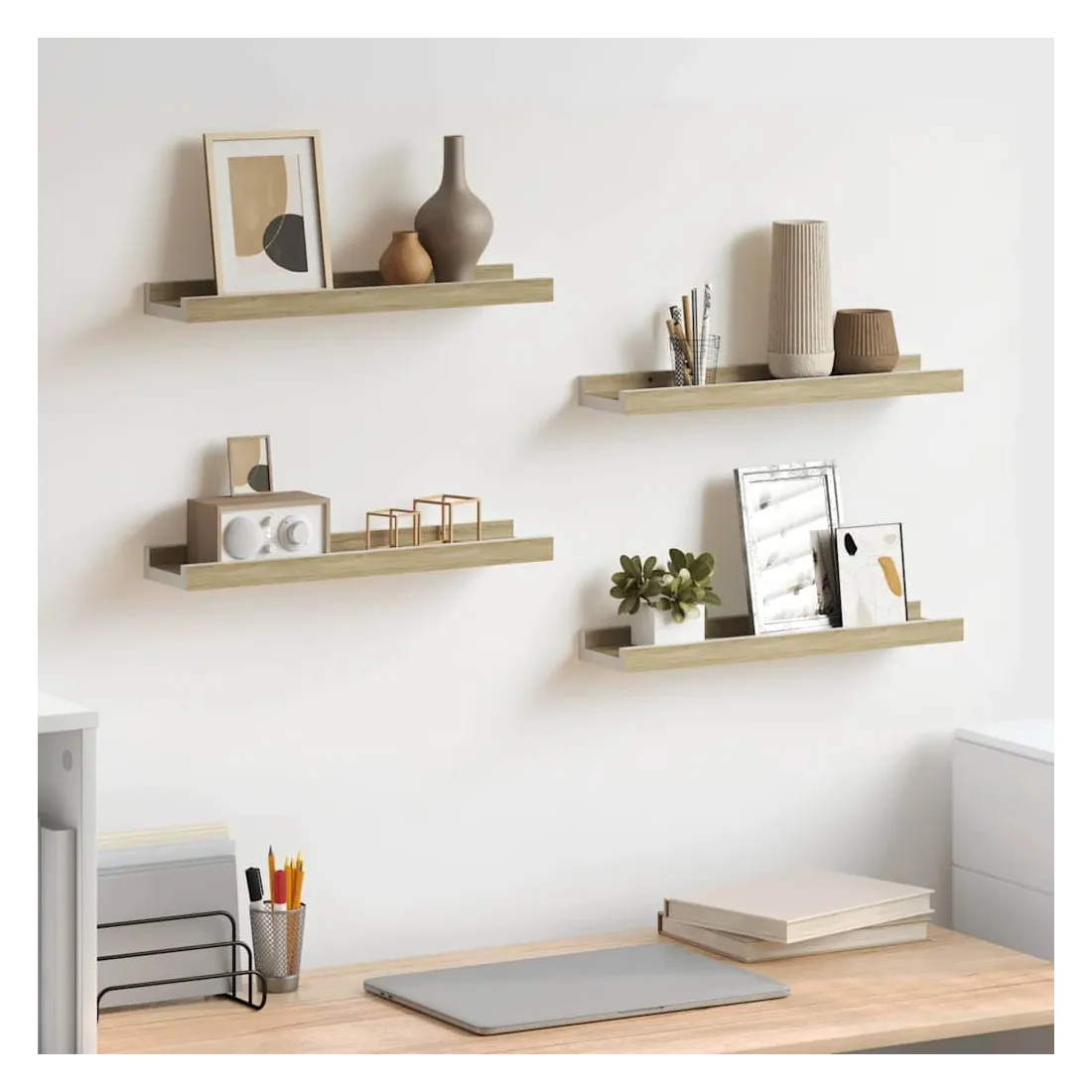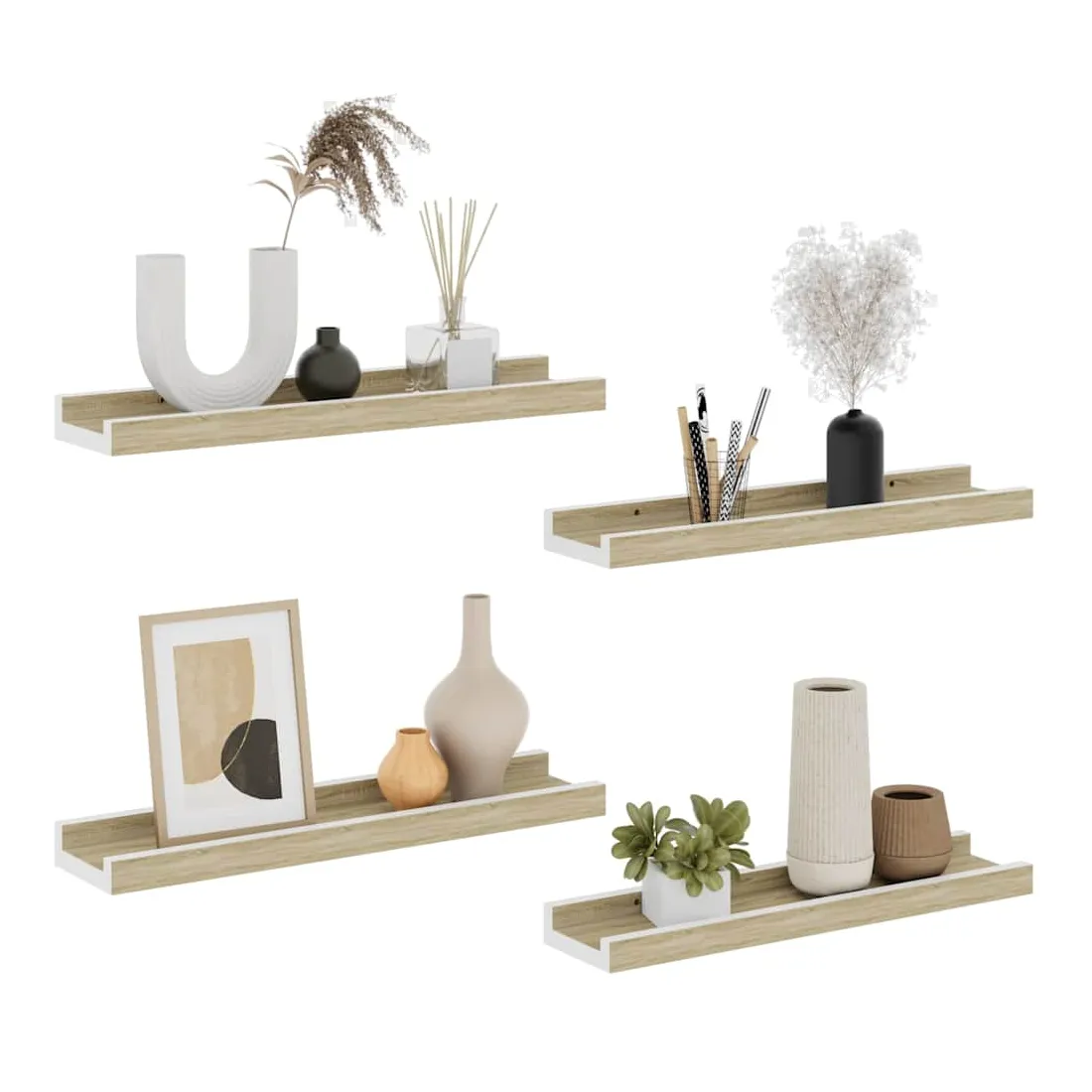 Étagères murales 4 pcs blanc et chêne sonoma 40x9x3 cm
