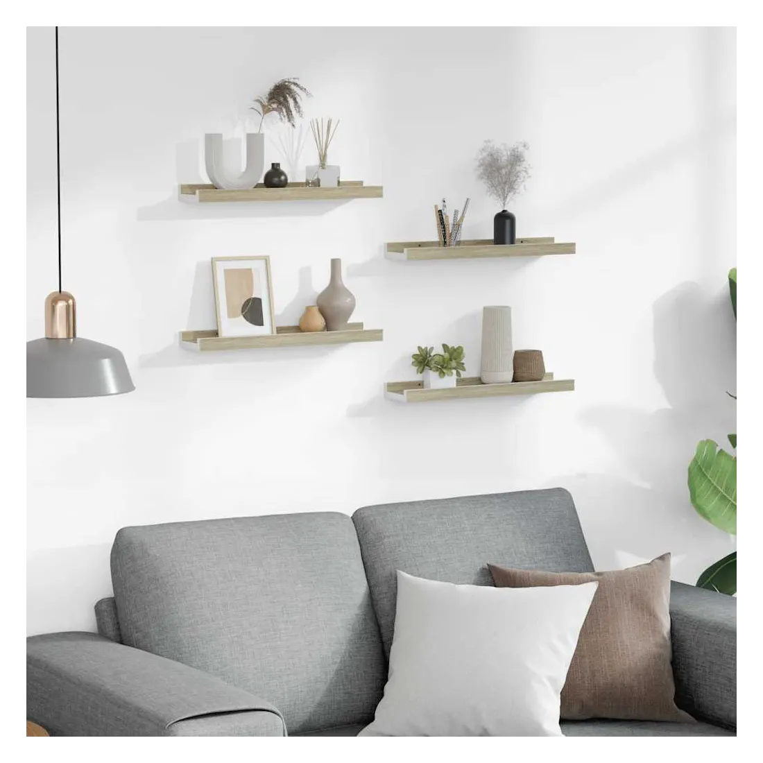 vidaXLMaximisez votre espace de rangement intérieur et transformez votre mur en un charme attrayant avec ces étagères murales pratiques et décoratives ! L’étagère murale est en MDF, ce qui la rend robuste et durable. Elle peut servir comme l’endroit idéal pour stocker les articles tels que des plantes grasses, des livres, des objets de collection, des ornements, etc. Vous pouvez installer l'étagère au-dessus d'une armoire, d'un canapé ou d'une table pour donner à votre pièce un aspect cool et créer une ambiance chic. De plus, l'étagère suspendue est facile à nettoyer avec un chiffon humide.