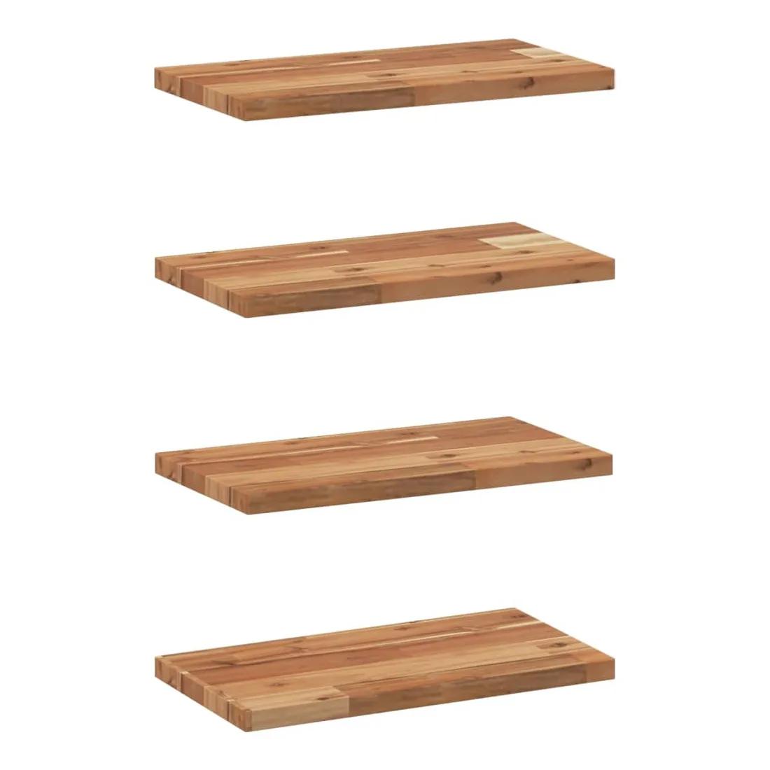 vidaXLTransformez votre mur nu en un élément de décoration et un espace de rangement pratique et efficace pour votre espace de vie grâce à ces étagères flottantes en bois ! Matériau robuste et stable : le bois d'acacia massif est connu pour sa solidité et sa durabilité. Ses couleurs variées et ses grains uniques lui confèrent un aspect attrayant. Avec une excellente stabilité et résistance aux intempéries, il est idéal pour la fabrication de mobilier d'intérieur et d'extérieur.Surface finie à l’huile : cette planche d'étagère est faite de bois d'acacia avec une finition à l'huile qui la rend plus résistante à l'humidité et aux dégâts d'eau, tout en préservant son caractère unique.Bricolage aléatoire : vous pouvez disposer les étagères selon un motif aléatoire, comme droite-gauche, de haut en bas ou dans un design en forme d’échelle. En utilisant plus d’étagères murales, vous pouvez créer des motifs uniques et personnalisés.Gain de place : cette étagère flottante optimise l'espace mural inutilisé en le transformant en un espace de rangement compact et efficace.Multifonctionnelle : cette étagère murale polyvalente peut être utilisée dans différents environnements, tels que la cuisine, la salle de bain, le salon, la chambre à coucher, le bureau, le garage, etc. Bon à savoir :Chaque article est unique, avec des variations de couleurs et de grains. La livraison est aléatoire, ce qui garantit l'exclusivité et l'individualité de votre produit.La livraison comprend uniquement les étagères murales. Les vis et les supports ne sont pas inclus dans la livraison.Il est recommandé de réappliquer une finition à l’huile pour conserver sa qualité et son apparence au moins une fois par an.