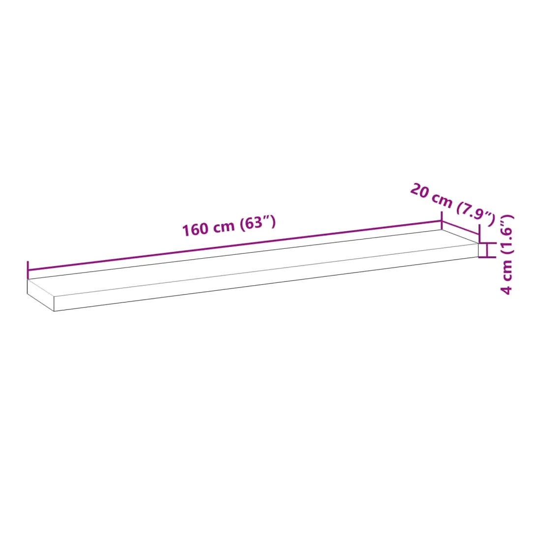 - 160 x 20 x 4 cm