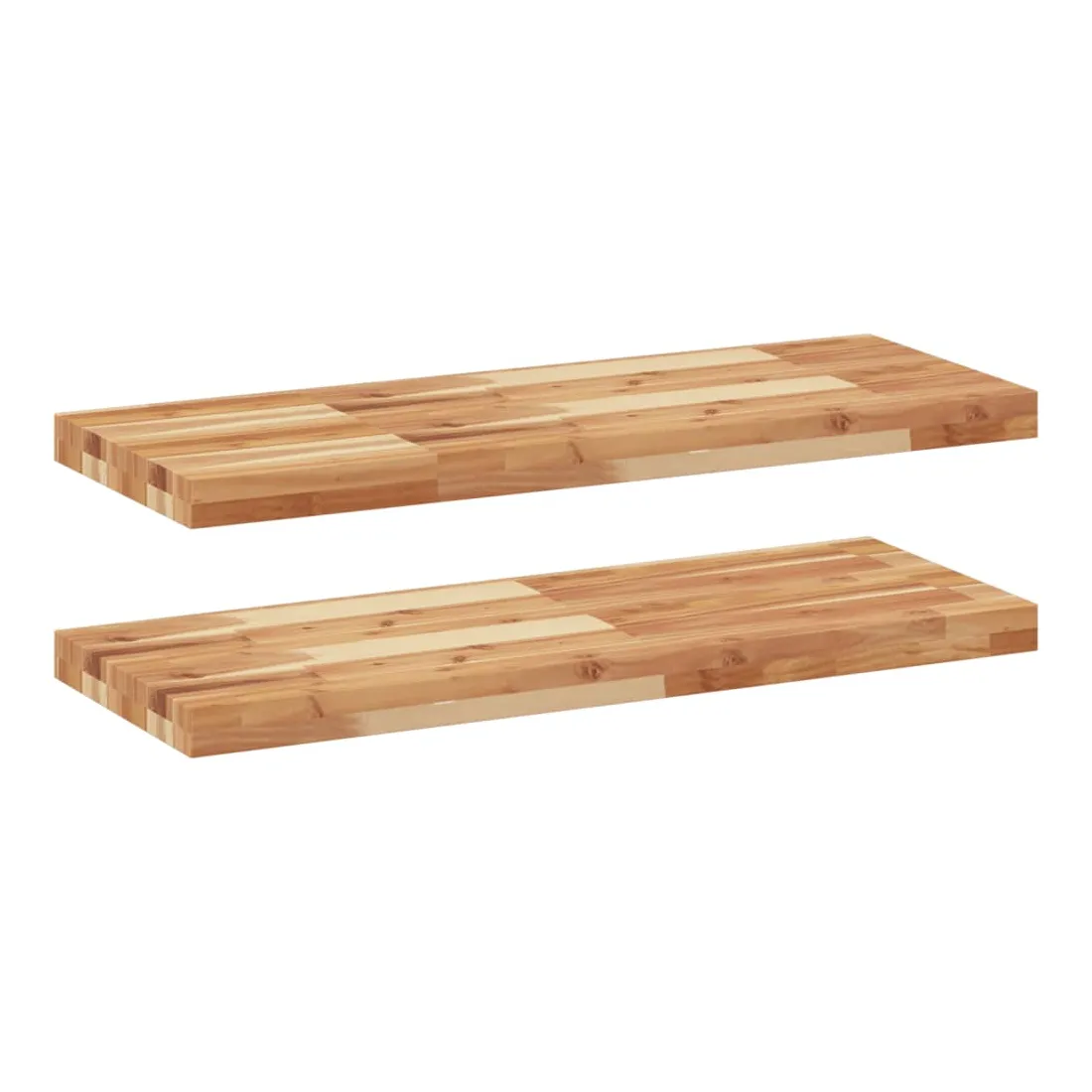 vidaXLTransformez votre mur nu en un élément de décoration et un espace de rangement pratique et efficace pour votre espace de vie grâce à ces étagères flottantes en bois ! Matériau robuste et stable : le bois d'acacia massif est connu pour sa solidité et sa durabilité. Ses couleurs variées et ses grains uniques lui confèrent un aspect attrayant. Avec une excellente stabilité et résistance aux intempéries, il est idéal pour la fabrication de mobilier d'intérieur et d'extérieur.Surface finie à l’huile : cette planche d'étagère est faite de bois d'acacia avec une finition à l'huile qui la rend plus résistante à l'humidité et aux dégâts d'eau, tout en préservant son caractère unique.Bricolage aléatoire : vous pouvez disposer les étagères selon un motif aléatoire, comme droite-gauche, de haut en bas ou dans un design en forme d’échelle. En utilisant plus d’étagères murales, vous pouvez créer des motifs uniques et personnalisés.Gain de place : cette étagère flottante optimise l'espace mural inutilisé en le transformant en un espace de rangement compact et efficace.Multifonctionnelle : cette étagère murale polyvalente peut être utilisée dans différents environnements, tels que la cuisine, la salle de bain, le salon, la chambre à coucher, le bureau, le garage, etc. Bon à savoir :Chaque article est unique, avec des variations de couleurs et de grains. La livraison est aléatoire, ce qui garantit l'exclusivité et l'individualité de votre produit.La livraison comprend uniquement les étagères murales. Les vis et les supports ne sont pas inclus dans la livraison.Il est recommandé de réappliquer une finition à l’huile pour conserver sa qualité et son apparence au moins une fois par an.