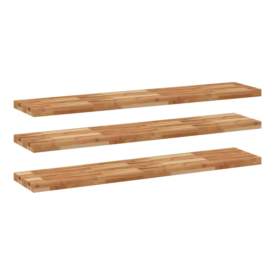 Transformez votre mur nu en un élément de décoration et un espace de rangement pratique et efficace pour votre espace de vie grâce à ces étagères flottantes en bois ! Matériau robuste et stable : le bois d'acacia massif est connu pour sa solidité et sa durabilité. Ses couleurs variées et ses grains uniques lui confèrent un aspect attrayant. Avec une excellente stabilité et résistance aux intempéries, il est idéal pour la fabrication de mobilier d'intérieur et d'extérieur.Surface finie à l’huile : cette planche d'étagère est faite de bois d'acacia avec une finition à l'huile qui la rend plus résistante à l'humidité et aux dégâts d'eau, tout en préservant son caractère unique.Bricolage aléatoire : vous pouvez disposer les étagères selon un motif aléatoire, comme droite-gauche, de haut en bas ou dans un design en forme d’échelle. En utilisant plus d’étagères murales, vous pouvez créer des motifs uniques et personnalisés.Gain de place : cette étagère flottante optimise l'espace mural inutilisé en le transformant en un espace de rangement compact et efficace.Multifonctionnelle : cette étagère murale polyvalente peut être utilisée dans différents environnements, tels que la cuisine, la salle de bain, le salon, la chambre à coucher, le bureau, le garage, etc. Bon à savoir :Chaque article est unique, avec des variations de couleurs et de grains. La livraison est aléatoire, ce qui garantit l'exclusivité et l'individualité de votre produit.La livraison comprend uniquement les étagères murales. Les vis et les supports ne sont pas inclus dans la livraison.Il est recommandé de réappliquer une finition à l’huile pour conserver sa qualité et son apparence au moins une fois par an.