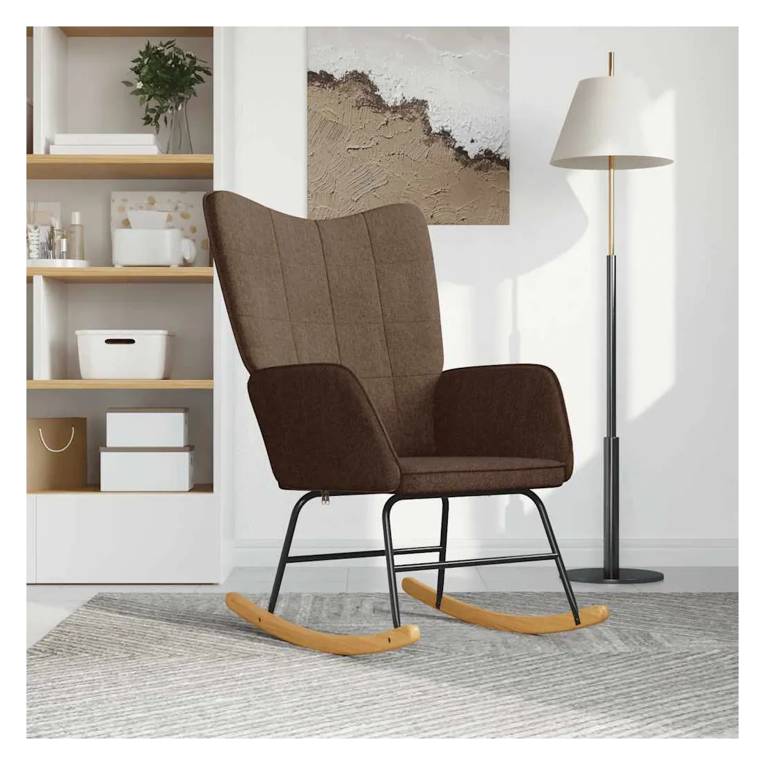 Cette chaise à bascule au design chic et élégant apportera une touche de modernité à votre décoration. Dotée de quelques blocs, cette chaise de relaxation est esthétique. Grâce à sa mousse rembourrée recouverte d'un tissu doux au toucher, vous pourrez profiter d'un confort optimal pendant votre temps d'assise. Avec la conception de longs rails à bascule, le fauteuil ne basculera pas facilement. De plus, soutenue par un cadre et des pieds en acier, ainsi que par des rails à bascule en bois, la chaise de salon est stable et durable.