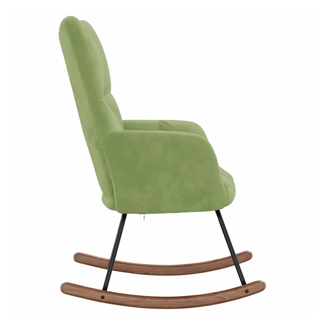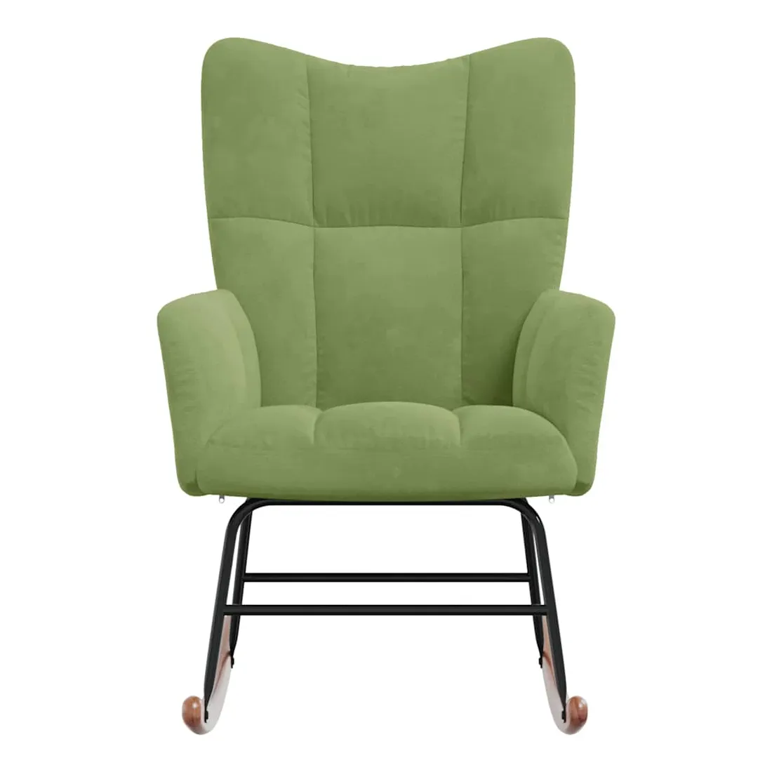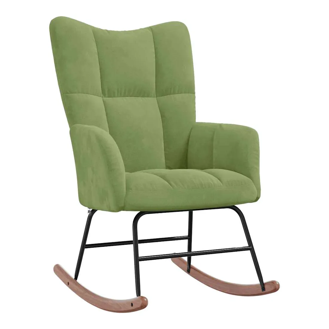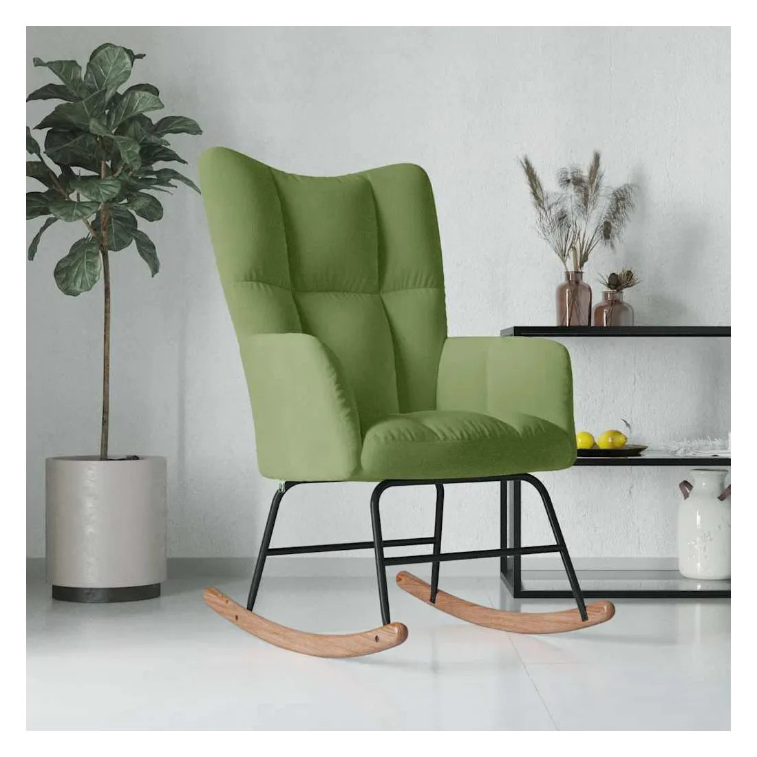 Cette chaise à bascule au design chic et élégant apporte une touche de modernité à votre décoration. Dotée de quelques blocs, cette chaise de relaxation est esthétique. Grâce à sa mousse bien rembourrée recouverte de velours doux au toucher, vous pourrez profiter d'un confort optimal pendant votre temps d'assise. Avec la conception de longs rails à bascule, le fauteuil ne basculera pas facilement. De plus, soutenue par un cadre et des pieds en acier, ainsi que par des rails à bascule en bois, la chaise de salon est stable et durable.