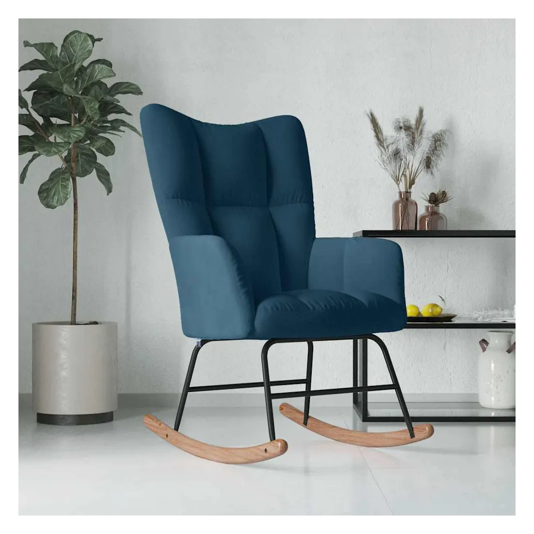 Cette chaise à bascule au design chic et élégant apporte une touche de modernité à votre décoration. Dotée de quelques blocs, cette chaise de relaxation est esthétique. Grâce à sa mousse bien rembourrée recouverte de velours doux au toucher, vous pourrez profiter d'un confort optimal pendant votre temps d'assise. Avec la conception de longs rails à bascule, le fauteuil ne basculera pas facilement. De plus, soutenue par un cadre et des pieds en acier, ainsi que par des rails à bascule en bois, la chaise de salon est stable et durable.