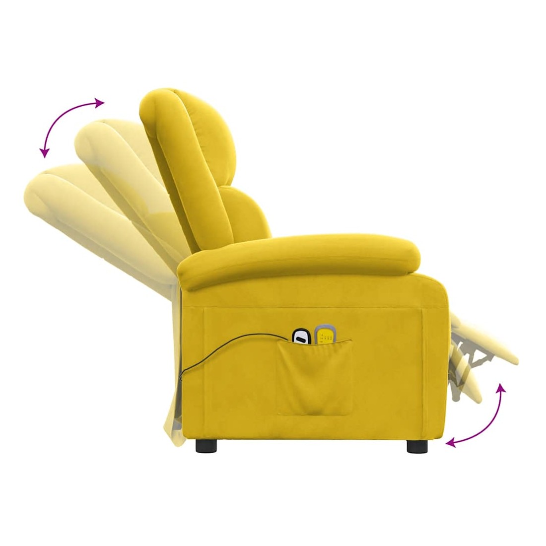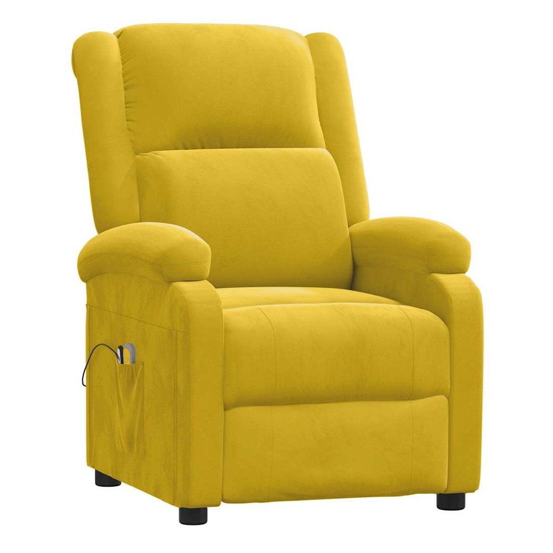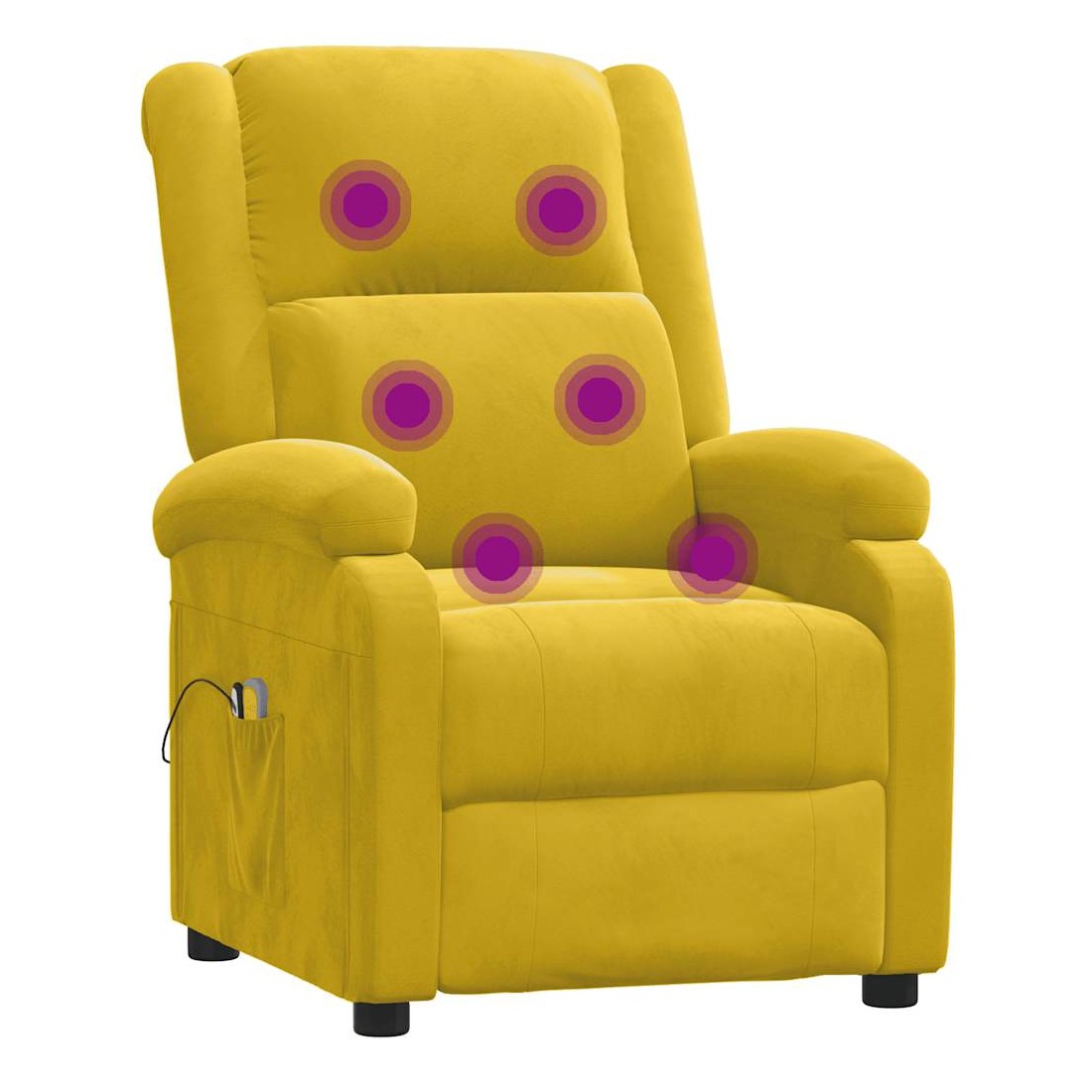 vidaXLAsseyez-vous et détendez-vous dans ce fauteuil de massage électrique très confortable ! Fonction d'inclinaison électrique : le fauteuil inclinable est équipé d'un moteur électrique pour la fonction d'inclinaison. Il offre 3 positions d'inclinaison et vous pouvez facilement régler le dossier et le repose-pied à l'aide de la commande manuelle à 2 boutons incluse, en fonction de votre confort.Fonction de vibration : les 6 points de massage vous permettent de faire l'expérience d'un massage mieux ciblé. De plus, la télécommande incluse vous permet de choisir différents programmes de massage. La fonction de massage est alimentée par le connecteur USB, mais la source d'alimentation USB 5V certifiée n'est pas incluse.Expérience d'assise confortable : le siège, le dossier et les larges accoudoirs rembourrés épais recouverts de velours procurent une sensation confortable et chaleureuse, vous faisant vous sentir enlacé lorsque vous êtes assis. Le velours est un tissu doux et confortable qui est agréable sur la peau.Cadre solide et stable : le cadre en bois et en métal offre une structure solide et une grande stabilité. Ce fauteuil inclinable est confortable et durable.
