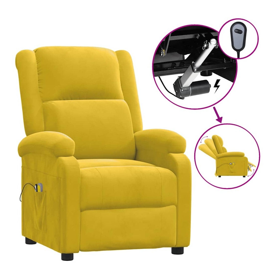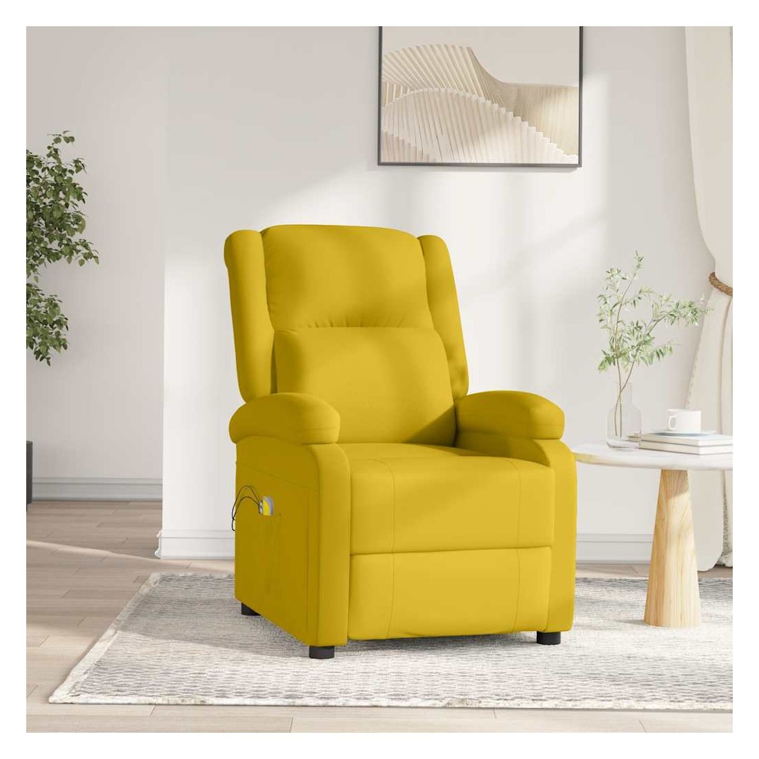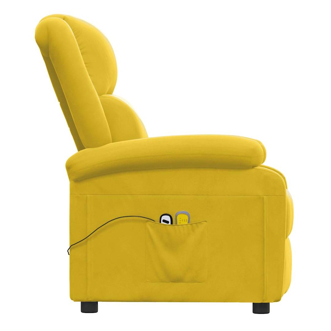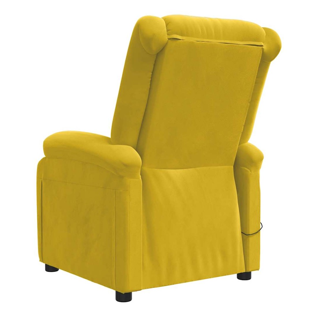 vidaXLAsseyez-vous et détendez-vous dans ce fauteuil de massage électrique très confortable ! Fonction d'inclinaison électrique : le fauteuil inclinable est équipé d'un moteur électrique pour la fonction d'inclinaison. Il offre 3 positions d'inclinaison et vous pouvez facilement régler le dossier et le repose-pied à l'aide de la commande manuelle à 2 boutons incluse, en fonction de votre confort.Fonction de vibration : les 6 points de massage vous permettent de faire l'expérience d'un massage mieux ciblé. De plus, la télécommande incluse vous permet de choisir différents programmes de massage. La fonction de massage est alimentée par le connecteur USB, mais la source d'alimentation USB 5V certifiée n'est pas incluse.Expérience d'assise confortable : le siège, le dossier et les larges accoudoirs rembourrés épais recouverts de velours procurent une sensation confortable et chaleureuse, vous faisant vous sentir enlacé lorsque vous êtes assis. Le velours est un tissu doux et confortable qui est agréable sur la peau.Cadre solide et stable : le cadre en bois et en métal offre une structure solide et une grande stabilité. Ce fauteuil inclinable est confortable et durable.