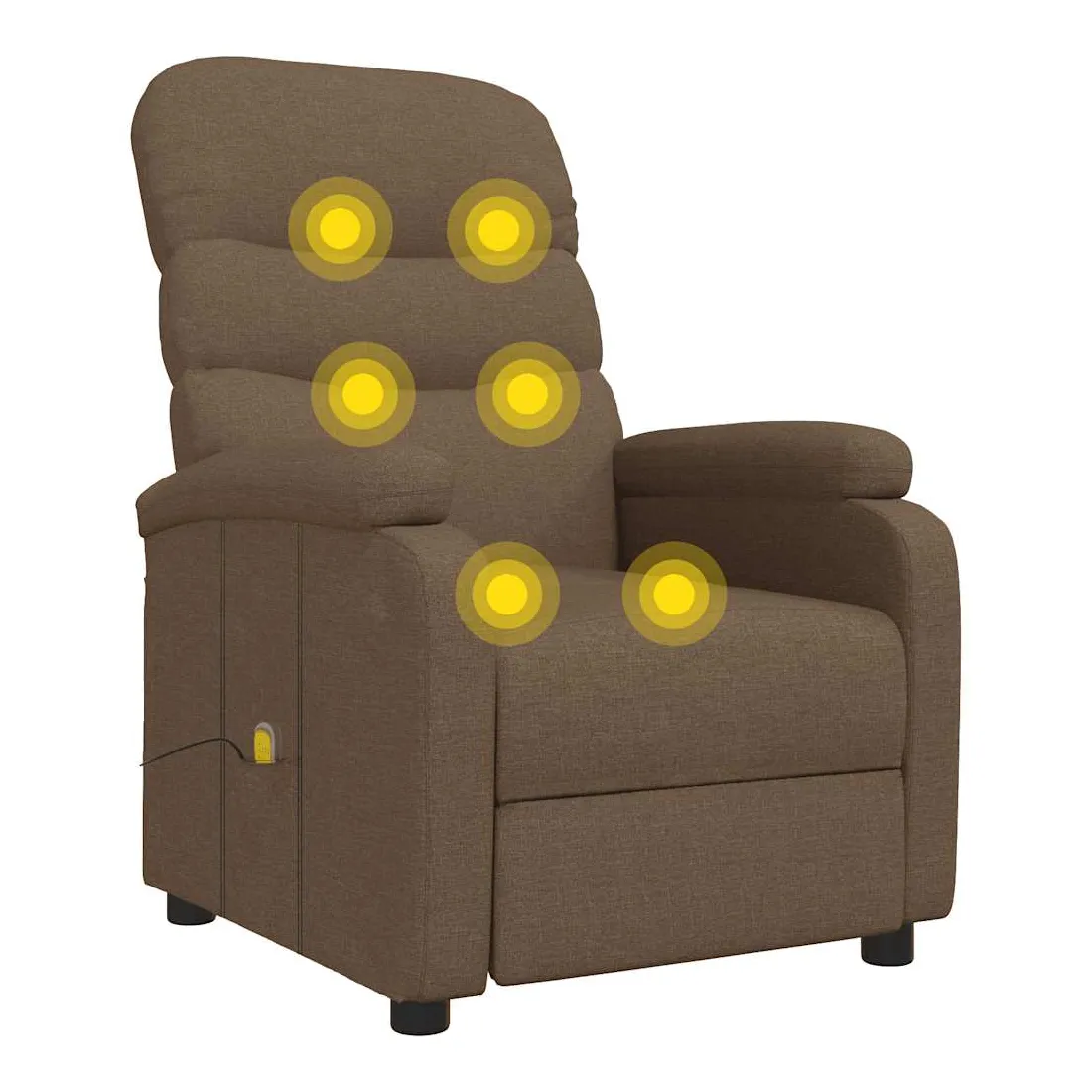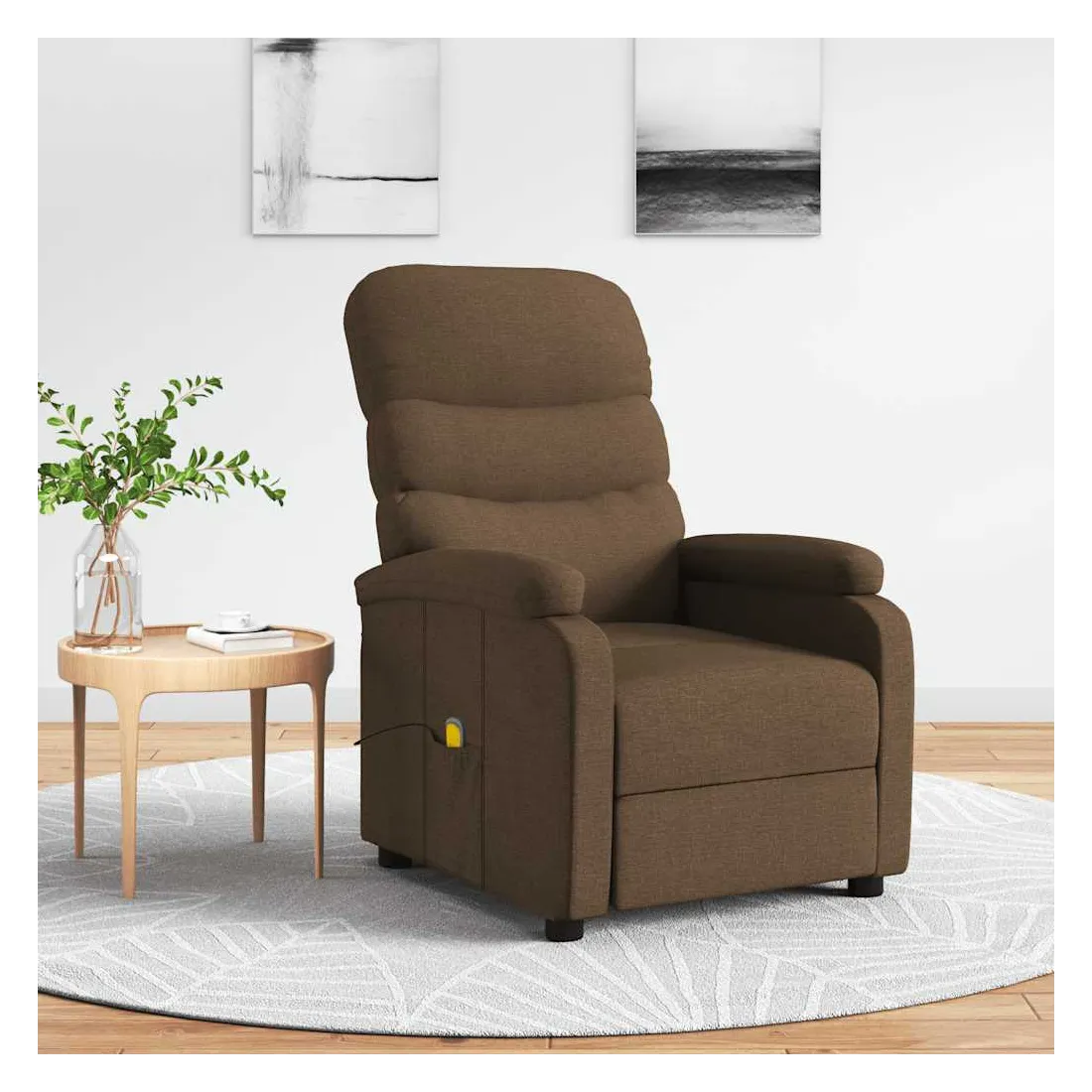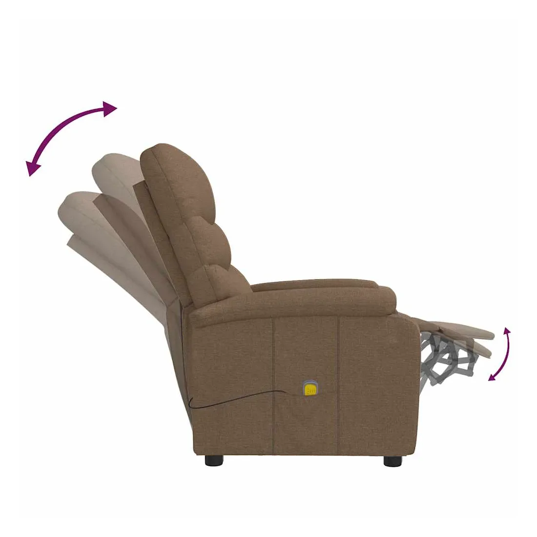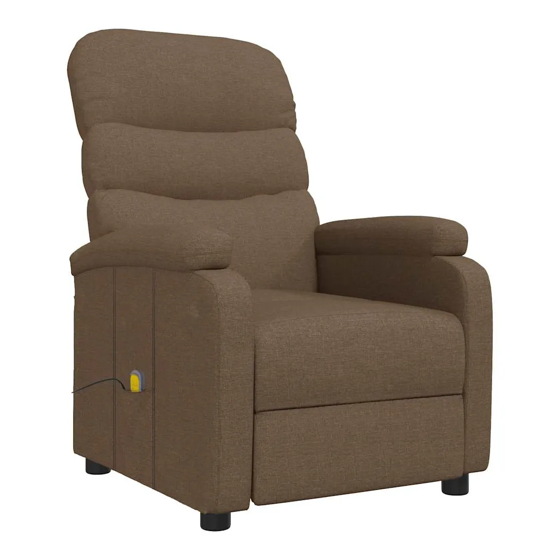 Asseyez-vous et détendez-vous dans ce fauteuil de massage très confortable ! Fonction d'inclinaison manuelle : le fauteuil inclinable est spécialement conçu avec 3 positions d'inclinaison afin que vous puissiez régler manuellement le dossier et le repose-pieds selon votre confort.Fonction de vibration : les 6 points de massage vous permettent de faire l'expérience d'un massage mieux ciblé. De plus, la télécommande incluse vous permet de choisir différents programmes de massage. La fonction de massage est alimentée par le connecteur USB, mais la source d'alimentation USB 5V certifiée n'est pas incluse.Expérience d'assise confortable : le siège, le dossier et les larges accoudoirs rembourrés épais recouverts de tissu procurent une sensation confortable et chaleureuse, vous permettant de vous sentir enveloppé lorsque vous êtes assis. Le tissu présente un aspect simple et épuré, et est respirant et durable.Cadre solide et stable : le cadre en bois et en métal offre une structure solide et une grande stabilité. Ce fauteuil inclinable est confortable et durable.