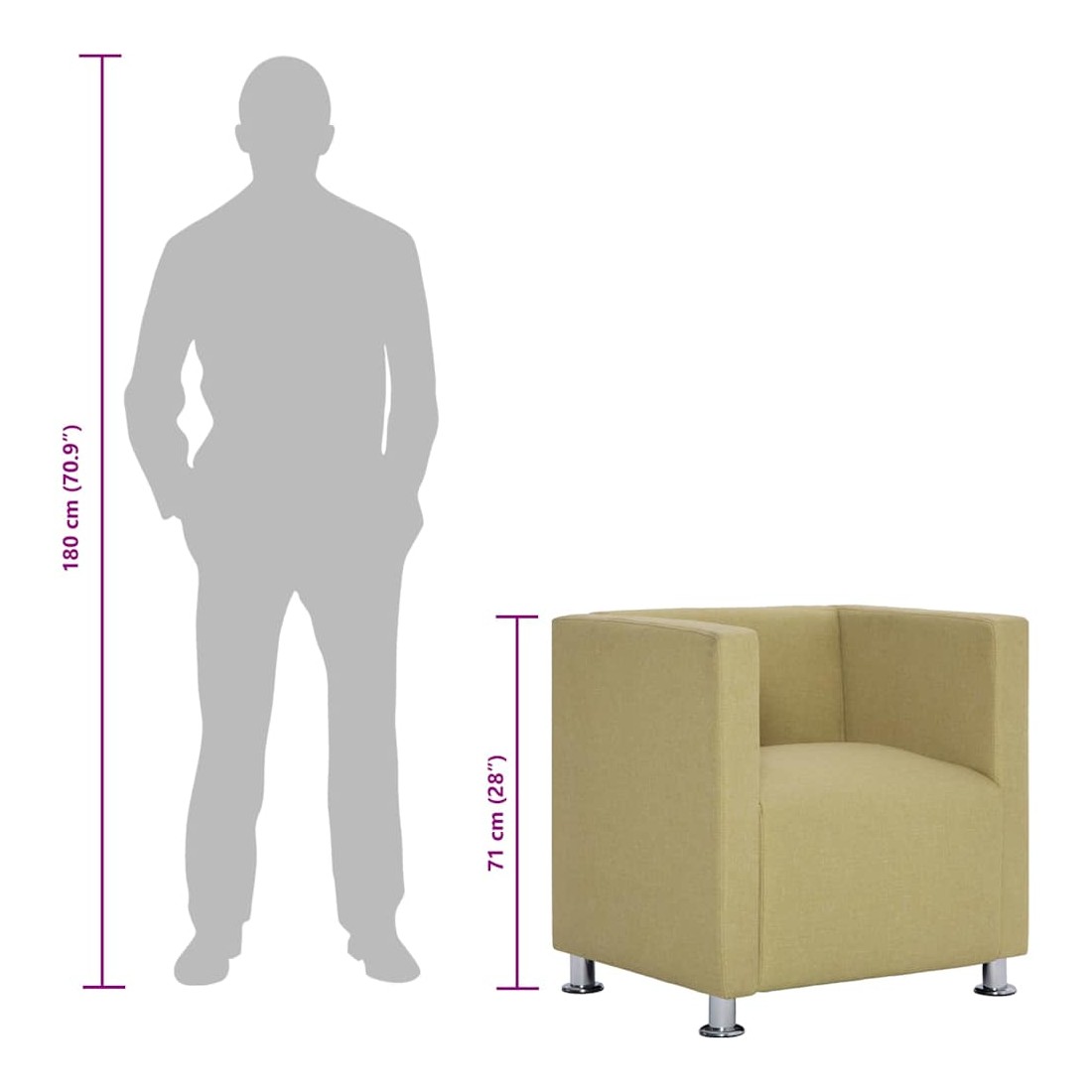 - Matériau : revêtement en polyester + cadre en bois + pieds chromés