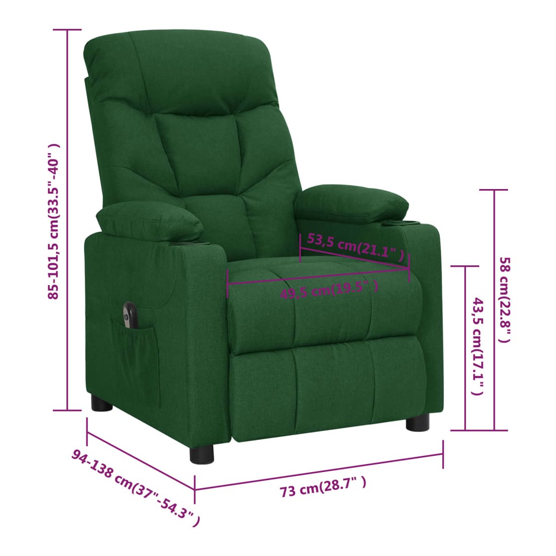 Fauteuil inclinable électrique Vert foncé Tissu
