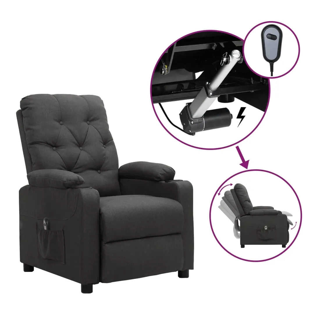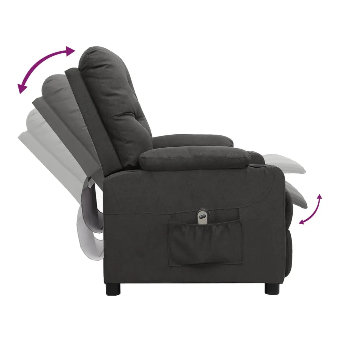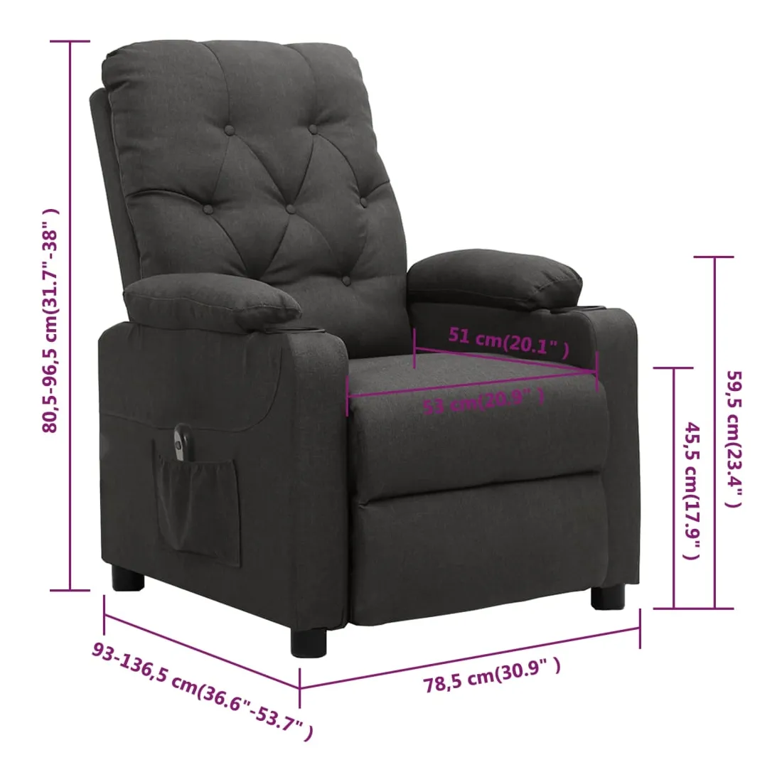 Asseyez-vous et détendez-vous dans ce fauteuil inclinable électrique très confortable ! Fonction d'inclinaison électrique : le fauteuil inclinable est équipé d'un moteur électrique pour la fonction d'inclinaison. Il offre 3 positions d'inclinaison et vous pouvez facilement régler le dossier et le repose-pied à l'aide de la commande manuelle à 2 boutons incluse, en fonction de votre confort.Expérience d'assise confortable : le siège, le dossier et les larges accoudoirs rembourrés épais recouverts de tissu procurent une sensation confortable et chaleureuse, vous permettant de vous sentir enveloppé lorsque vous êtes assis. Le tissu présente un aspect simple et épuré, et est respirant et durable.Cadre solide et stable : le cadre en bois et en métal offre une structure solide et une grande stabilité. Ce fauteuil inclinable est confortable et durable.