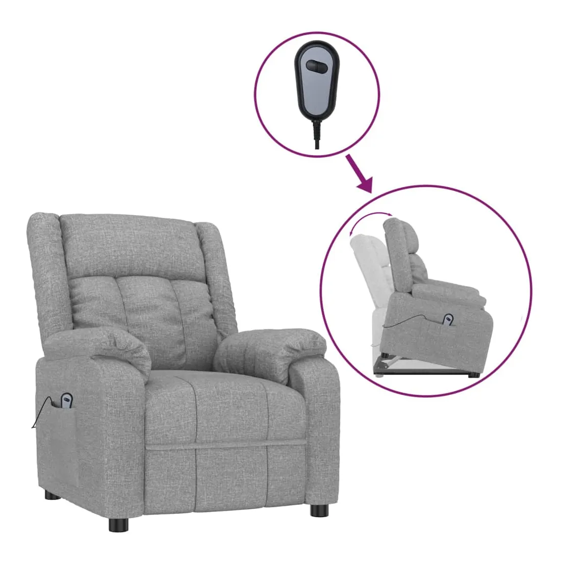 Asseyez-vous et détendez-vous dans ce fauteuil très confortable ! Fonction d'inclinaison manuelle : le fauteuil inclinable est spécialement conçu avec 3 positions d'inclinaison afin que vous puissiez régler manuellement le dossier et le repose-pieds selon votre confort.Fonction de levage électrique : ce fauteuil inclinable pour personnes âgées est équipé d'un moteur électrique pour la fonction de levage. Grâce à la fonction qui pousse toute la chaise vers le haut, vous pouvez facilement vous tenir debout sans stresser votre dos et vos genoux grâce à la commande manuelle à 2 boutons.Expérience d'assise confortable : le siège, le dossier et les larges accoudoirs rembourrés épais recouverts de tissu procurent une sensation confortable et chaleureuse, vous permettant de vous sentir enveloppé lorsque vous êtes assis. Le tissu présente un aspect simple et épuré, et est respirant et durable.Cadre solide et stable : le cadre en bois et en métal offre une structure solide et une grande stabilité. Ce fauteuil inclinable est confortable et durable.