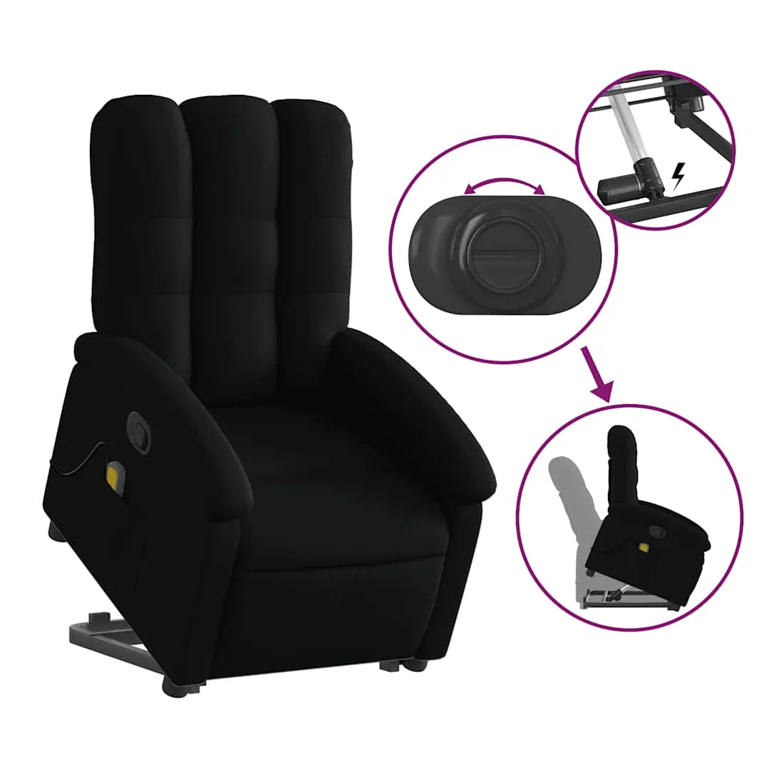 Asseyez-vous et détendez-vous dans ce fauteuil inclinable de massage très confortable ! Fonction de levage électrique : ce fauteuil inclinable pour personnes âgées est équipé d'un moteur électrique pour la fonction de levage. Grâce à la fonction qui pousse toute la chaise vers le haut, vous pouvez facilement vous tenir debout sans stresser votre dos et vos genoux en appuyant simplement sur le bouton.Fonction d'inclinaison manuelle : ce fauteuil inclinable est doté d'une poignée du côté droit. Vous pouvez régler manuellement le repose-pieds et le dossier dans n'importe quelle position selon votre confort en tirant simplement sur la poignée. Cette fonction permet une inclinaison maximale de 135 degrés. De plus, le dossier peut revenir rapidement à sa position d'origine en tirant simplement sur la poignée.Fonction de vibration : les 6 points de massage vous permettent de faire l'expérience d'un massage mieux ciblé. De plus, la télécommande incluse vous permet de choisir différents programmes de massage. La fonction de massage est alimentée par le connecteur USB qui nécessite une source d'alimentation USB certifiée de 5 V (non fournie).Expérience d'assise confortable : le siège, le dossier et les larges accoudoirs bien rembourrés recouverts de tissu procurent une sensation confortable et chaleureuse, vous permettant de vous sentir enveloppé lorsque vous êtes assis. Le tissu présente un aspect simple et épuré et est respirant et durable.Poche latérale pratique : ce fauteuil est doté d'une poche latérale pour ranger votre télécommande ou garder vos objets essentiels à portée de main.Cadre solide et stable : le cadre en bois et en métal offre une structure solide et une grande stabilité. Ce fauteuil inclinable est confortable et durable.