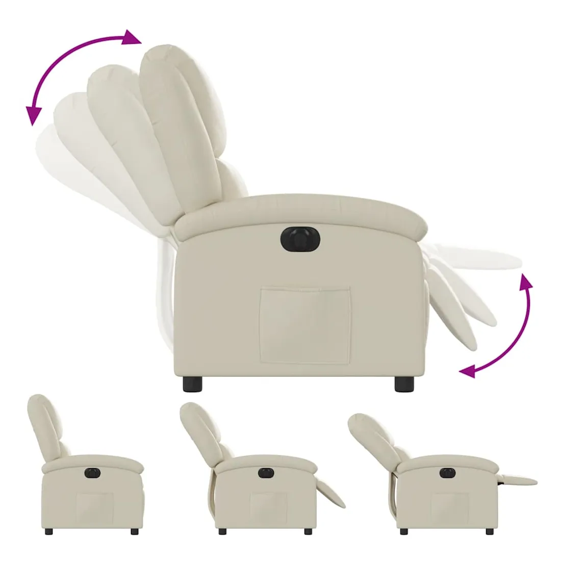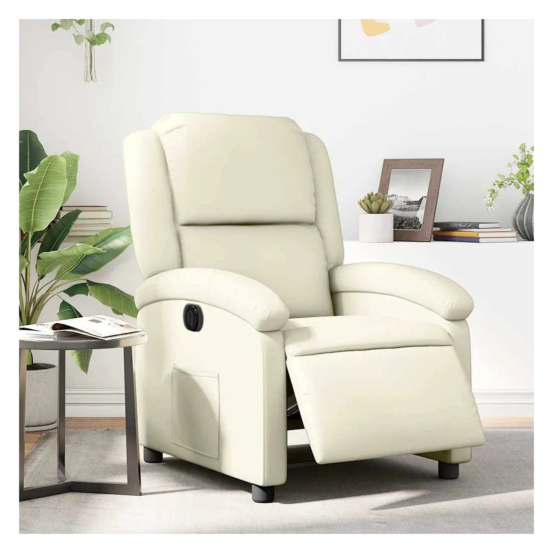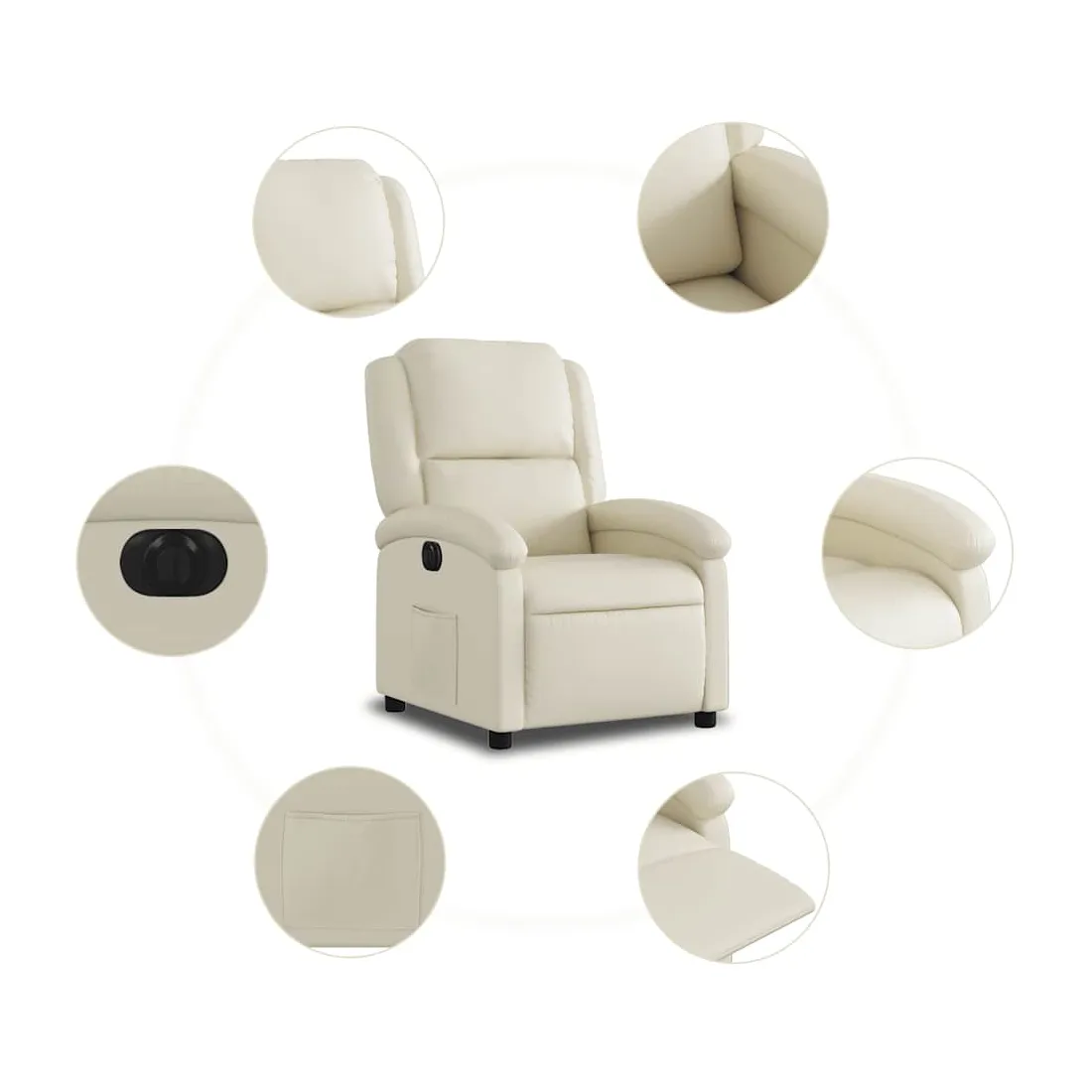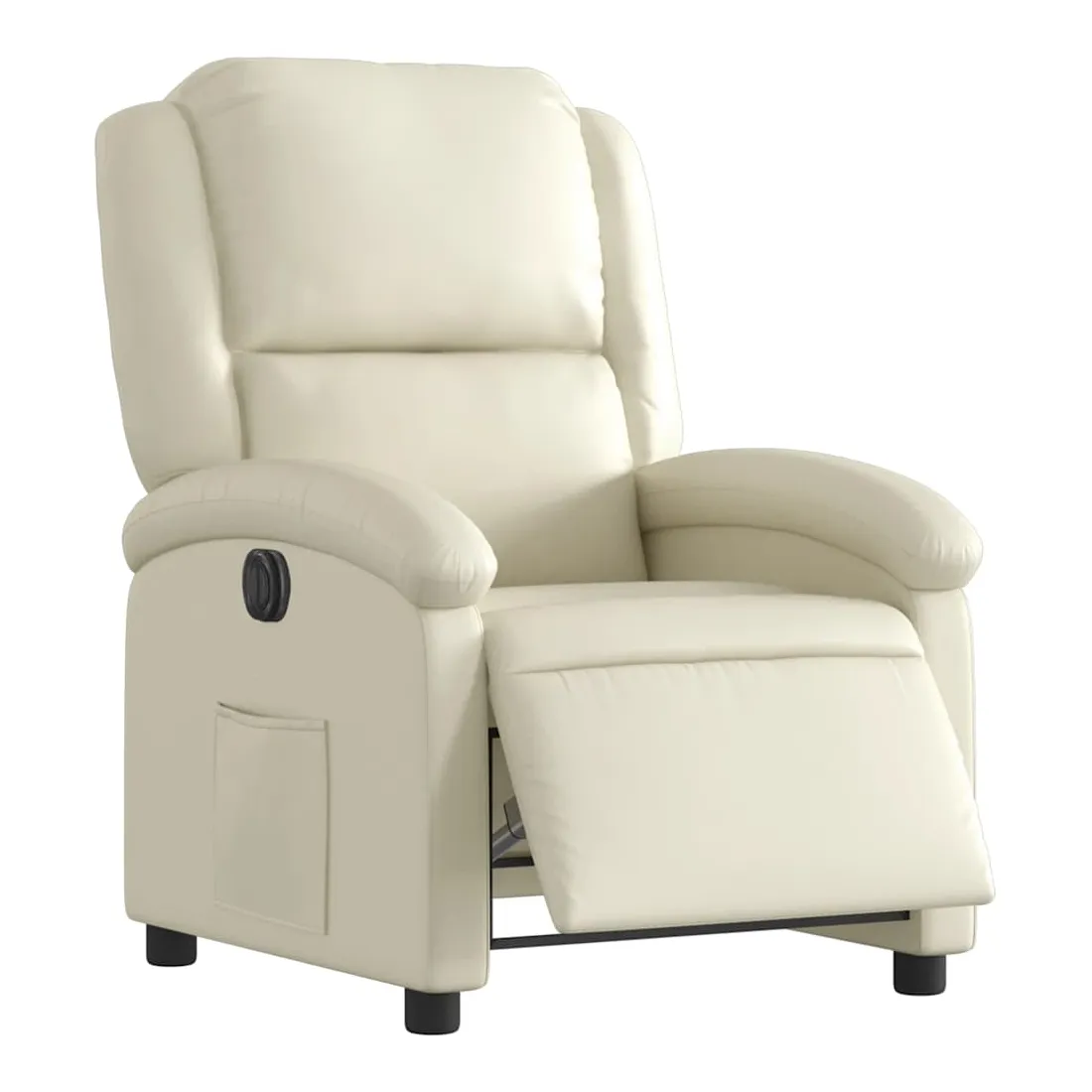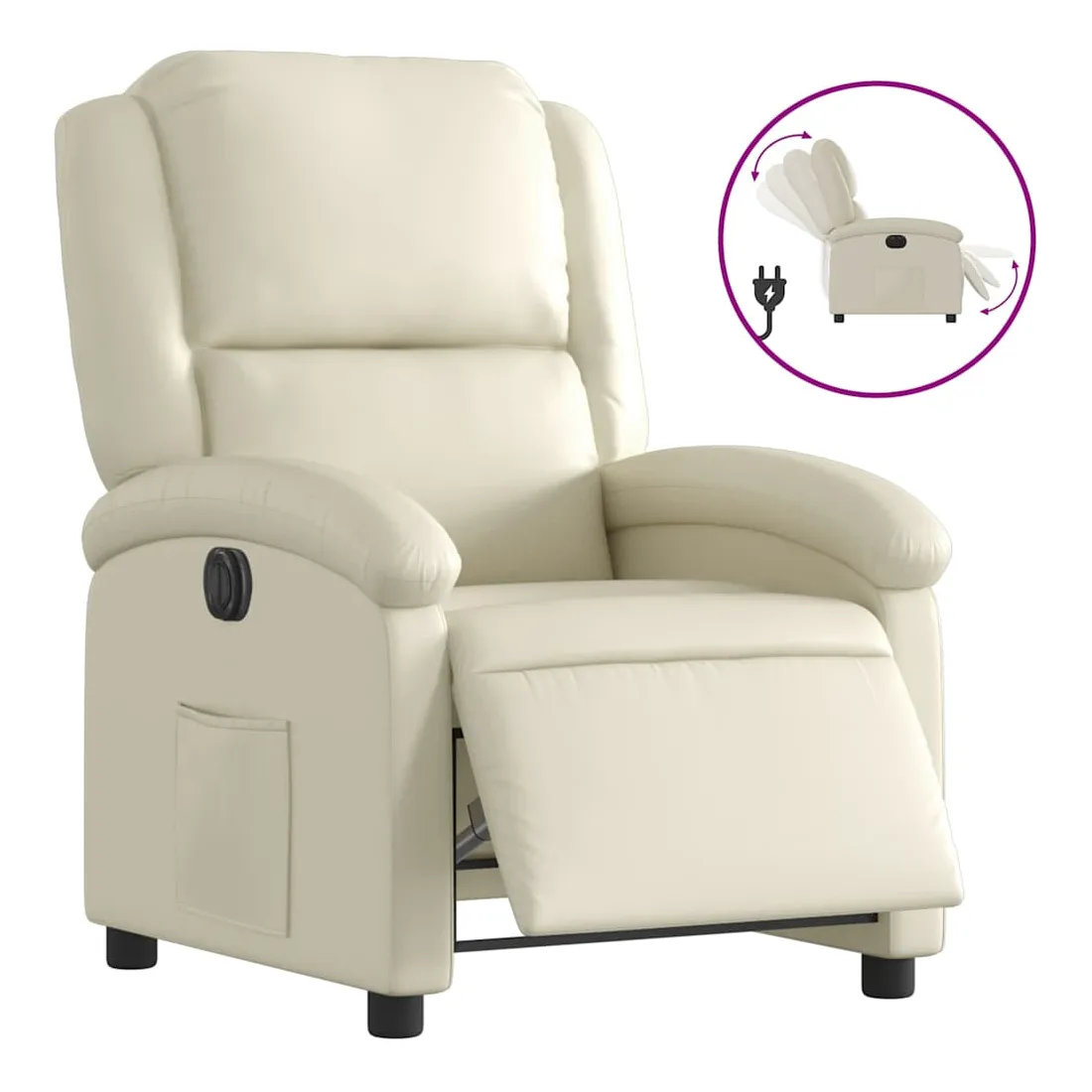 Asseyez-vous et détendez-vous dans ce fauteuil inclinable électrique très confortable ! Fonction d'inclinaison électrique : ce fauteuil inclinable est équipé d'un moteur électrique qui permet de régler automatiquement le repose-pied et le dossier dans n'importe quelle position, selon votre confort, en appuyant simplement sur le bouton situé sur le côté du fauteuil. Cette fonction permet une inclinaison maximale de 135 degrés. En outre, le dossier peut revenir automatiquement à sa position d'origine par une simple pression sur le bouton.Expérience de siège confortable : le siège, le dossier et les larges accoudoirs rembourrés épais recouverts de similicuir procurent une sensation confortable, vous faisant vous sentir enlacé lorsque vous êtes assis. Le similicuir est un matériau très résistant. Il est résistant aux taches, ce qui le rend facile à nettoyer avec un chiffon humide. La surface lisse donne également un aspect luxueux et la beauté du cuir véritable.Poche latérale pratique : ce fauteuil est doté d'une poche latérale pour vous permettre de garder vos objets essentiels à portée de main.Cadre solide et stable : le cadre en bois et en métal offre une structure solide et une grande stabilité. Ce fauteuil inclinable est confortable et durable.