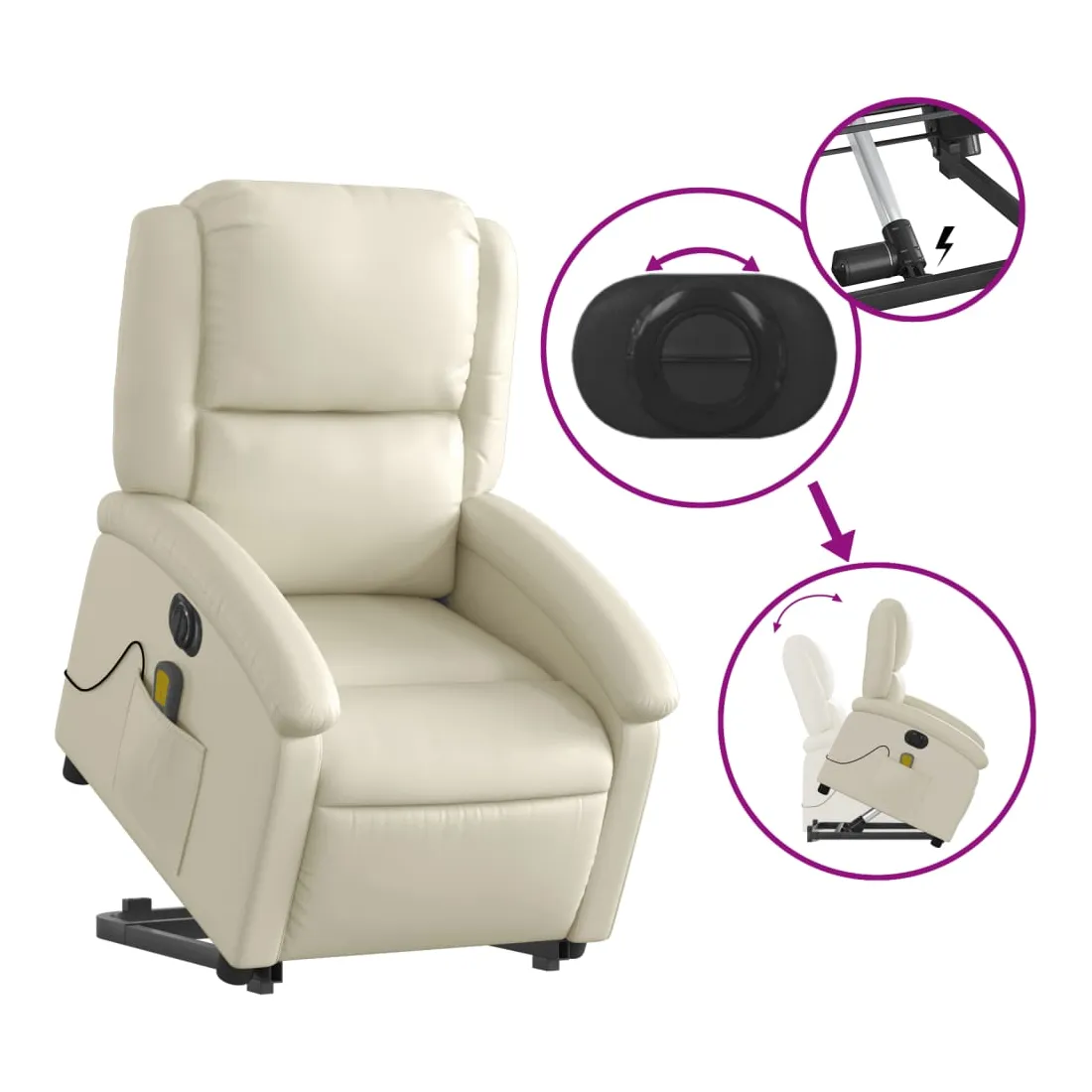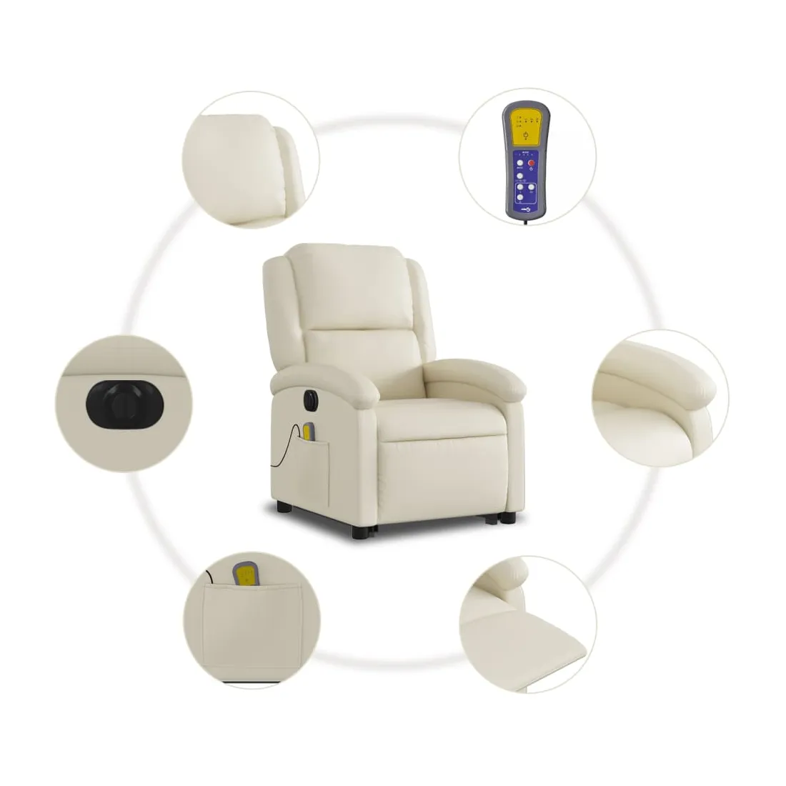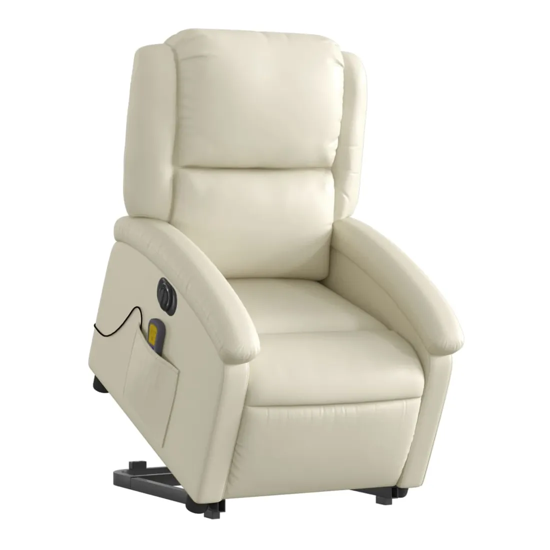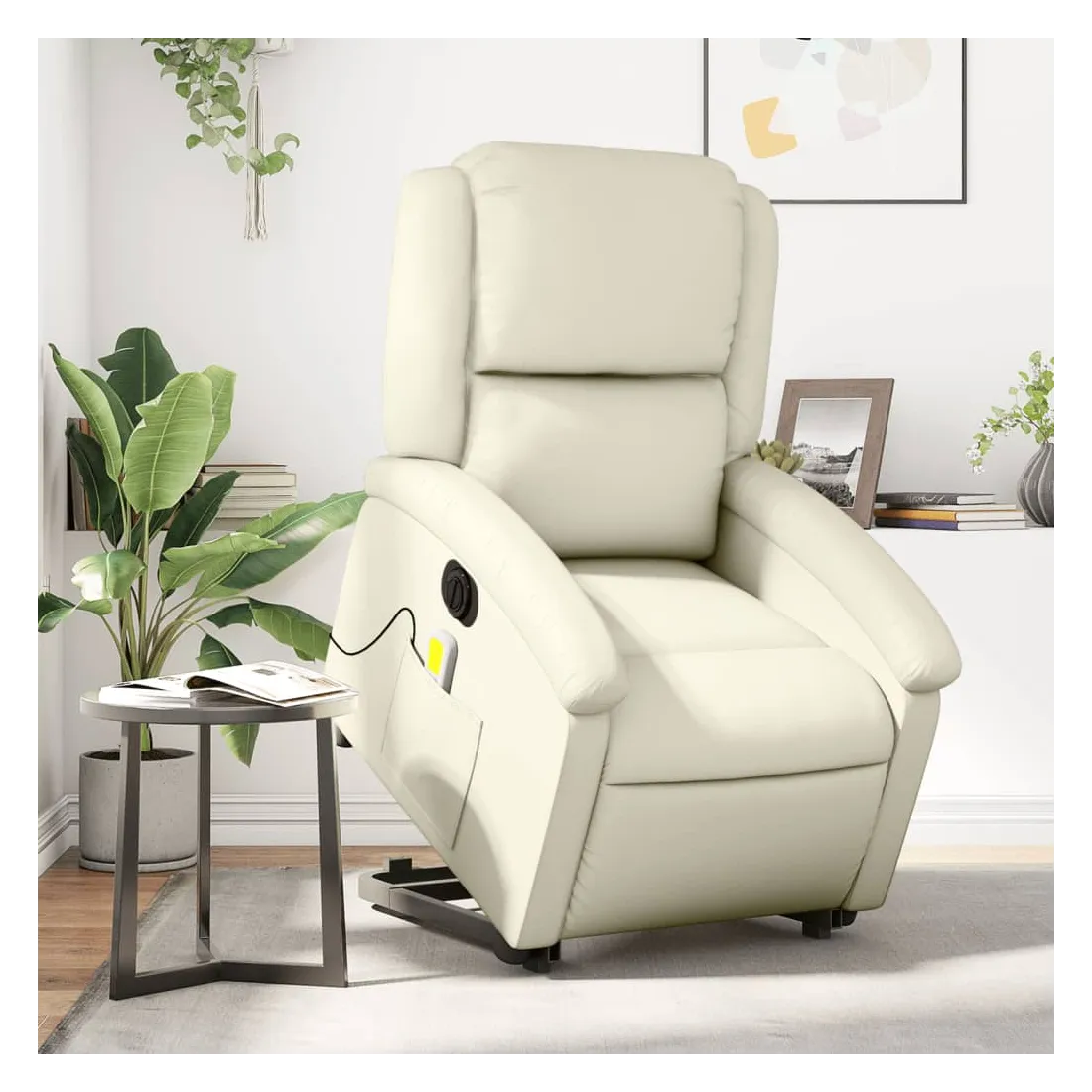 Asseyez-vous et détendez-vous dans ce fauteuil inclinable de massage électrique très confortable ! Fonction de levage électrique : ce fauteuil inclinable pour personnes âgées est équipé d'un moteur électrique pour la fonction de levage. Grâce à la fonction qui pousse toute la chaise vers le haut, vous pouvez facilement vous tenir debout sans stresser votre dos et vos genoux en appuyant simplement sur le bouton.Fonction d'inclinaison électrique : ce fauteuil inclinable est également équipé d'un moteur électrique qui permet de régler automatiquement le repose-pied et le dossier dans n'importe quelle position, selon votre confort, en appuyant simplement sur le bouton situé sur le côté du fauteuil. Cette fonction permet une inclinaison maximale de 135 degrés. En outre, le dossier peut revenir automatiquement à sa position d'origine par une simple pression sur le bouton.Fonction de vibration : les 6 points de massage vous permettent de faire l'expérience d'un massage mieux ciblé. De plus, la télécommande incluse vous permet de choisir différents programmes de massage. La fonction de massage est alimentée par le connecteur USB qui nécessite une source d'alimentation USB certifiée de 5 V (non fournie).Expérience de siège confortable : le siège, le dossier et les larges accoudoirs rembourrés épais recouverts de similicuir procurent une sensation confortable, vous faisant vous sentir enlacé lorsque vous êtes assis. Le similicuir est un matériau très résistant. Il est résistant aux taches, ce qui le rend facile à nettoyer avec un chiffon humide. La surface lisse donne également un aspect luxueux et la beauté du cuir véritable.Poche latérale pratique : ce fauteuil est doté d'une poche latérale pour ranger votre télécommande ou garder vos objets essentiels à portée de main.Cadre solide et stable : le cadre en bois et en métal offre une structure solide et une grande stabilité. Ce fauteuil inclinable est confortable et durable.