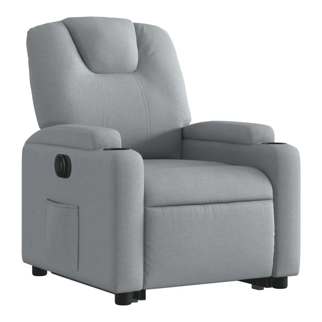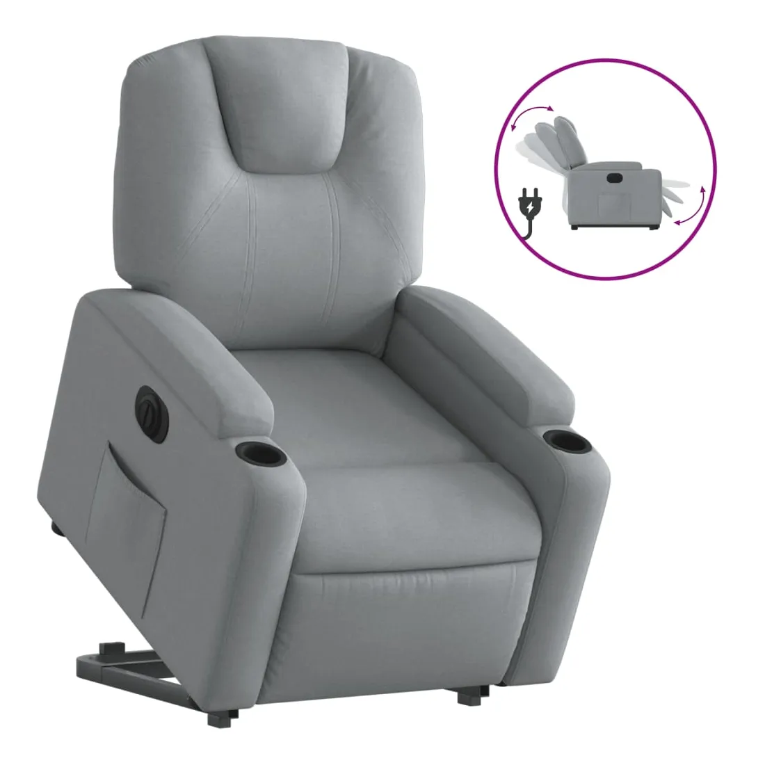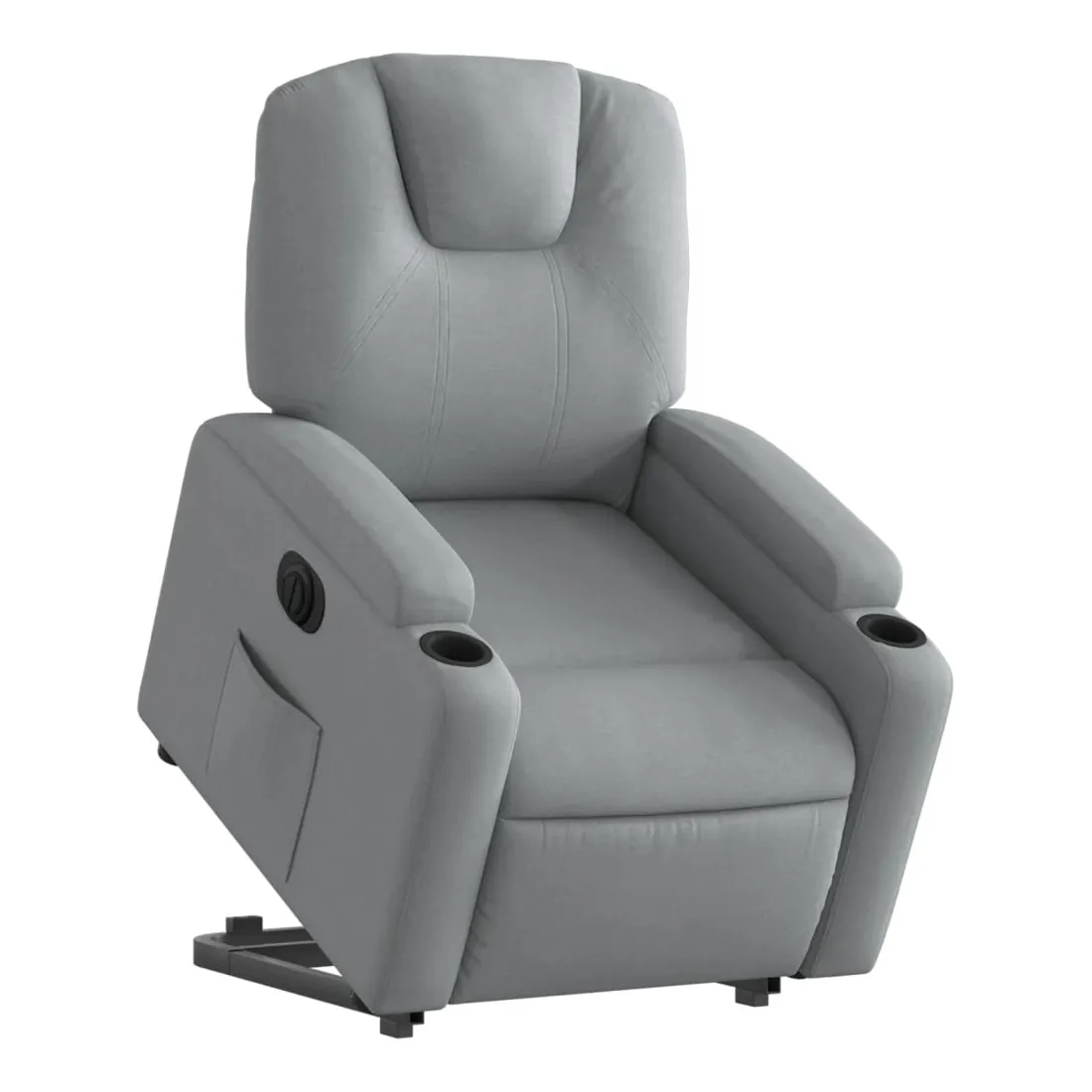 Asseyez-vous et détendez-vous dans ce fauteuil inclinable électrique très confortable ! Fonction de levage électrique : ce fauteuil inclinable pour personnes âgées est équipé d'un moteur électrique pour la fonction de levage. Grâce à la fonction qui pousse toute la chaise vers le haut, vous pouvez facilement vous tenir debout sans stresser votre dos et vos genoux en appuyant simplement sur le bouton.Fonction d'inclinaison électrique : ce fauteuil inclinable est également équipé d'un moteur électrique qui permet de régler automatiquement le repose-pied et le dossier dans n'importe quelle position, selon votre confort, en appuyant simplement sur le bouton situé sur le côté du fauteuil. Cette fonction permet une inclinaison maximale de 135 degrés. En outre, le dossier peut revenir automatiquement à sa position d'origine par une simple pression sur le bouton.Expérience d'assise confortable : le siège, le dossier et les larges accoudoirs bien rembourrés recouverts de tissu procurent une sensation confortable et chaleureuse, vous permettant de vous sentir enveloppé lorsque vous êtes assis. Le tissu présente un aspect simple et épuré et est respirant et durable.Porte-gobelets et poche latérale pratiques : ce fauteuil dispose de deux porte-gobelets pratiques pour vos boissons et d'une poche latérale pour garder vos objets essentiels à portée de main.Cadre solide et stable : le cadre en bois et en métal offre une structure solide et une grande stabilité. Ce fauteuil inclinable est confortable et durable.