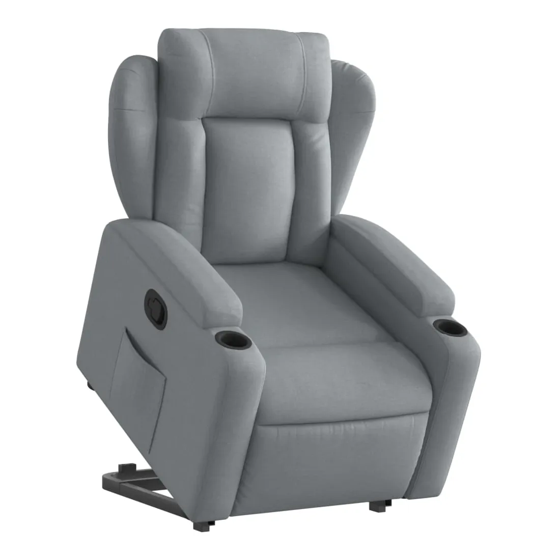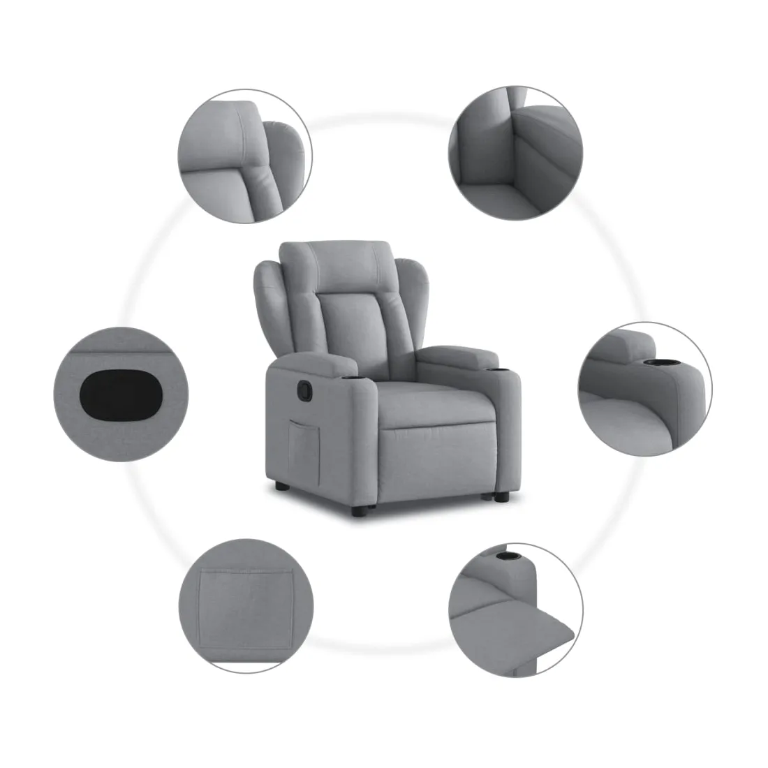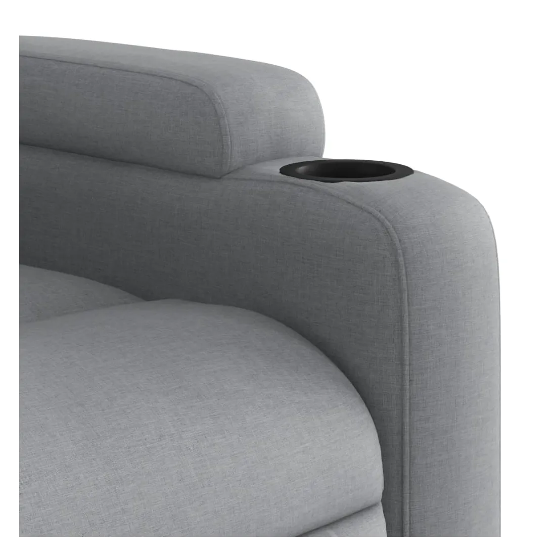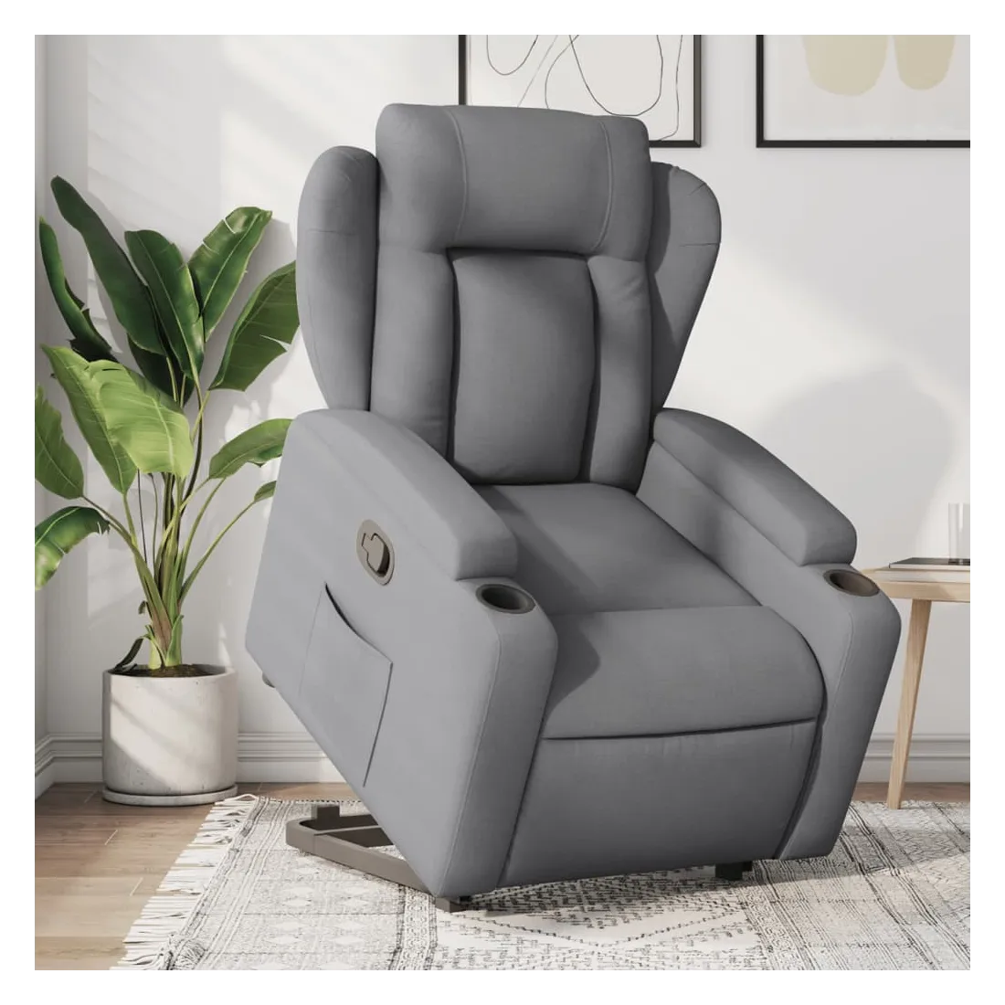 Asseyez-vous et détendez-vous dans ce fauteuil inclinable très confortable ! Fonction de levage électrique : ce fauteuil inclinable pour personnes âgées est équipé d'un moteur électrique pour la fonction de levage. Grâce à la fonction qui pousse toute la chaise vers le haut, vous pouvez facilement vous tenir debout sans stresser votre dos et vos genoux en appuyant simplement sur le bouton.Fonction d'inclinaison manuelle : ce fauteuil inclinable est doté d'une poignée du côté droit. Vous pouvez régler manuellement le repose-pieds et le dossier dans n'importe quelle position selon votre confort en tirant simplement sur la poignée. Cette fonction permet une inclinaison maximale de 135 degrés. De plus, le dossier peut revenir rapidement à sa position d'origine en tirant simplement sur la poignée.Expérience d'assise confortable : le siège, le dossier et les larges accoudoirs bien rembourrés recouverts de tissu procurent une sensation confortable et chaleureuse, vous permettant de vous sentir enveloppé lorsque vous êtes assis. Le tissu présente un aspect simple et épuré et est respirant et durable.Porte-gobelets et poche latérale pratiques : ce fauteuil dispose de deux porte-gobelets pratiques pour vos boissons et d'une poche latérale pour garder vos objets essentiels à portée de main.Cadre solide et stable : le cadre en bois et en métal offre une structure solide et une grande stabilité. Ce fauteuil inclinable est confortable et durable.