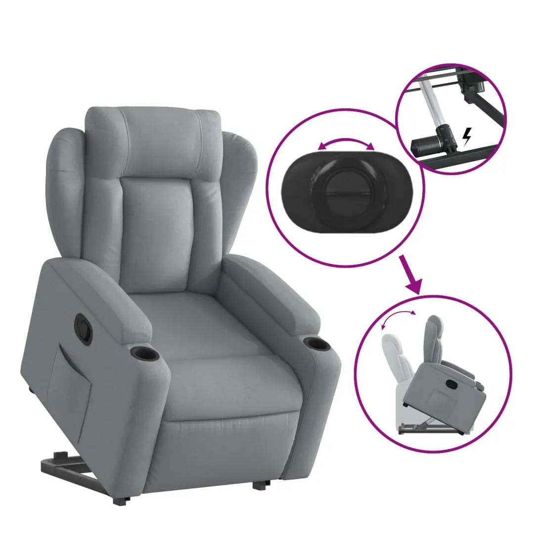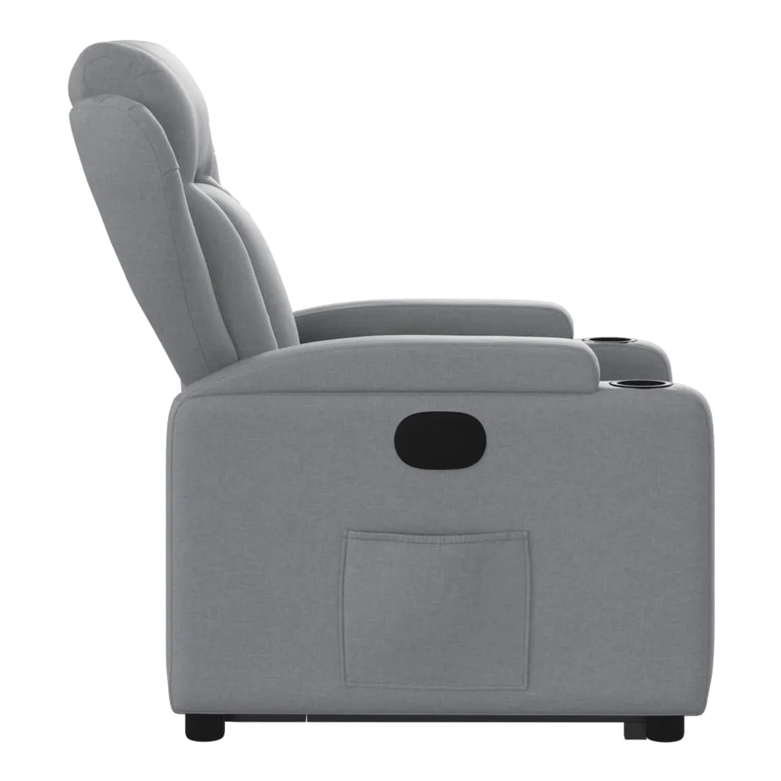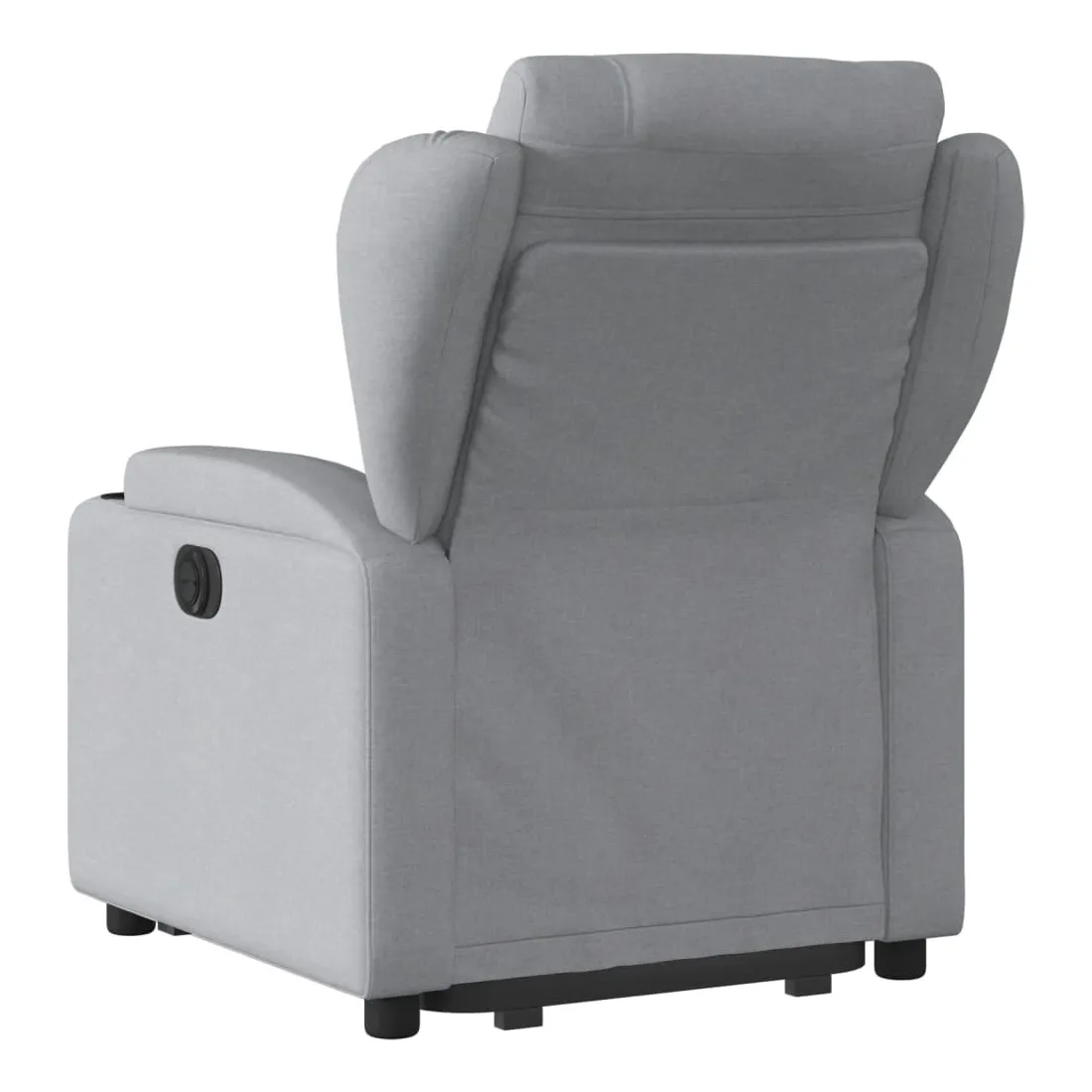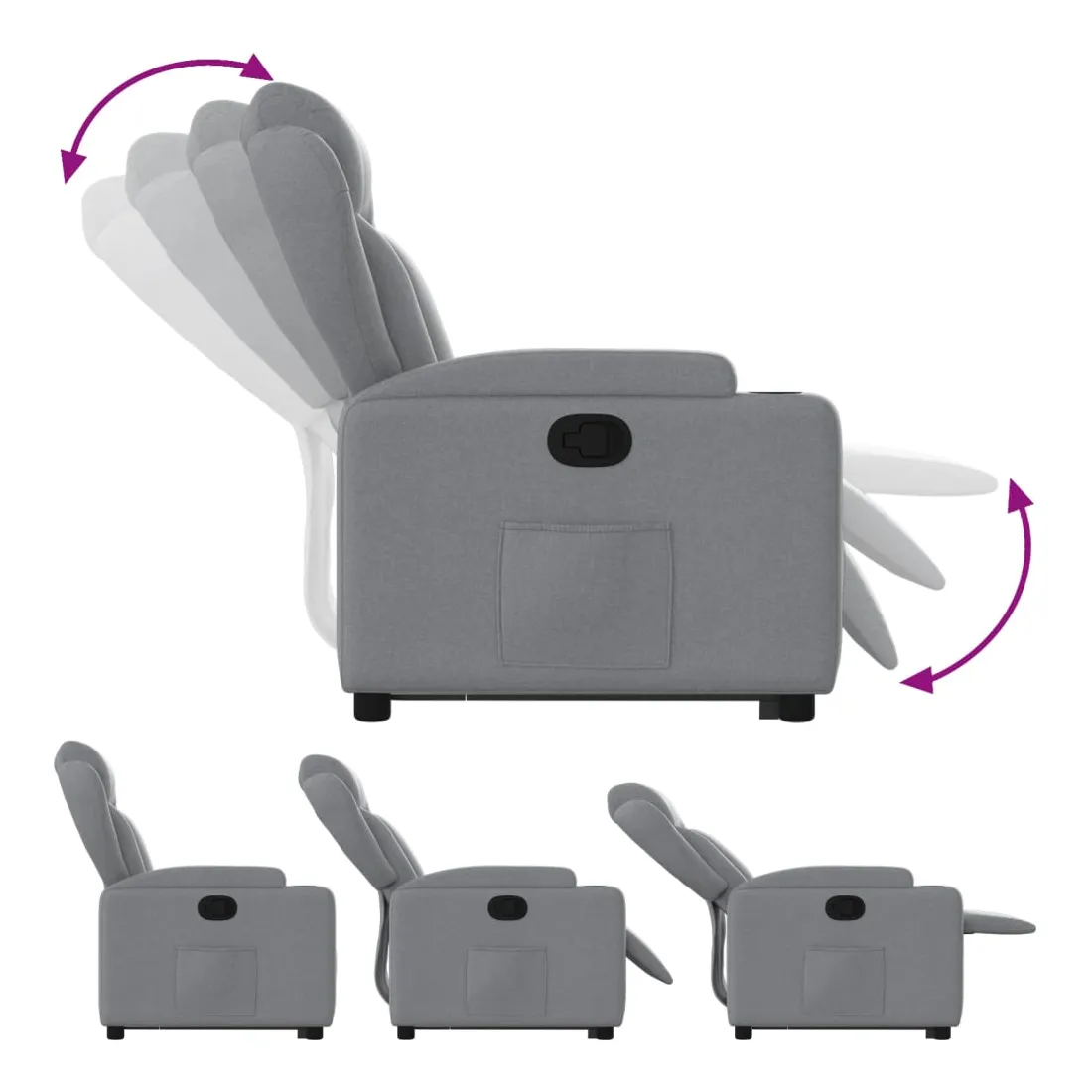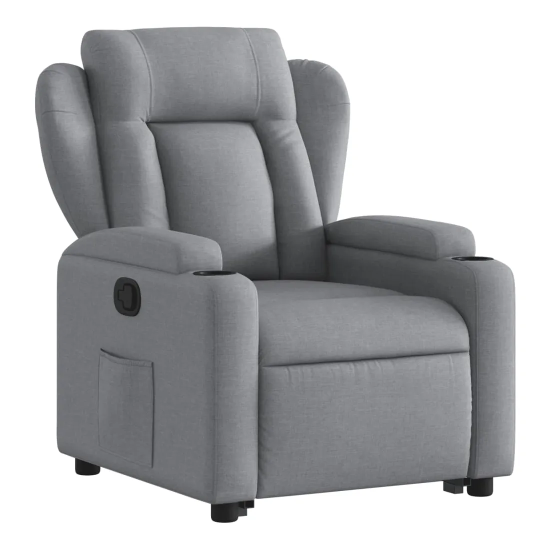 Asseyez-vous et détendez-vous dans ce fauteuil inclinable très confortable ! Fonction de levage électrique : ce fauteuil inclinable pour personnes âgées est équipé d'un moteur électrique pour la fonction de levage. Grâce à la fonction qui pousse toute la chaise vers le haut, vous pouvez facilement vous tenir debout sans stresser votre dos et vos genoux en appuyant simplement sur le bouton.Fonction d'inclinaison manuelle : ce fauteuil inclinable est doté d'une poignée du côté droit. Vous pouvez régler manuellement le repose-pieds et le dossier dans n'importe quelle position selon votre confort en tirant simplement sur la poignée. Cette fonction permet une inclinaison maximale de 135 degrés. De plus, le dossier peut revenir rapidement à sa position d'origine en tirant simplement sur la poignée.Expérience d'assise confortable : le siège, le dossier et les larges accoudoirs bien rembourrés recouverts de tissu procurent une sensation confortable et chaleureuse, vous permettant de vous sentir enveloppé lorsque vous êtes assis. Le tissu présente un aspect simple et épuré et est respirant et durable.Porte-gobelets et poche latérale pratiques : ce fauteuil dispose de deux porte-gobelets pratiques pour vos boissons et d'une poche latérale pour garder vos objets essentiels à portée de main.Cadre solide et stable : le cadre en bois et en métal offre une structure solide et une grande stabilité. Ce fauteuil inclinable est confortable et durable.
