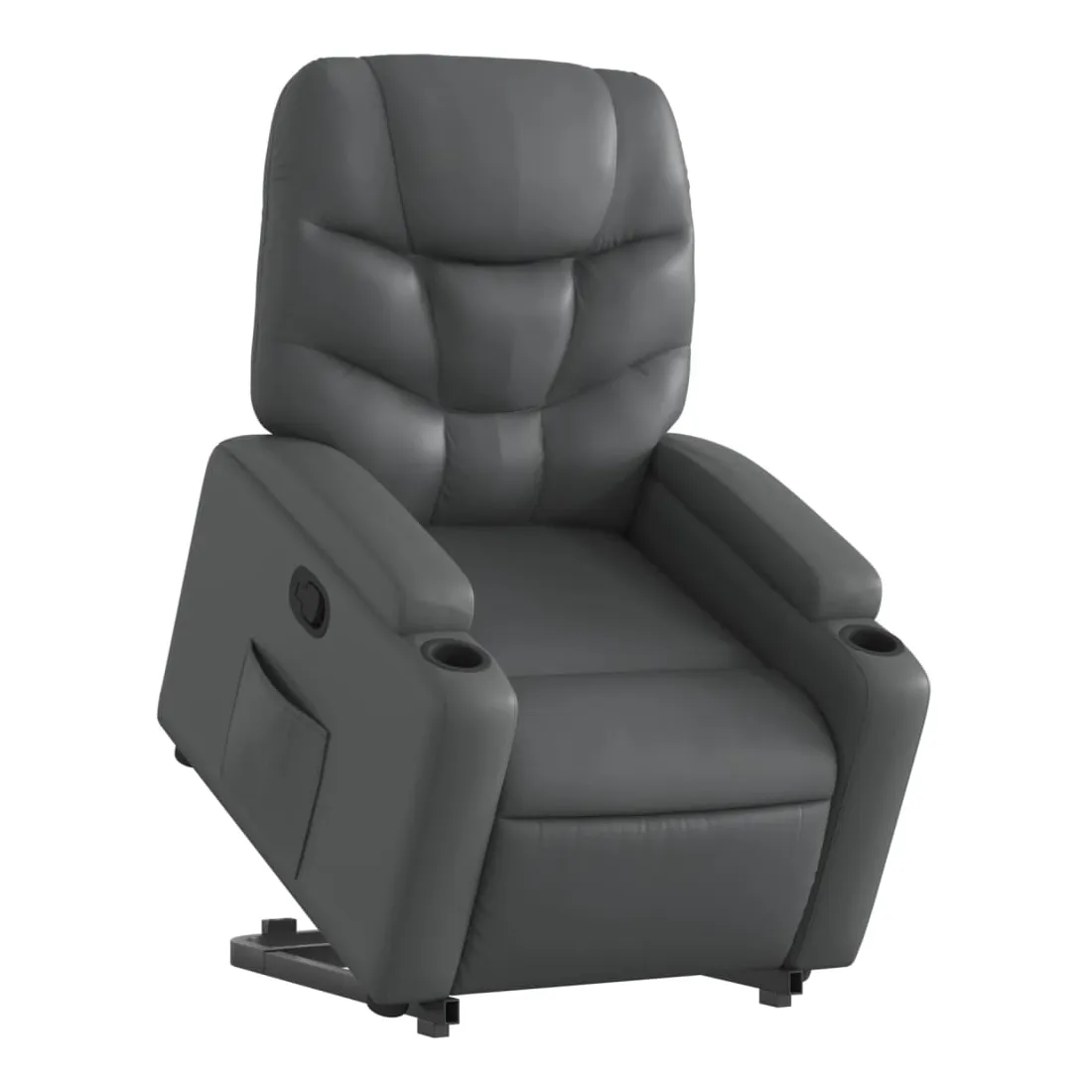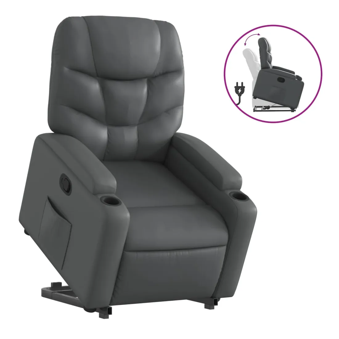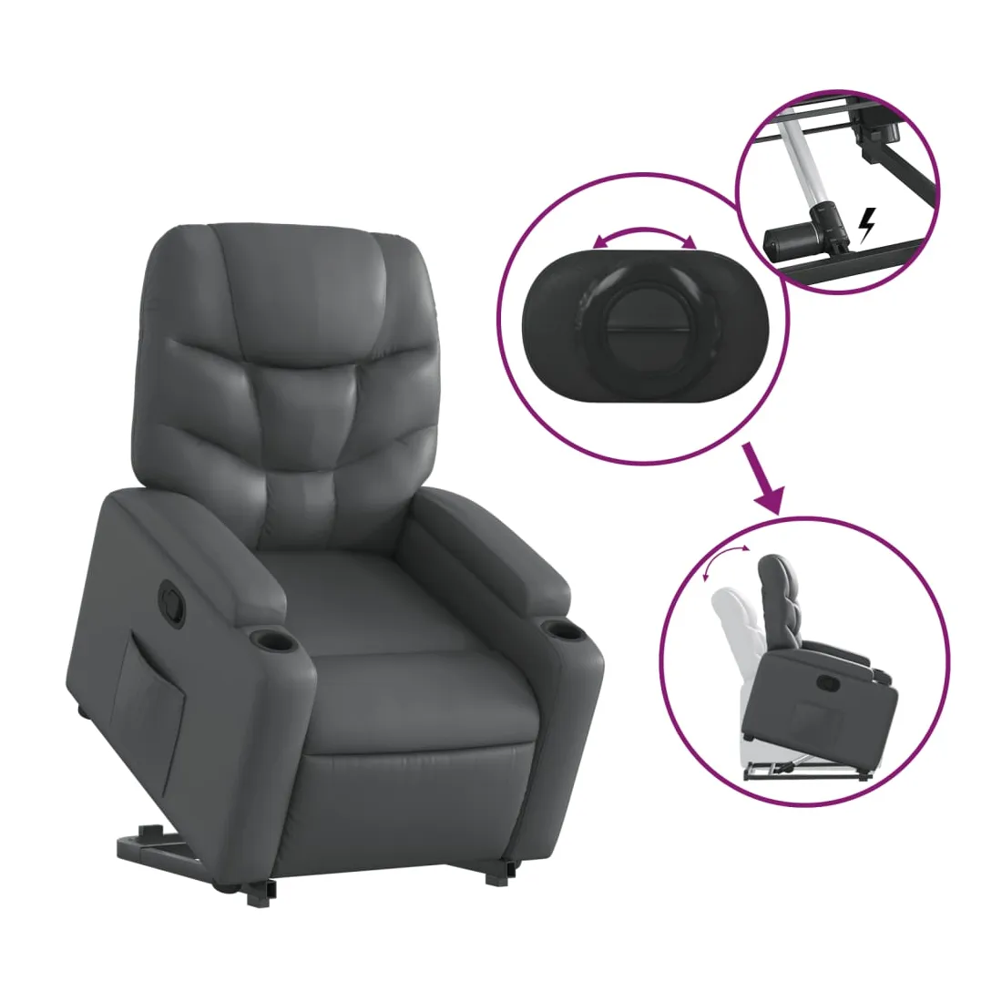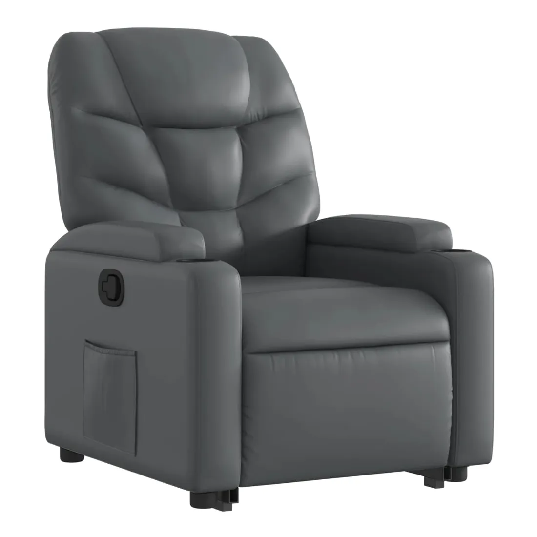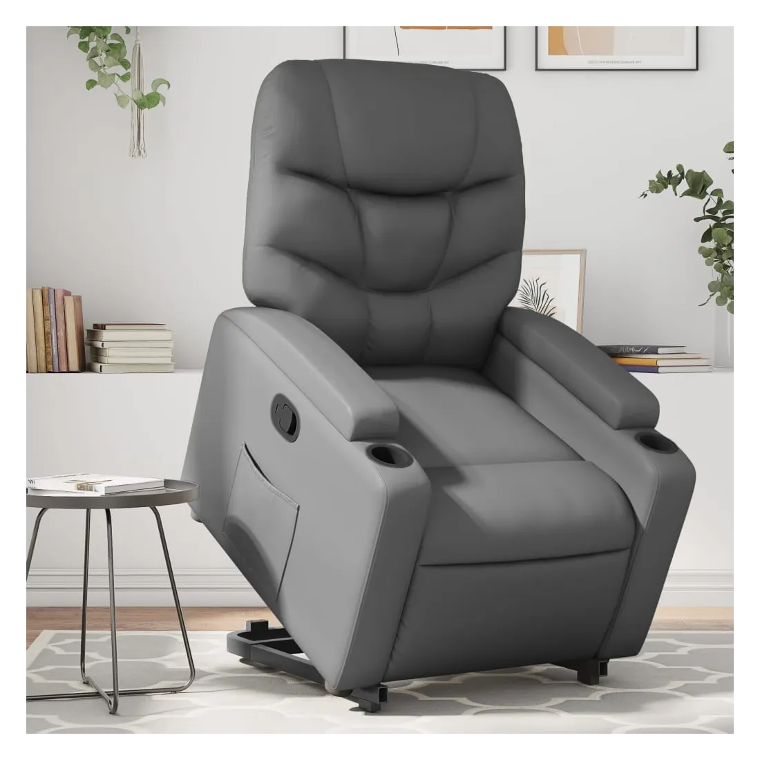 Asseyez-vous et détendez-vous dans ce fauteuil inclinable très confortable ! Fonction de levage électrique : ce fauteuil inclinable pour personnes âgées est équipé d'un moteur électrique pour la fonction de levage. Grâce à la fonction qui pousse toute la chaise vers le haut, vous pouvez facilement vous tenir debout sans stresser votre dos et vos genoux en appuyant simplement sur le bouton.Fonction d'inclinaison manuelle : ce fauteuil inclinable est doté d'une poignée du côté droit. Vous pouvez régler manuellement le repose-pieds et le dossier dans n'importe quelle position selon votre confort en tirant simplement sur la poignée. Cette fonction permet une inclinaison maximale de 135 degrés. De plus, le dossier peut revenir rapidement à sa position d'origine en tirant simplement sur la poignée.Expérience de siège confortable : le siège, le dossier et les larges accoudoirs rembourrés épais recouverts de similicuir procurent une sensation confortable, vous faisant vous sentir enlacé lorsque vous êtes assis. Le similicuir est un matériau très résistant. Il est résistant aux taches, ce qui le rend facile à nettoyer avec un chiffon humide. La surface lisse donne également un aspect luxueux et la beauté du cuir véritable.Porte-gobelets et poche latérale pratiques : ce fauteuil dispose de deux porte-gobelets pratiques pour vos boissons et d'une poche latérale pour garder vos objets essentiels à portée de main.Cadre solide et stable : le cadre en bois et en métal offre une structure solide et une grande stabilité. Ce fauteuil inclinable est confortable et durable.