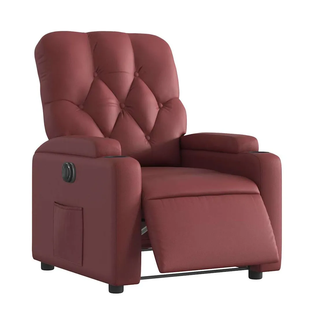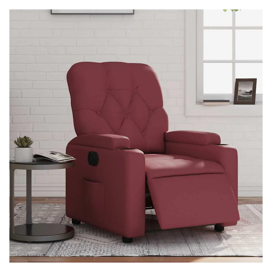 Asseyez-vous et détendez-vous dans ce fauteuil inclinable électrique très confortable ! Fonction d'inclinaison électrique : ce fauteuil inclinable est équipé d'un moteur électrique qui permet de régler automatiquement le repose-pied et le dossier dans n'importe quelle position, selon votre confort, en appuyant simplement sur le bouton situé sur le côté du fauteuil. Cette fonction permet une inclinaison maximale de 135 degrés. En outre, le dossier peut revenir automatiquement à sa position d'origine par une simple pression sur le bouton.Expérience de siège confortable : le siège, le dossier et les larges accoudoirs rembourrés épais recouverts de similicuir procurent une sensation confortable, vous faisant vous sentir enlacé lorsque vous êtes assis. Le similicuir est un matériau très résistant. Il est résistant aux taches, ce qui le rend facile à nettoyer avec un chiffon humide. La surface lisse donne également un aspect luxueux et la beauté du cuir véritable.Poche latérale pratique : ce fauteuil est doté d'une poche latérale pour vous permettre de garder vos objets essentiels à portée de main.Cadre solide et stable : le cadre en bois et en métal offre une structure solide et une grande stabilité. Ce fauteuil inclinable est confortable et durable.