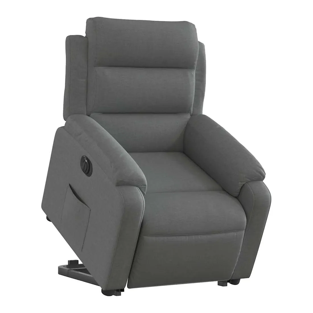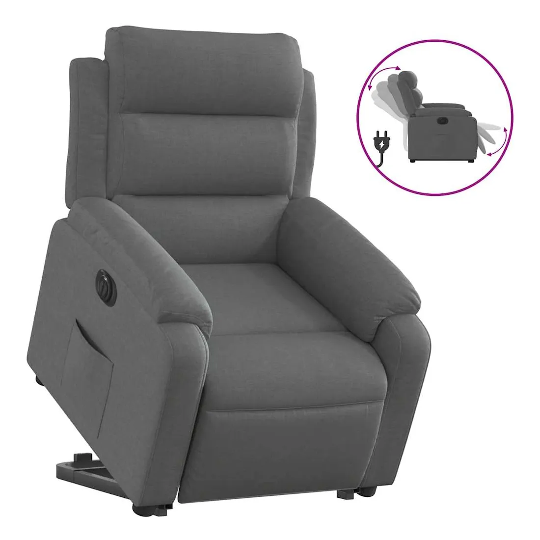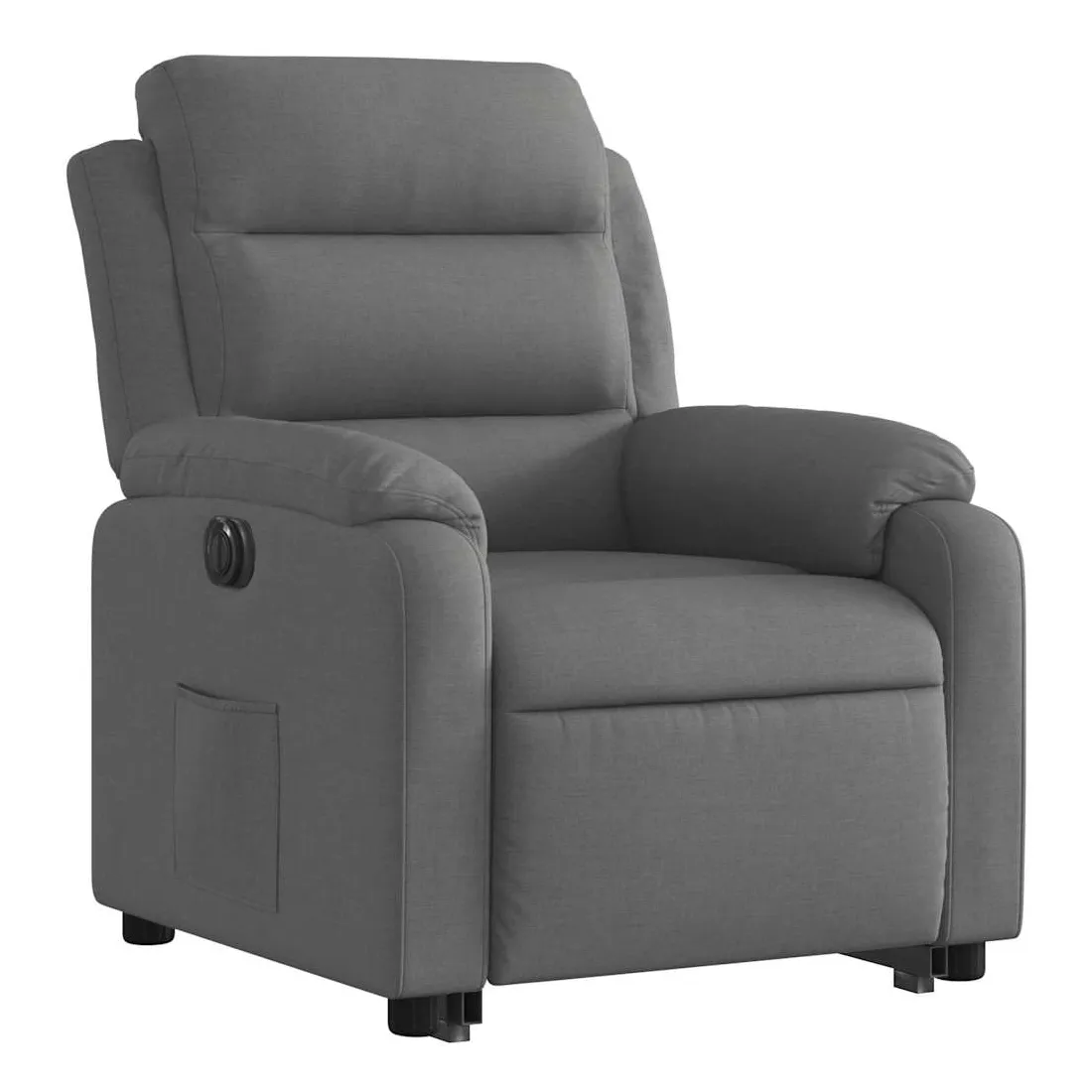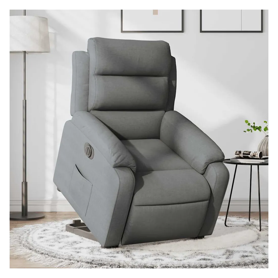 Asseyez-vous et détendez-vous dans ce fauteuil inclinable électrique très confortable ! Fonction de levage électrique : ce fauteuil inclinable pour personnes âgées est équipé d'un moteur électrique pour la fonction de levage. Grâce à la fonction qui pousse toute la chaise vers le haut, vous pouvez facilement vous tenir debout sans stresser votre dos et vos genoux en appuyant simplement sur le bouton.Fonction d'inclinaison électrique : ce fauteuil inclinable est également équipé d'un moteur électrique qui permet de régler automatiquement le repose-pied et le dossier dans n'importe quelle position, selon votre confort, en appuyant simplement sur le bouton situé sur le côté du fauteuil. Cette fonction permet une inclinaison maximale de 135 degrés. En outre, le dossier peut revenir automatiquement à sa position d'origine par une simple pression sur le bouton.Expérience d'assise confortable : le siège, le dossier et les larges accoudoirs bien rembourrés recouverts de tissu procurent une sensation confortable et chaleureuse, vous permettant de vous sentir enveloppé lorsque vous êtes assis. Le tissu présente un aspect simple et épuré et est respirant et durable.Poche latérale pratique : ce fauteuil est doté d'une poche latérale pour vous permettre de garder vos objets essentiels à portée de main.Cadre solide et stable : le cadre en bois et en métal offre une structure solide et une grande stabilité. Ce fauteuil inclinable est confortable et durable.