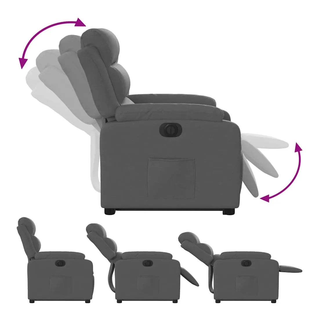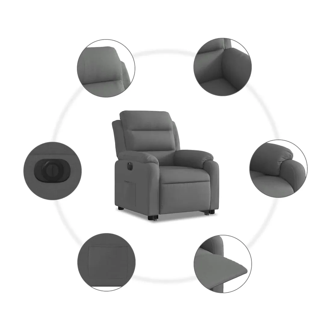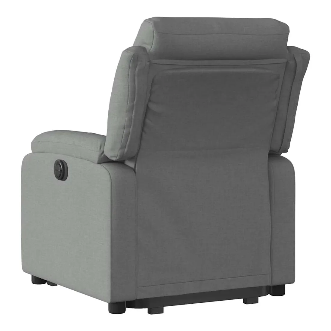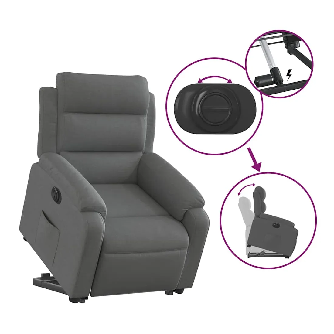 Asseyez-vous et détendez-vous dans ce fauteuil inclinable électrique très confortable ! Fonction de levage électrique : ce fauteuil inclinable pour personnes âgées est équipé d'un moteur électrique pour la fonction de levage. Grâce à la fonction qui pousse toute la chaise vers le haut, vous pouvez facilement vous tenir debout sans stresser votre dos et vos genoux en appuyant simplement sur le bouton.Fonction d'inclinaison électrique : ce fauteuil inclinable est également équipé d'un moteur électrique qui permet de régler automatiquement le repose-pied et le dossier dans n'importe quelle position, selon votre confort, en appuyant simplement sur le bouton situé sur le côté du fauteuil. Cette fonction permet une inclinaison maximale de 135 degrés. En outre, le dossier peut revenir automatiquement à sa position d'origine par une simple pression sur le bouton.Expérience d'assise confortable : le siège, le dossier et les larges accoudoirs bien rembourrés recouverts de tissu procurent une sensation confortable et chaleureuse, vous permettant de vous sentir enveloppé lorsque vous êtes assis. Le tissu présente un aspect simple et épuré et est respirant et durable.Poche latérale pratique : ce fauteuil est doté d'une poche latérale pour vous permettre de garder vos objets essentiels à portée de main.Cadre solide et stable : le cadre en bois et en métal offre une structure solide et une grande stabilité. Ce fauteuil inclinable est confortable et durable.