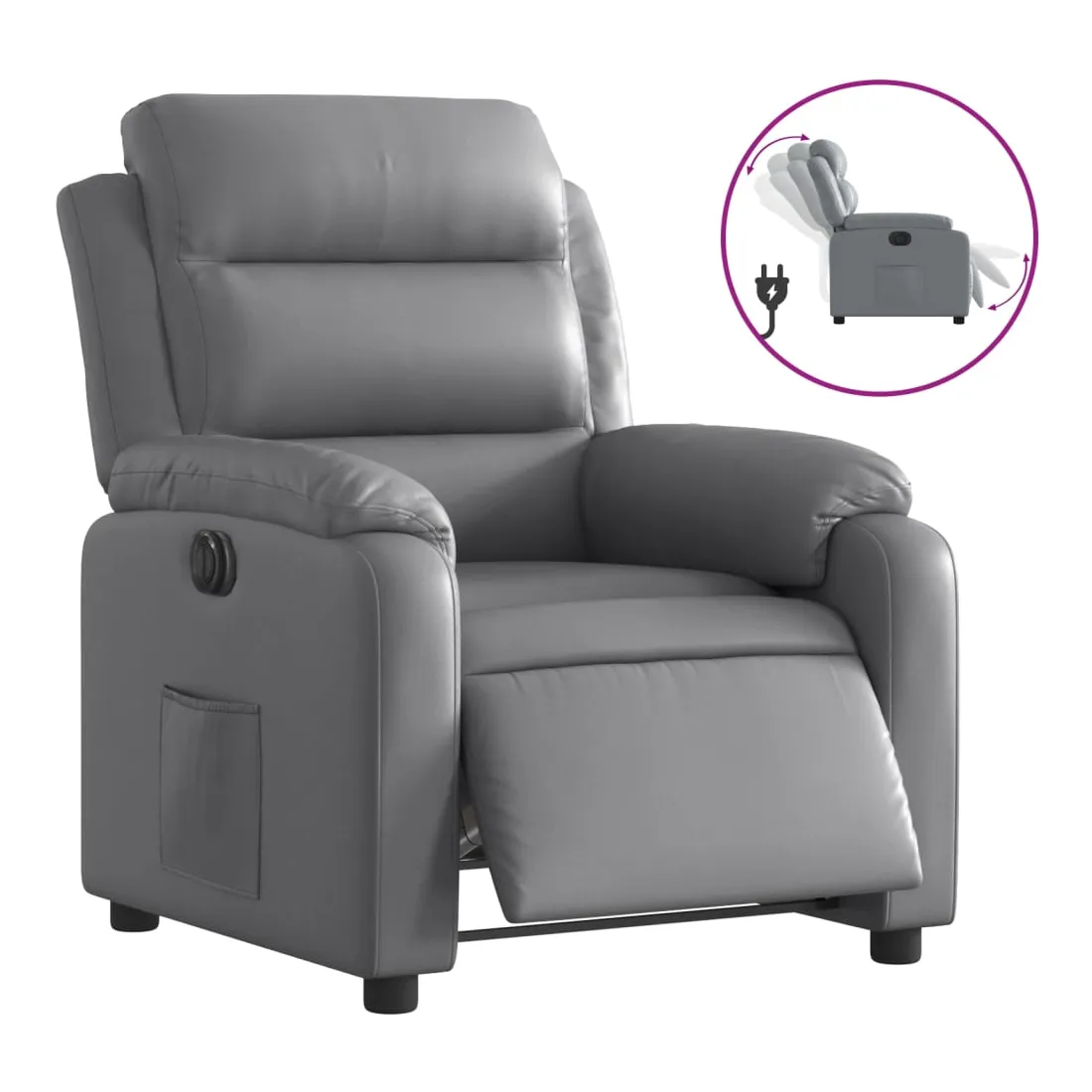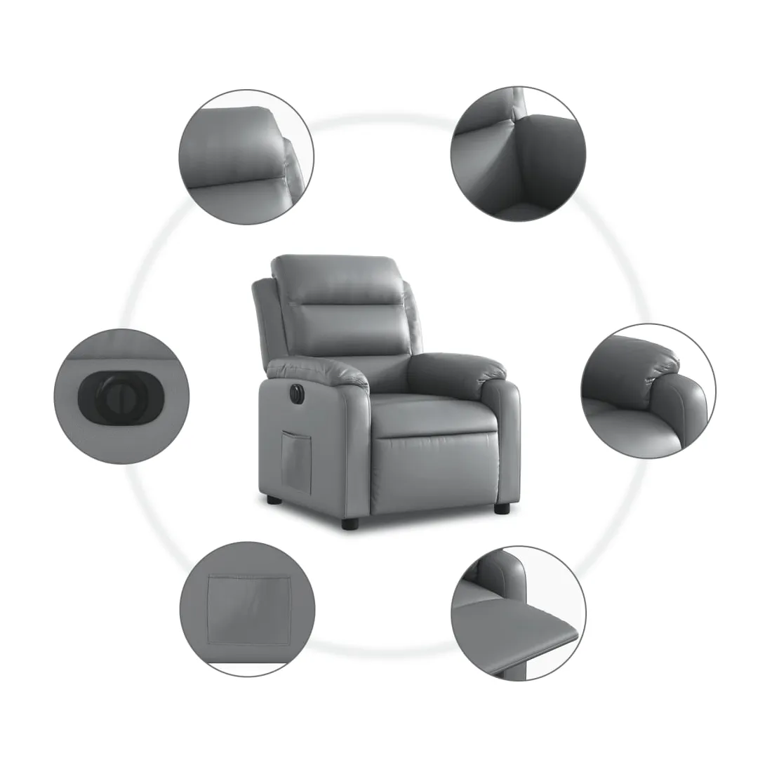 Asseyez-vous et détendez-vous dans ce fauteuil inclinable électrique très confortable ! Fonction d'inclinaison électrique : ce fauteuil inclinable est équipé d'un moteur électrique qui permet de régler automatiquement le repose-pied et le dossier dans n'importe quelle position, selon votre confort, en appuyant simplement sur le bouton situé sur le côté du fauteuil. Cette fonction permet une inclinaison maximale de 135 degrés. En outre, le dossier peut revenir automatiquement à sa position d'origine par une simple pression sur le bouton.Expérience de siège confortable : le siège, le dossier et les larges accoudoirs rembourrés épais recouverts de similicuir procurent une sensation confortable et chaleureuse, vous faisant vous sentir enlacé lorsque vous êtes assis. Le simili cuir est un matériau très résistant. Il est résistant aux taches, ce qui le rend facile à nettoyer avec un chiffon humide. La surface lisse donne également un aspect luxueux et la beauté du cuir véritable.Poche latérale pratique : ce fauteuil est doté d'une poche latérale pour vous permettre de garder vos objets essentiels à portée de main.Cadre solide et stable : le cadre en bois et en métal offre une structure solide et une grande stabilité. Ce fauteuil inclinable est confortable et durable.