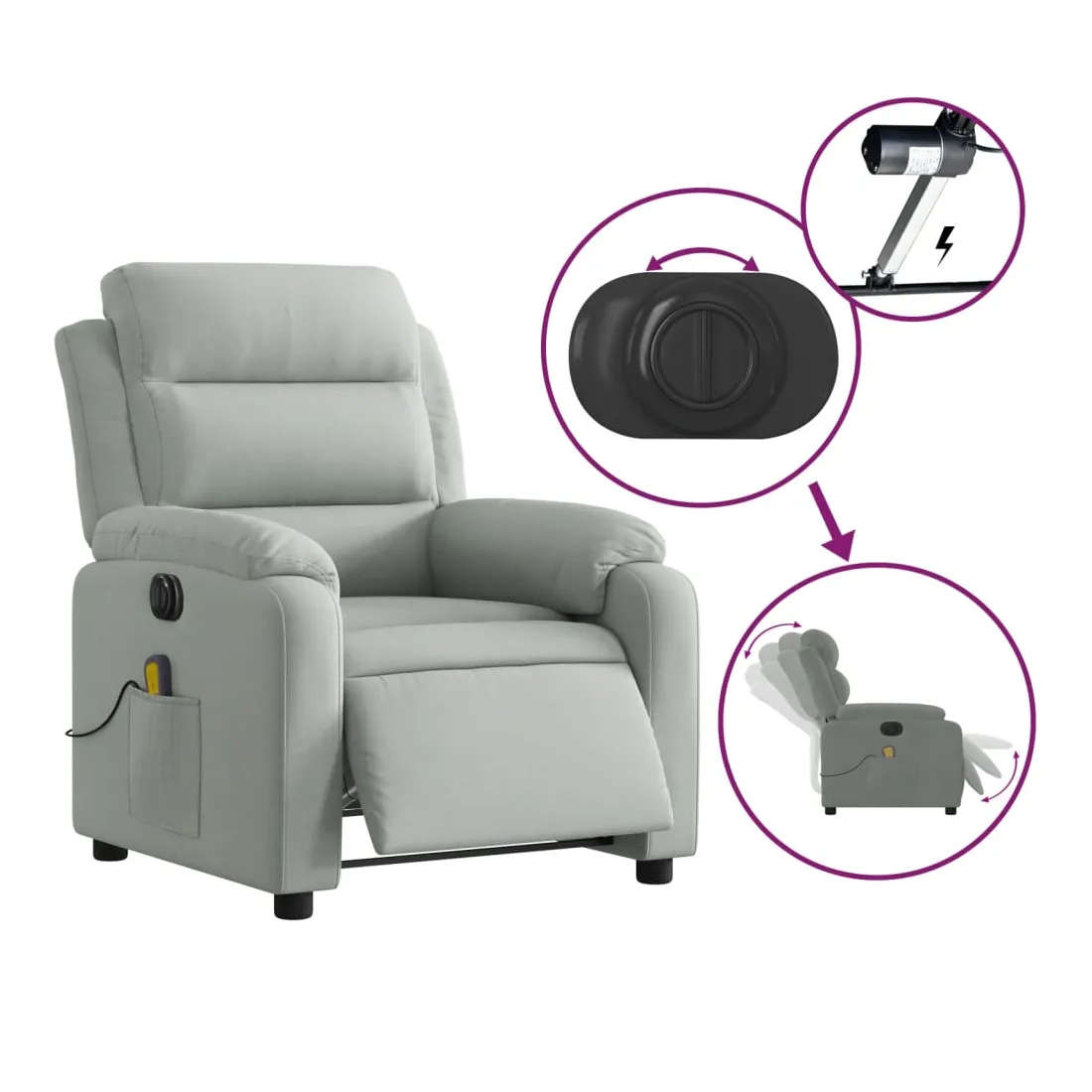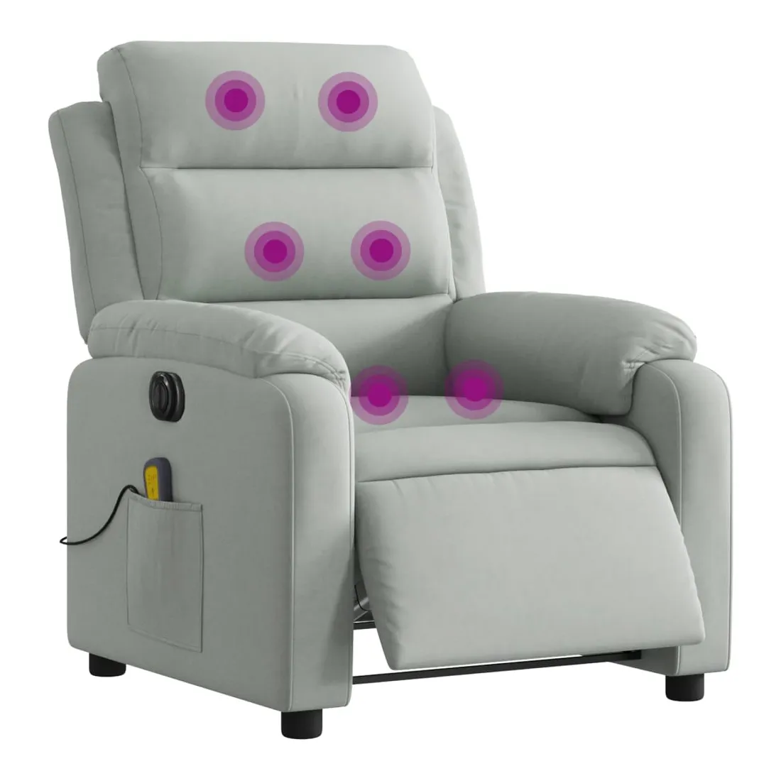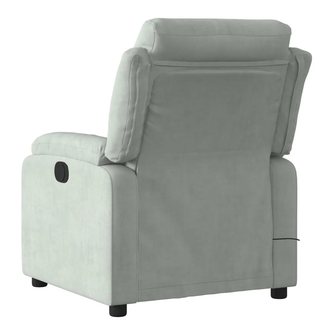 Asseyez-vous et détendez-vous dans ce fauteuil inclinable de massage électrique très confortable ! Fonction d'inclinaison électrique : ce fauteuil inclinable est équipé d'un moteur électrique qui permet de régler automatiquement le repose-pied et le dossier dans n'importe quelle position, selon votre confort, en appuyant simplement sur le bouton situé sur le côté du fauteuil. Cette fonction permet une inclinaison maximale de 135 degrés. En outre, le dossier peut revenir automatiquement à sa position d'origine par une simple pression sur le bouton.Fonction de vibration : les 6 points de massage vous permettent de faire l'expérience d'un massage mieux ciblé. De plus, la télécommande incluse vous permet de choisir différents programmes de massage. La fonction de massage est alimentée par le connecteur USB qui nécessite une source d'alimentation USB certifiée de 5 V (non fournie).Expérience d'assise confortable : le siège, le dossier et les larges accoudoirs rembourrés épais recouverts de velours procurent une sensation confortable et chaleureuse, vous faisant vous sentir enlacé lorsque vous êtes assis. Le velours est un tissu doux et confortable qui est agréable sur la peau.Poche latérale pratique : ce fauteuil est doté d'une poche latérale pour ranger votre télécommande ou garder vos objets essentiels à portée de main.Cadre solide et stable : le cadre en bois et en métal offre une structure solide et une grande stabilité. Ce fauteuil inclinable est confortable et durable.