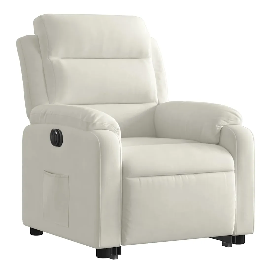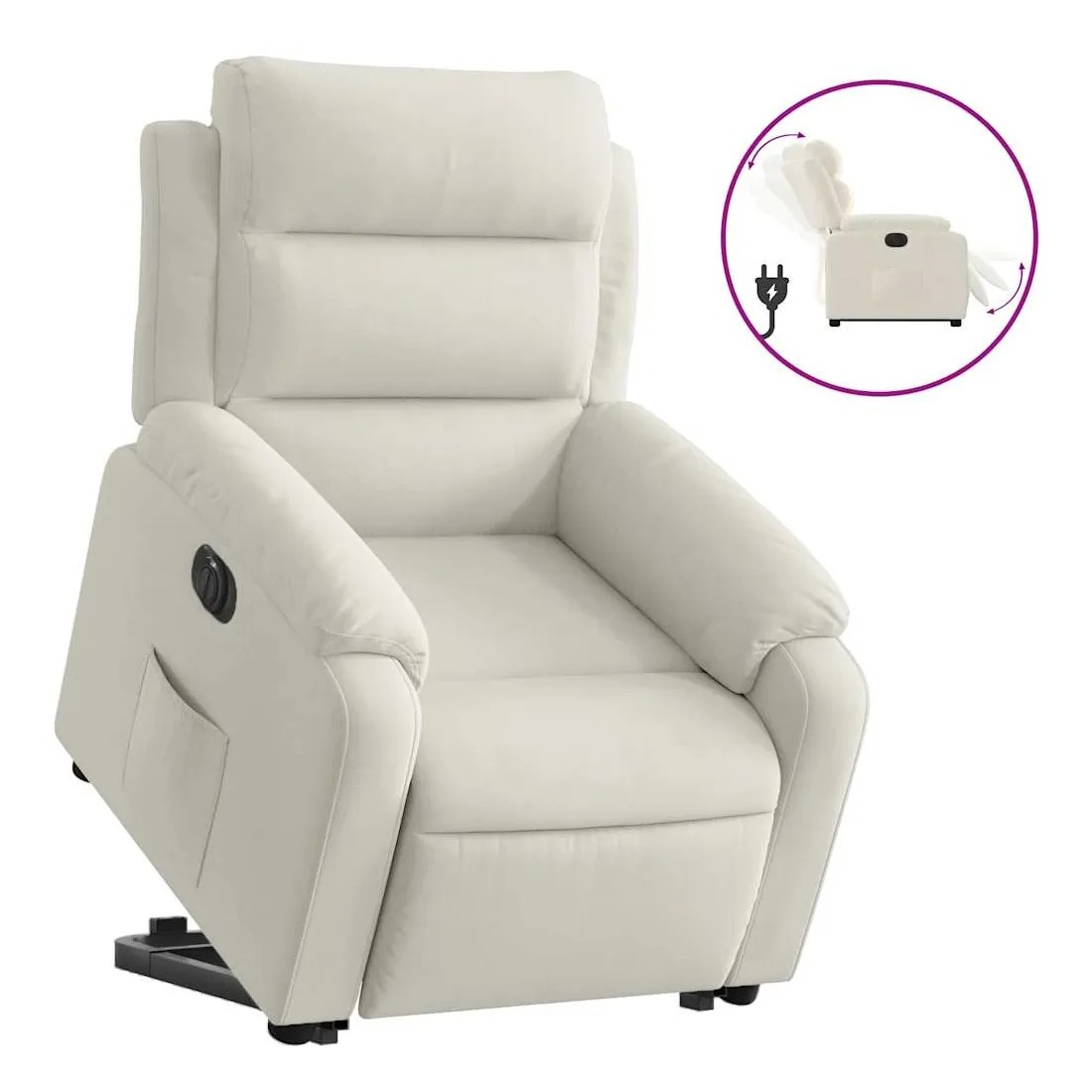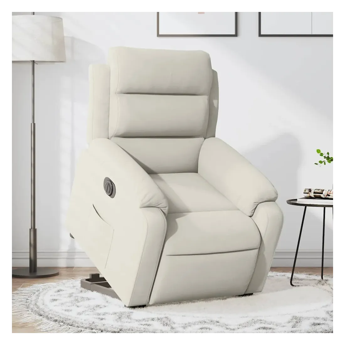 Asseyez-vous et détendez-vous dans ce fauteuil inclinable électrique très confortable ! Fonction de levage électrique : ce fauteuil inclinable pour personnes âgées est équipé d'un moteur électrique pour la fonction de levage. Grâce à la fonction qui pousse toute la chaise vers le haut, vous pouvez facilement vous tenir debout sans stresser votre dos et vos genoux en appuyant simplement sur le bouton.Fonction d'inclinaison électrique : ce fauteuil inclinable est également équipé d'un moteur électrique qui permet de régler automatiquement le repose-pied et le dossier dans n'importe quelle position, selon votre confort, en appuyant simplement sur le bouton situé sur le côté du fauteuil. Cette fonction permet une inclinaison maximale de 135 degrés. En outre, le dossier peut revenir automatiquement à sa position d'origine par une simple pression sur le bouton.Expérience d'assise confortable : le siège, le dossier et les larges accoudoirs rembourrés épais recouverts de velours procurent une sensation confortable et chaleureuse, vous faisant vous sentir enlacé lorsque vous êtes assis. Le velours est un tissu doux et confortable qui est agréable sur la peau.Poche latérale pratique : ce fauteuil est doté d'une poche latérale pour vous permettre de garder vos objets essentiels à portée de main.Cadre solide et stable : le cadre en bois et en métal offre une structure solide et une grande stabilité. Ce fauteuil inclinable est confortable et durable.
