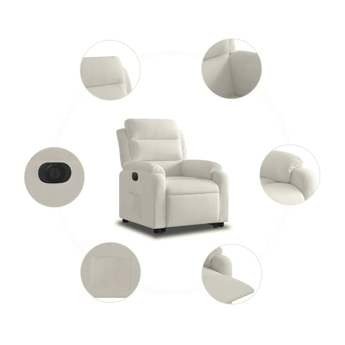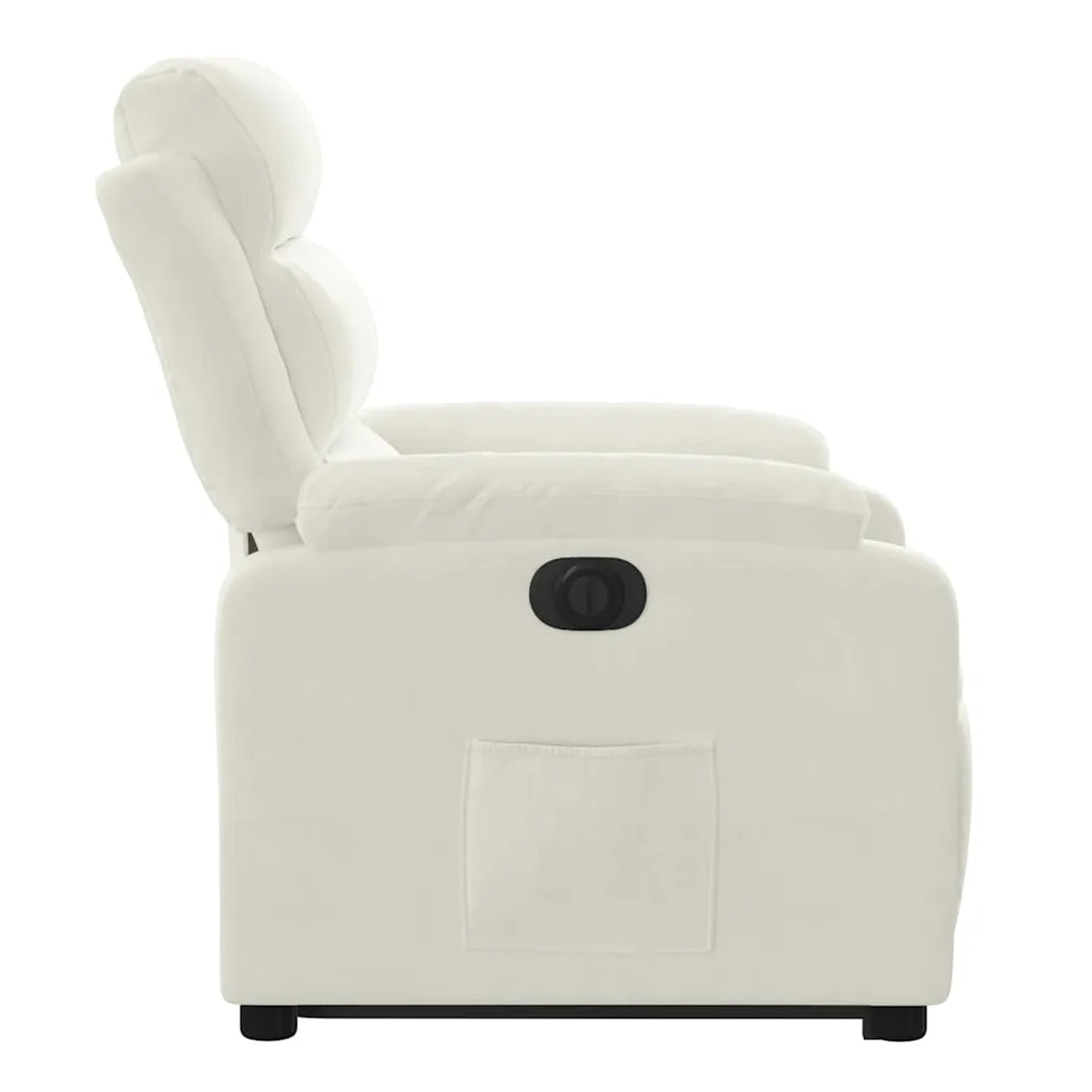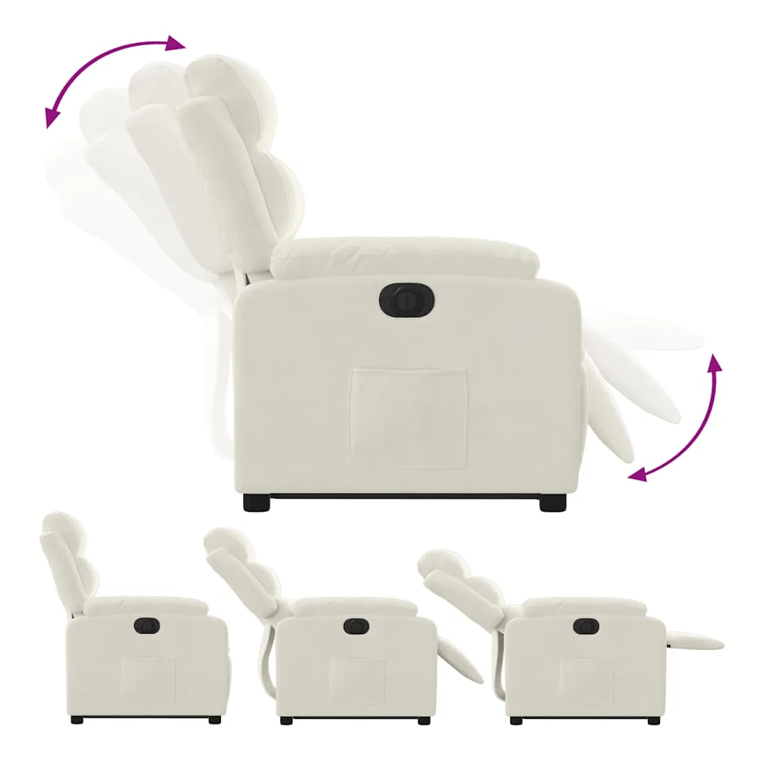 Asseyez-vous et détendez-vous dans ce fauteuil inclinable électrique très confortable ! Fonction de levage électrique : ce fauteuil inclinable pour personnes âgées est équipé d'un moteur électrique pour la fonction de levage. Grâce à la fonction qui pousse toute la chaise vers le haut, vous pouvez facilement vous tenir debout sans stresser votre dos et vos genoux en appuyant simplement sur le bouton.Fonction d'inclinaison électrique : ce fauteuil inclinable est également équipé d'un moteur électrique qui permet de régler automatiquement le repose-pied et le dossier dans n'importe quelle position, selon votre confort, en appuyant simplement sur le bouton situé sur le côté du fauteuil. Cette fonction permet une inclinaison maximale de 135 degrés. En outre, le dossier peut revenir automatiquement à sa position d'origine par une simple pression sur le bouton.Expérience d'assise confortable : le siège, le dossier et les larges accoudoirs rembourrés épais recouverts de velours procurent une sensation confortable et chaleureuse, vous faisant vous sentir enlacé lorsque vous êtes assis. Le velours est un tissu doux et confortable qui est agréable sur la peau.Poche latérale pratique : ce fauteuil est doté d'une poche latérale pour vous permettre de garder vos objets essentiels à portée de main.Cadre solide et stable : le cadre en bois et en métal offre une structure solide et une grande stabilité. Ce fauteuil inclinable est confortable et durable.