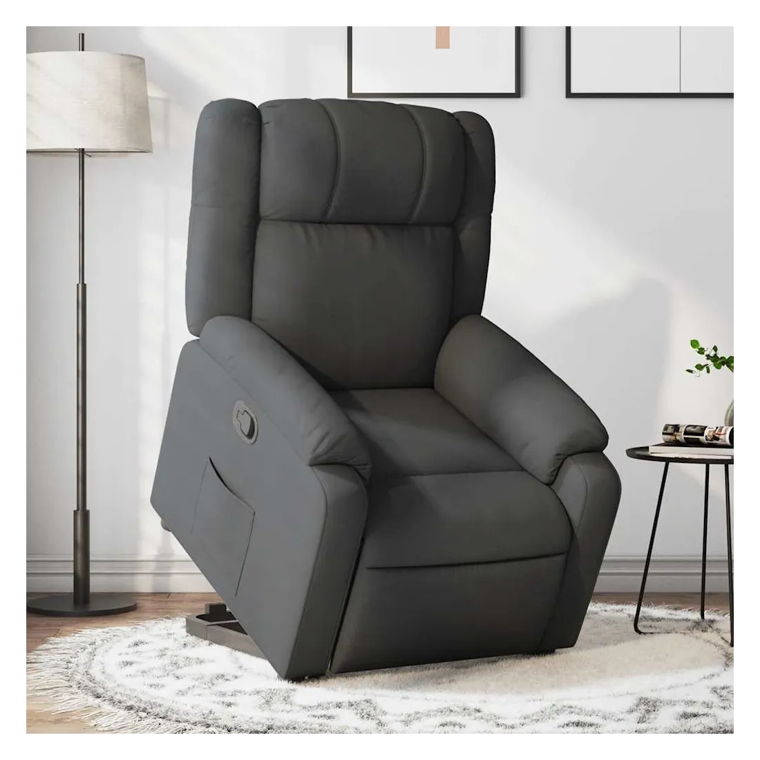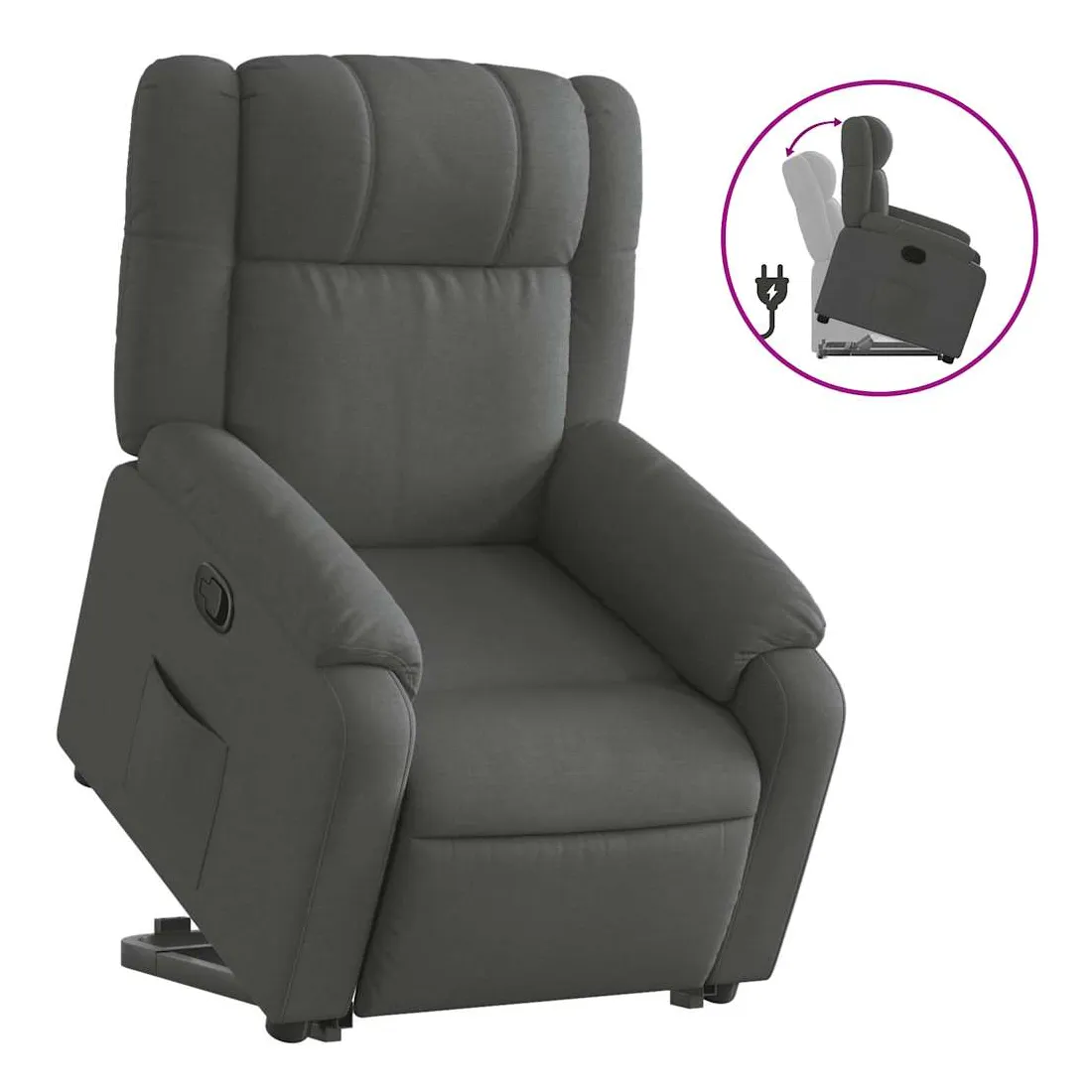 Asseyez-vous et détendez-vous dans ce fauteuil inclinable très confortable ! Fonction de levage électrique : ce fauteuil inclinable pour personnes âgées est équipé d'un moteur électrique pour la fonction de levage. Grâce à la fonction qui pousse toute la chaise vers le haut, vous pouvez facilement vous tenir debout sans stresser votre dos et vos genoux en appuyant simplement sur le bouton.Fonction d'inclinaison manuelle : ce fauteuil inclinable est doté d'une poignée du côté droit. Vous pouvez régler manuellement le repose-pieds et le dossier dans n'importe quelle position selon votre confort en tirant simplement sur la poignée. Cette fonction permet une inclinaison maximale de 135 degrés. De plus, le dossier peut revenir rapidement à sa position d'origine en tirant simplement sur la poignée.Expérience d'assise confortable : le siège, le dossier et les larges accoudoirs bien rembourrés recouverts de tissu procurent une sensation confortable et chaleureuse, vous permettant de vous sentir enveloppé lorsque vous êtes assis. Le tissu présente un aspect simple et épuré et est respirant et durable.Poche latérale pratique : ce fauteuil est doté d'une poche latérale pour vous permettre de garder vos objets essentiels à portée de main.Cadre solide et stable : le cadre en bois et en métal offre une structure solide et une grande stabilité. Ce fauteuil inclinable est confortable et durable.