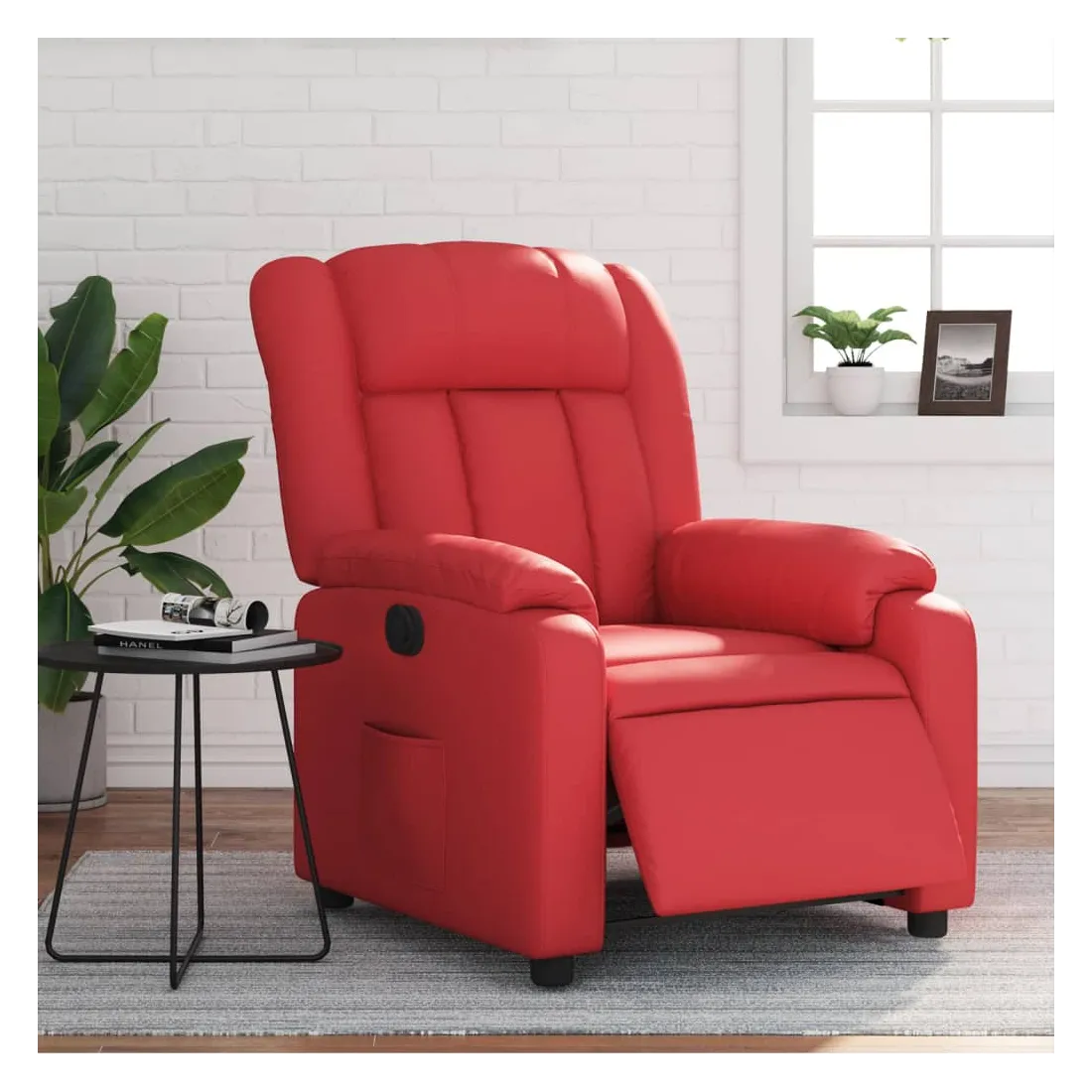Asseyez-vous et détendez-vous dans ce fauteuil inclinable électrique très confortable ! Fonction d'inclinaison électrique : ce fauteuil inclinable est équipé d'un moteur électrique qui permet de régler automatiquement le repose-pied et le dossier dans n'importe quelle position, selon votre confort, en appuyant simplement sur le bouton situé sur le côté du fauteuil. Cette fonction permet une inclinaison maximale de 135 degrés. En outre, le dossier peut revenir automatiquement à sa position d'origine par une simple pression sur le bouton.Expérience de siège confortable : le siège, le dossier et les larges accoudoirs rembourrés épais recouverts de similicuir procurent une sensation confortable et chaleureuse, vous faisant vous sentir enlacé lorsque vous êtes assis. Le simili cuir est un matériau très résistant. Il est résistant aux taches, ce qui le rend facile à nettoyer avec un chiffon humide. La surface lisse donne également un aspect luxueux et la beauté du cuir véritable.Poche latérale pratique : ce fauteuil est doté d'une poche latérale pour vous permettre de garder vos objets essentiels à portée de main.Cadre solide et stable : le cadre en bois et en métal offre une structure solide et une grande stabilité. Ce fauteuil inclinable est confortable et durable.
