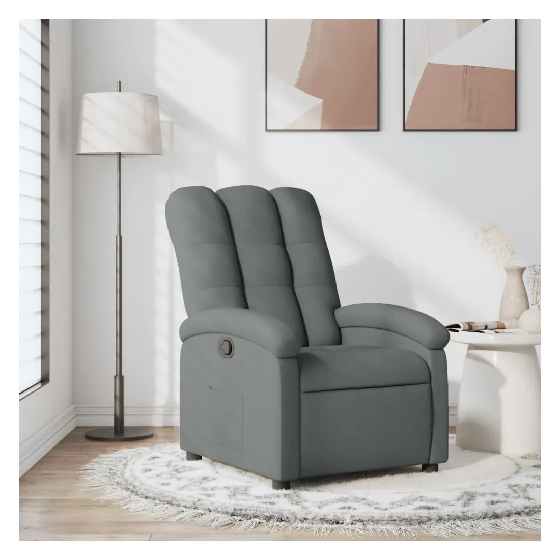 Asseyez-vous et laissez-vous emporter par ce fauteuil inclinable ultra-confortable ! Fonction d'inclinaison manuelle : Ce fauteuil inclinable est doté d'une poignée sur le côté droit. Vous pouvez régler manuellement le repose-pieds et le dossier à votre convenance d'une simple traction sur la poignée. Cette fonction permet une inclinaison maximale de 135 degrés. De plus, le dossier peut revenir rapidement à sa position initiale d'une simple traction sur la poignée.Assise confortable : L'assise, le dossier et les larges accoudoirs rembourrés et recouverts de tissu offrent une sensation de confort et de chaleur, vous permettant de vous sentir bien installé. Le tissu, au look simple et épuré, est respirant et durable.Poche latérale pratique : Ce fauteuil est doté d'une poche latérale pour garder vos objets essentiels à portée de main.Cadre solide et stable : Le cadre en bois et en métal offre une structure solide et stable. Ce fauteuil inclinable est confortable et durable.