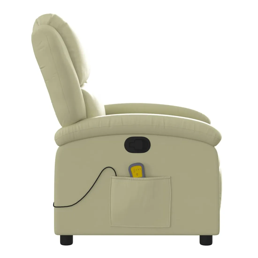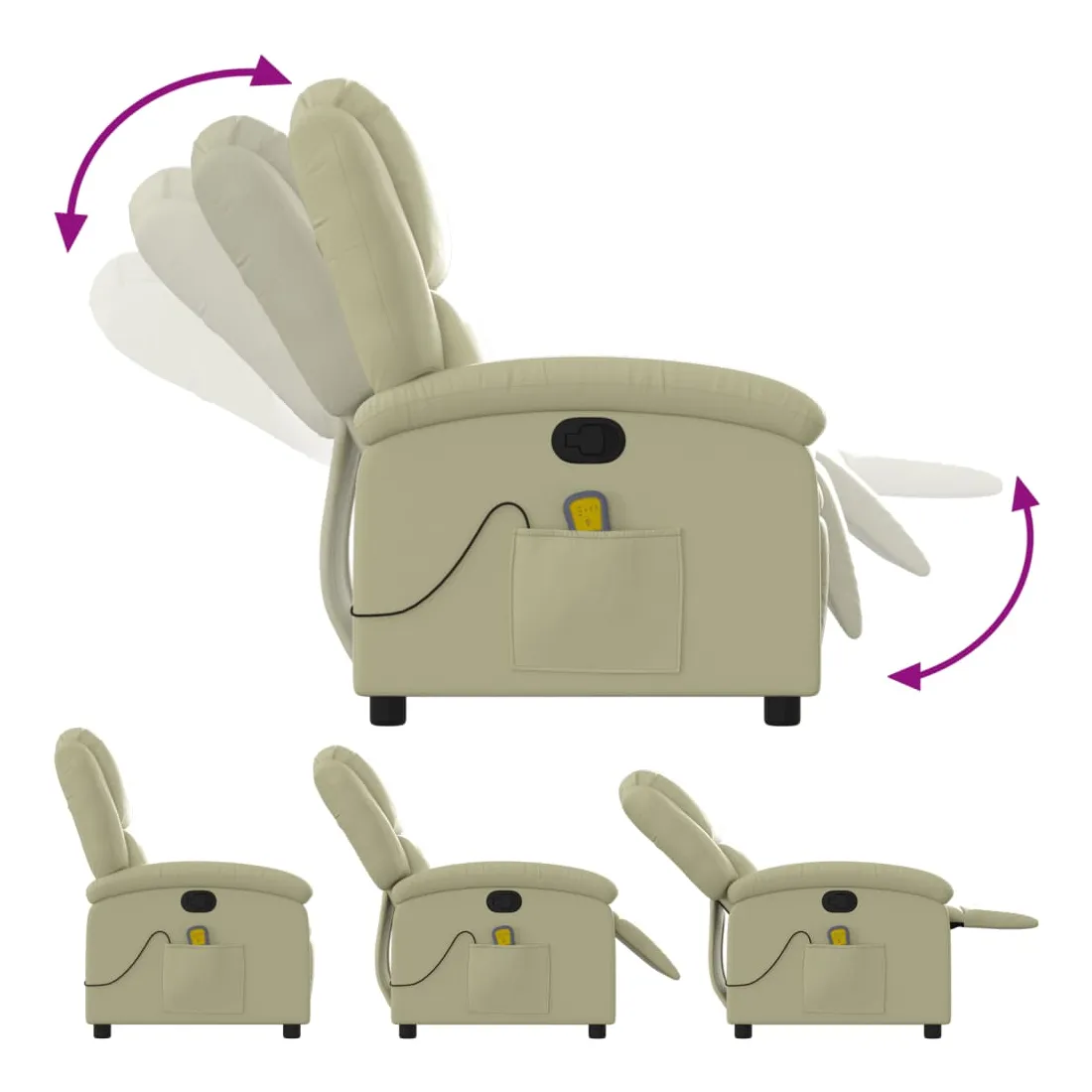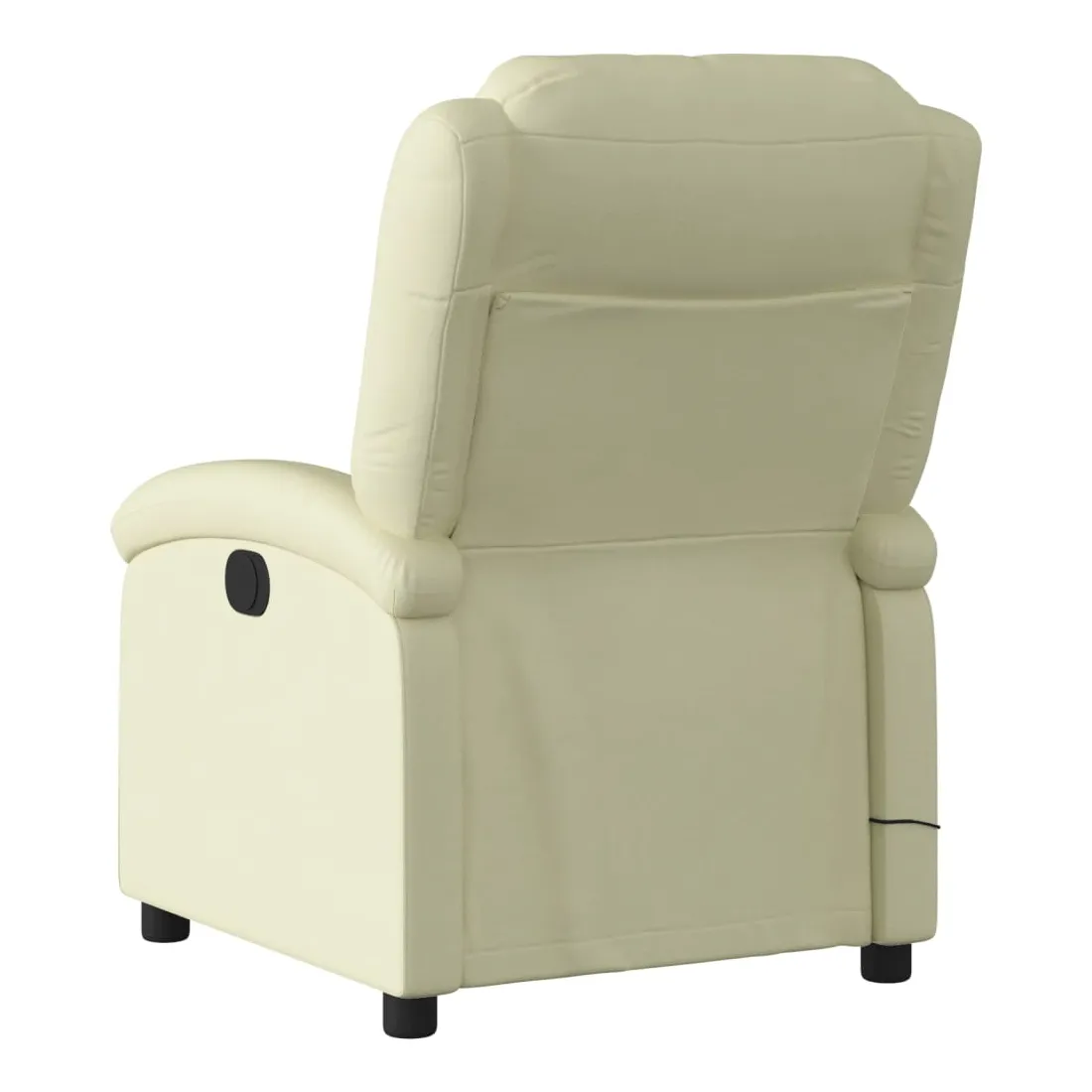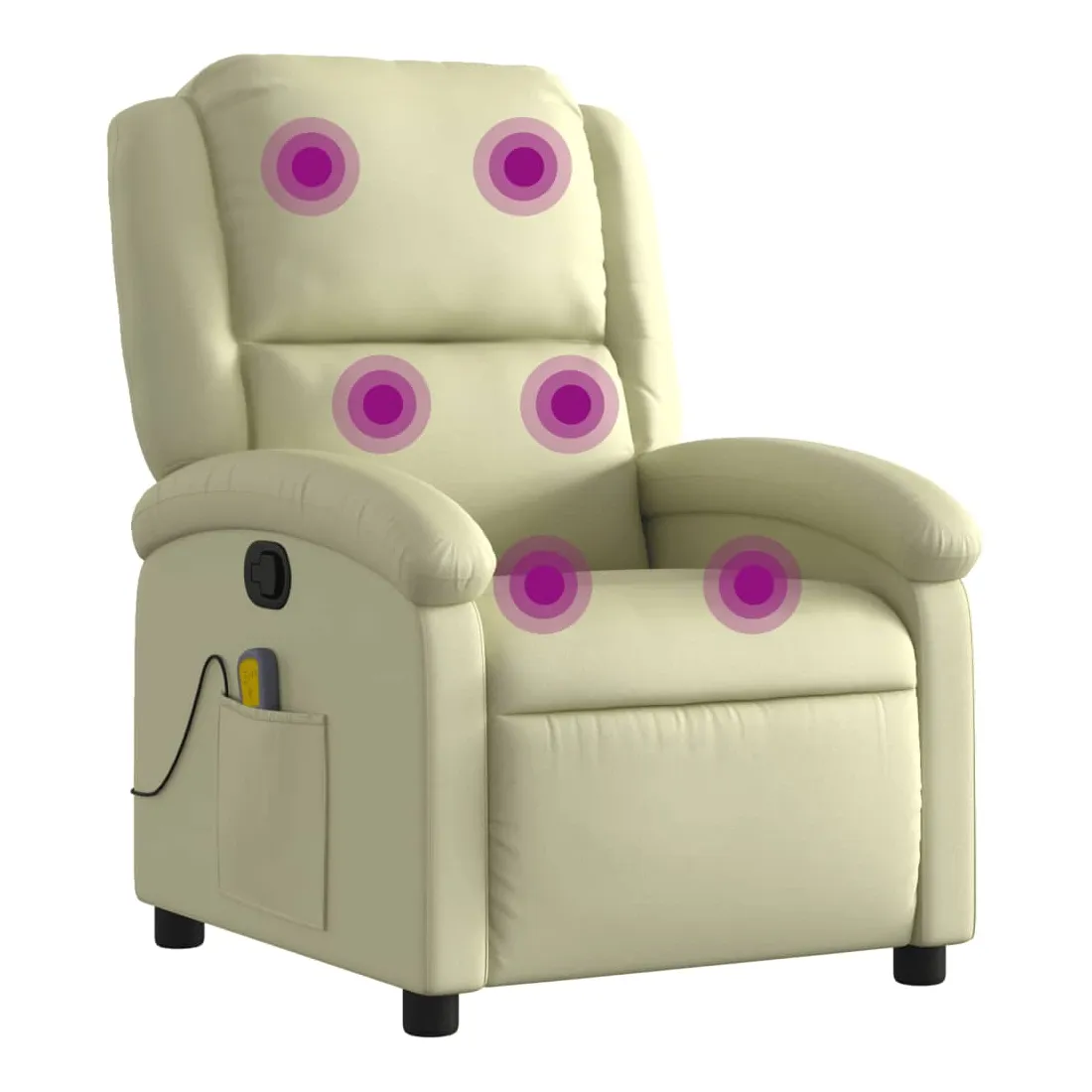 Asseyez-vous et détendez-vous dans ce fauteuil inclinable de massage très confortable ! Fonction d'inclinaison manuelle : ce fauteuil inclinable est doté d'un bouton du côté droit. Vous pouvez régler manuellement le repose-pieds et le dossier dans n'importe quelle position selon votre confort en tirant simplement sur la poignée. Cette fonction permet une inclinaison maximale de 135 degrés. De plus, le dossier peut revenir rapidement à sa position d'origine en tirant simplement sur la poignée.Fonction de vibration : les 6 points de massage vous permettent de faire l'expérience d'un massage mieux ciblé. De plus, la télécommande incluse vous permet de choisir différents programmes de massage. La fonction de massage est alimentée par le connecteur USB, mais la source d'alimentation USB 5V certifiée n'est pas incluse.Expérience de siège confortable : le siège, le dossier et les larges accoudoirs rembourrés épais recouverts de cuir véritable procurent une sensation confortable, vous faisant vous sentir enlacé lorsque vous êtes assis. Le cuir véritable est un matériau naturellement intemporel. Il peut durer toute une vie avec des soins et un entretien appropriés. La surface lisse lui donne également un aspect élégant tout en garantissant un confort optimal.Poche latérale pratique : ce fauteuil est doté d'une poche latérale pour ranger votre télécommande ou garder vos objets essentiels à portée de main.Cadre solide et stable : le cadre en bois et en métal offre une structure solide et une grande stabilité. Ce fauteuil inclinable est confortable et durable.