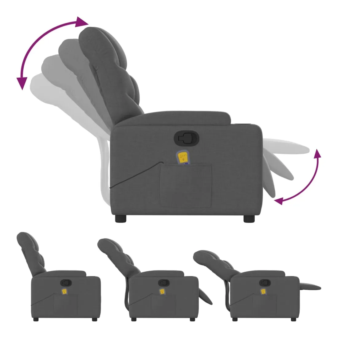 Fauteuil de massage inclinable gris foncé tissu