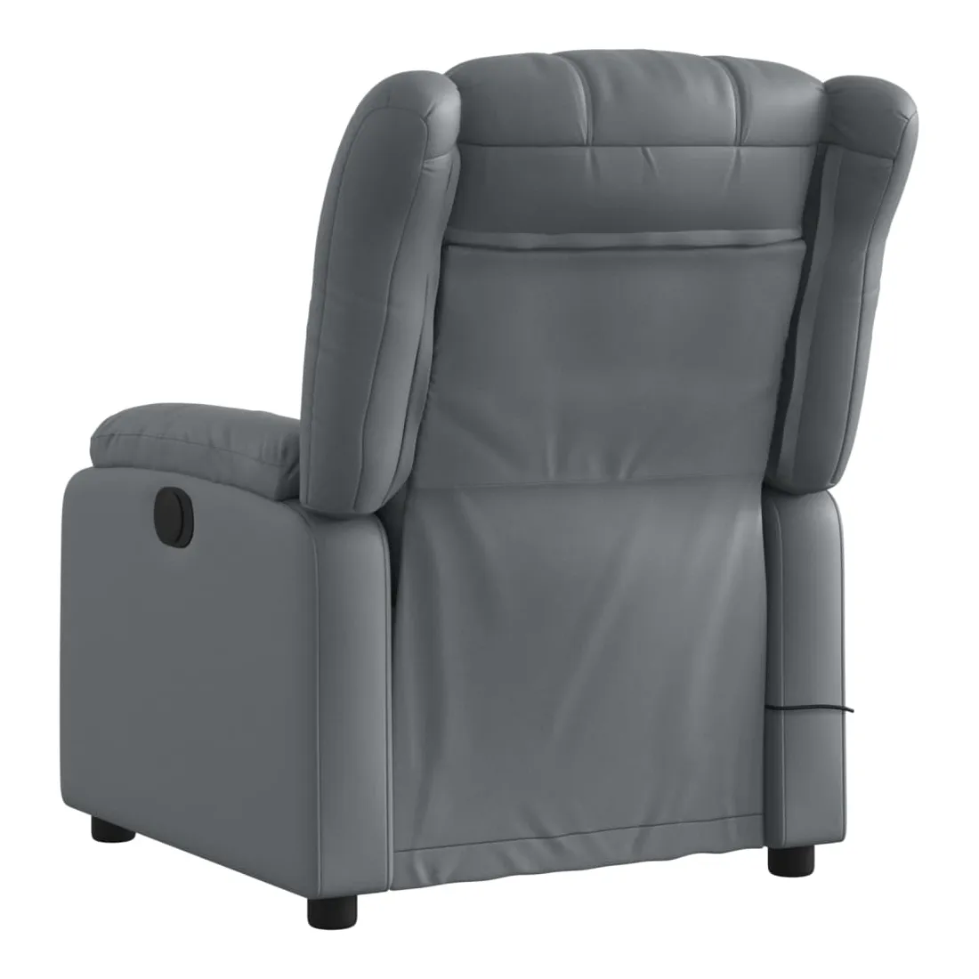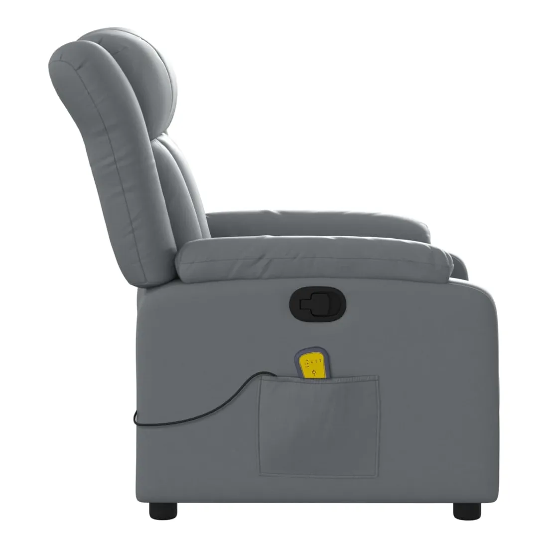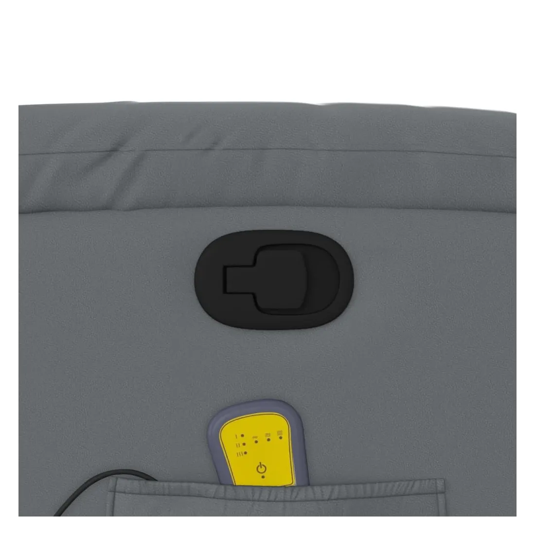 Asseyez-vous et détendez-vous dans ce fauteuil inclinable de massage très confortable ! Fonction d'inclinaison manuelle : ce fauteuil inclinable est doté d'une poignée du côté droit. Vous pouvez régler manuellement le repose-pieds et le dossier dans n'importe quelle position selon votre confort en tirant simplement sur la poignée. Cette fonction permet une inclinaison maximale de 135 degrés. De plus, le dossier peut revenir rapidement à sa position d'origine en tirant simplement sur la poignée.Fonction de vibration : les 6 points de massage vous permettent de faire l'expérience d'un massage mieux ciblé. De plus, la télécommande incluse vous permet de choisir différents programmes de massage. La fonction de massage est alimentée par le connecteur USB, mais la source d'alimentation USB 5V certifiée n'est pas incluse.Expérience de siège confortable : le siège, le dossier et les larges accoudoirs rembourrés épais recouverts de similicuir procurent une sensation confortable, vous faisant vous sentir enlacé lorsque vous êtes assis. Le similicuir est un matériau très résistant. Il est résistant aux taches, ce qui le rend facile à nettoyer avec un chiffon humide. La surface lisse donne également un aspect luxueux et la beauté du cuir véritable.Poche latérale pratique : ce fauteuil est doté d'une poche latérale pour ranger votre télécommande ou garder vos objets essentiels à portée de main.Cadre solide et stable : le cadre en bois et en métal offre une structure solide et une grande stabilité. Ce fauteuil inclinable est confortable et durable.