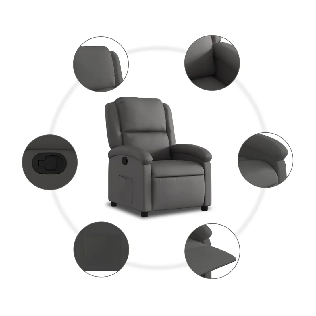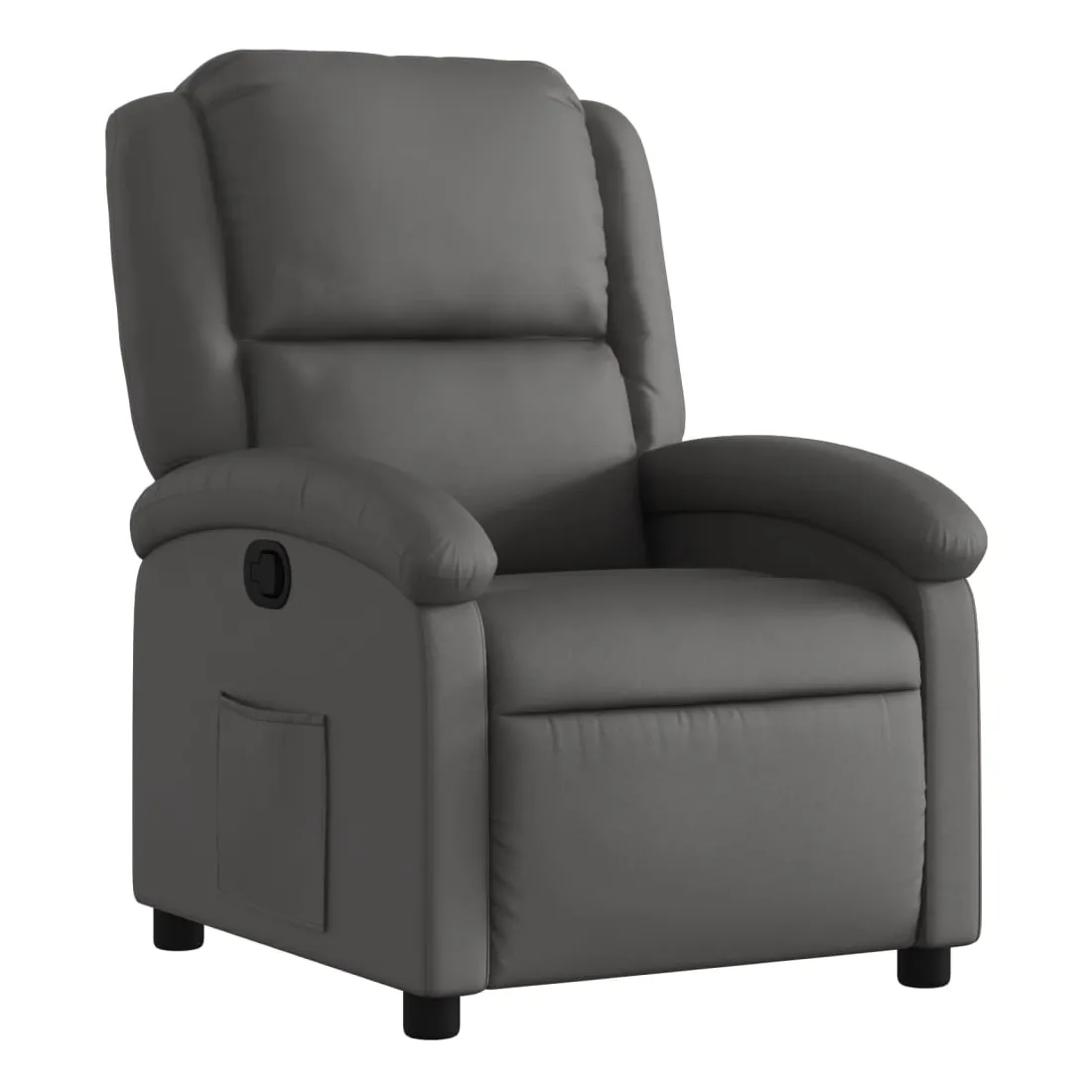 Asseyez-vous et détendez-vous dans ce fauteuil inclinable très confortable ! Fonction d'inclinaison manuelle : ce fauteuil inclinable est doté d'un bouton du côté droit. Vous pouvez régler manuellement le repose-pieds et le dossier dans n'importe quelle position selon votre confort en tirant simplement sur la poignée. Cette fonction permet une inclinaison maximale de 135 degrés. De plus, le dossier peut revenir rapidement à sa position d'origine en tirant simplement sur la poignée.Expérience de siège confortable : le siège, le dossier et les larges accoudoirs rembourrés épais recouverts de cuir véritable procurent une sensation confortable, vous faisant vous sentir enlacé lorsque vous êtes assis. Le cuir véritable est un matériau naturellement intemporel. Il peut durer toute une vie avec des soins et un entretien appropriés. La surface lisse lui donne également un aspect élégant tout en garantissant un confort optimal.Poche latérale pratique : ce fauteuil est doté d'une poche latérale pour vous permettre de garder vos objets essentiels à portée de main.Cadre solide et stable : le cadre en bois et en métal offre une structure solide et une grande stabilité. Ce fauteuil inclinable est confortable et durable.