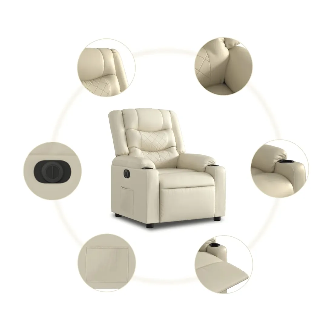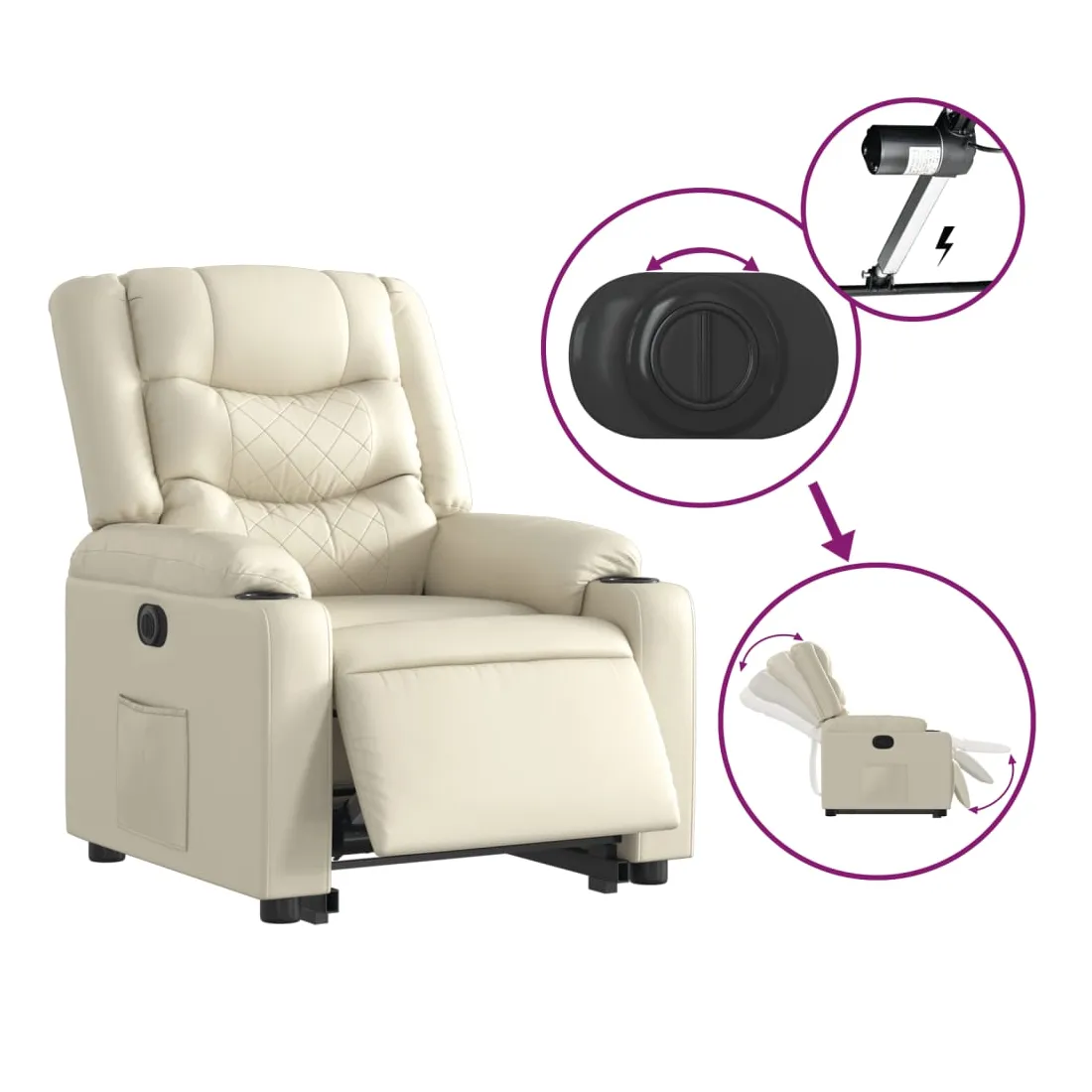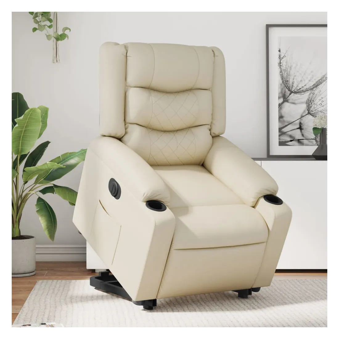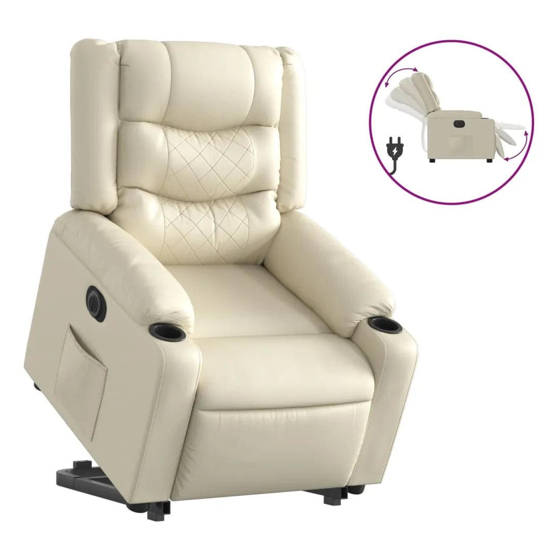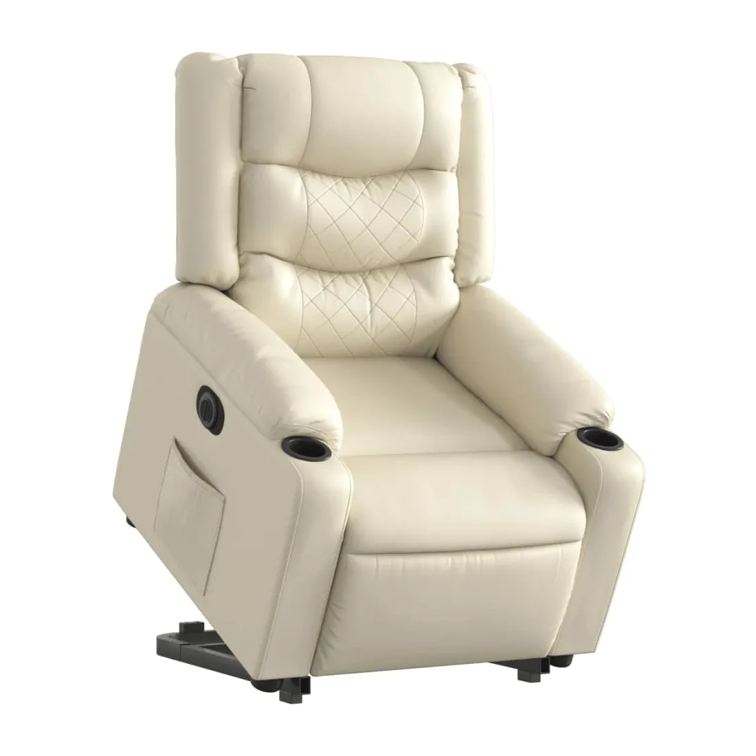 Asseyez-vous et détendez-vous dans ce fauteuil inclinable électrique très confortable ! Fonction de levage électrique : ce fauteuil inclinable pour personnes âgées est équipé d'un moteur électrique pour la fonction de levage. Grâce à la fonction qui pousse toute la chaise vers le haut, vous pouvez facilement vous tenir debout sans stresser votre dos et vos genoux en appuyant simplement sur le bouton.Fonction d'inclinaison électrique : ce fauteuil inclinable est également équipé d'un moteur électrique qui permet de régler automatiquement le repose-pied et le dossier dans n'importe quelle position, selon votre confort, en appuyant simplement sur le bouton situé sur le côté du fauteuil. Cette fonction permet une inclinaison maximale de 135 degrés. En outre, le dossier peut revenir automatiquement à sa position d'origine par une simple pression sur le bouton.Expérience de siège confortable : le siège, le dossier et les larges accoudoirs rembourrés épais recouverts de similicuir procurent une sensation confortable, vous faisant vous sentir enlacé lorsque vous êtes assis. Le similicuir est un matériau très résistant. Il est résistant aux taches, ce qui le rend facile à nettoyer avec un chiffon humide. La surface lisse donne également un aspect luxueux et la beauté du cuir véritable.Poche latérale pratique : ce fauteuil est doté d'une poche latérale pour vous permettre de garder vos objets essentiels à portée de main.Cadre solide et stable : le cadre en bois et en métal offre une structure solide et une grande stabilité. Ce fauteuil inclinable est confortable et durable.