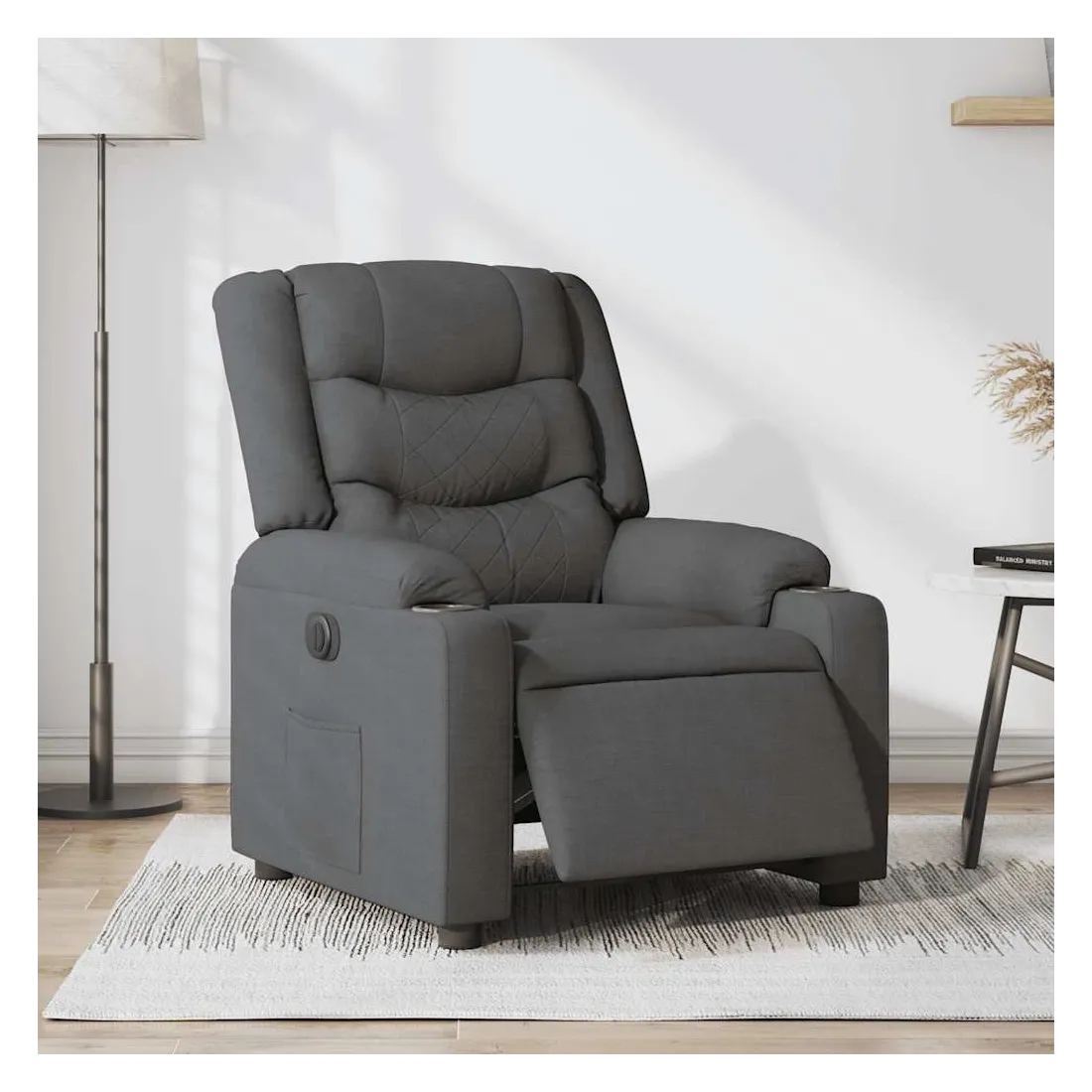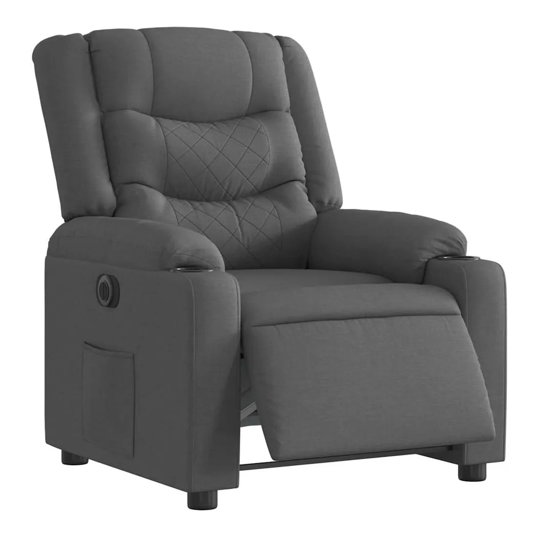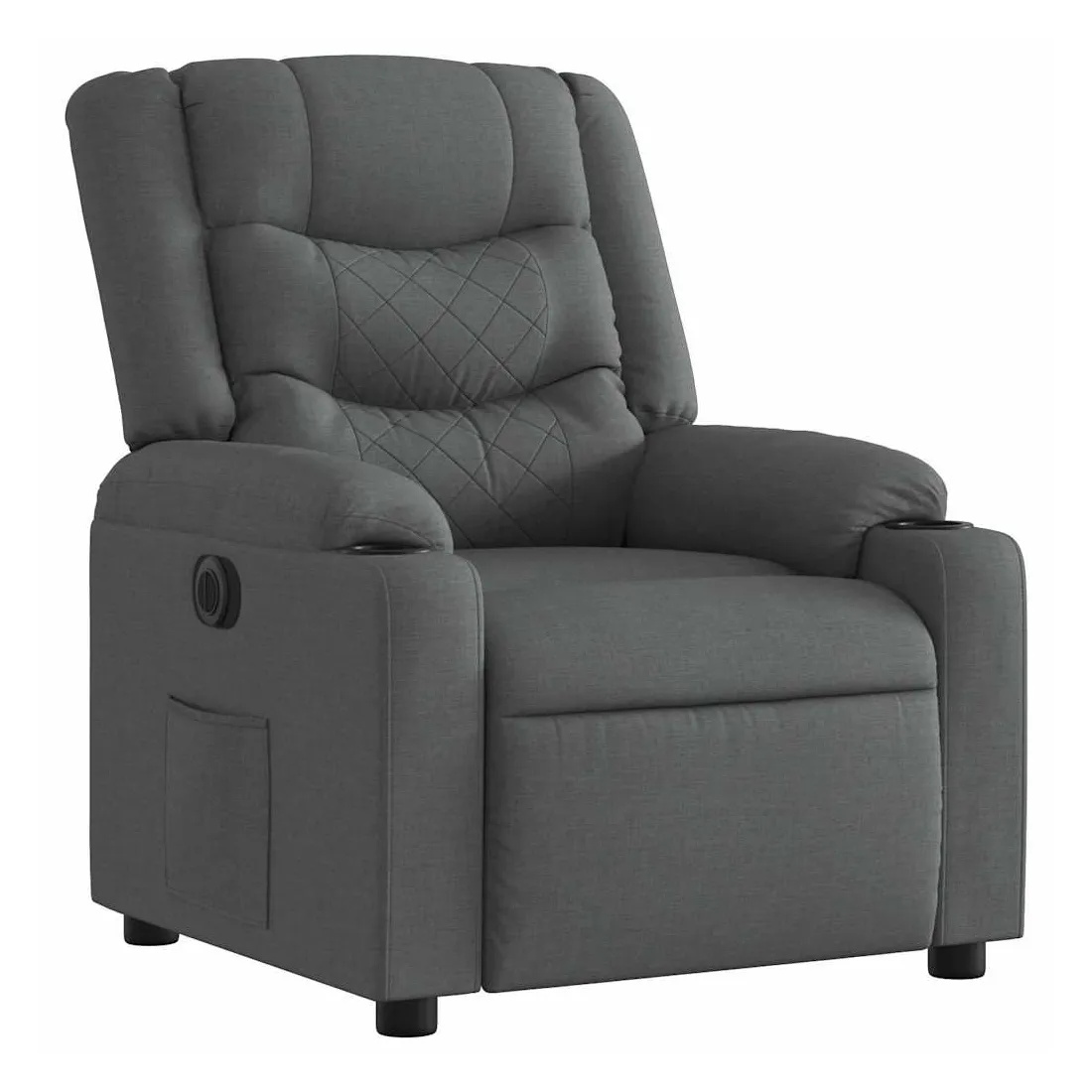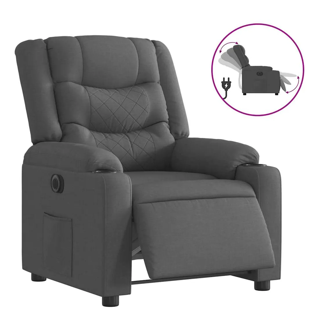 Asseyez-vous et détendez-vous dans ce fauteuil inclinable électrique très confortable ! Fonction d'inclinaison électrique : ce fauteuil inclinable est équipé d'un moteur électrique qui permet de régler automatiquement le repose-pied et le dossier dans n'importe quelle position, selon votre confort, en appuyant simplement sur le bouton situé sur le côté du fauteuil. Cette fonction permet une inclinaison maximale de 135 degrés. En outre, le dossier peut revenir automatiquement à sa position d'origine par une simple pression sur le bouton.Expérience d'assise confortable : le siège, le dossier et les larges accoudoirs bien rembourrés recouverts de tissu procurent une sensation confortable et chaleureuse, vous permettant de vous sentir enveloppé lorsque vous êtes assis. Le tissu présente un aspect simple et épuré et est respirant et durable.Poche latérale pratique : ce fauteuil est doté d'une poche latérale pour vous permettre de garder vos objets essentiels à portée de main.Cadre solide et stable : le cadre en bois et en métal offre une structure solide et une grande stabilité. Ce fauteuil inclinable est confortable et durable.