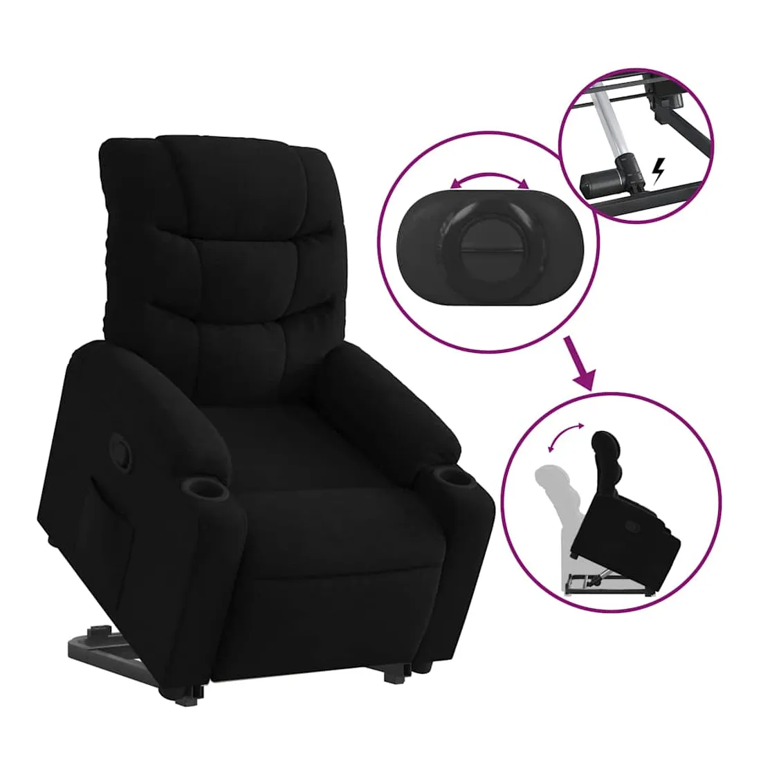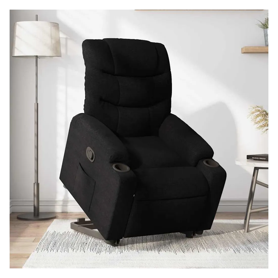 Asseyez-vous et détendez-vous dans ce fauteuil inclinable très confortable ! Fonction de levage électrique : ce fauteuil inclinable pour personnes âgées est équipé d'un moteur électrique pour la fonction de levage. Grâce à la fonction qui pousse toute la chaise vers le haut, vous pouvez facilement vous tenir debout sans stresser votre dos et vos genoux en appuyant simplement sur le bouton.Fonction d'inclinaison manuelle : ce fauteuil inclinable est doté d'une poignée du côté droit. Vous pouvez régler manuellement le repose-pieds et le dossier dans n'importe quelle position selon votre confort en tirant simplement sur la poignée. Cette fonction permet une inclinaison maximale de 135 degrés. De plus, le dossier peut revenir rapidement à sa position d'origine en tirant simplement sur la poignée.Expérience d'assise confortable : le siège, le dossier et les larges accoudoirs bien rembourrés recouverts de tissu procurent une sensation confortable et chaleureuse, vous permettant de vous sentir enveloppé lorsque vous êtes assis. Le tissu présente un aspect simple et épuré et est respirant et durable.Poche latérale pratique : ce fauteuil est doté d'une poche latérale pour vous permettre de garder vos objets essentiels à portée de main.Cadre solide et stable : le cadre en bois et en métal offre une structure solide et une grande stabilité. Ce fauteuil inclinable est confortable et durable.