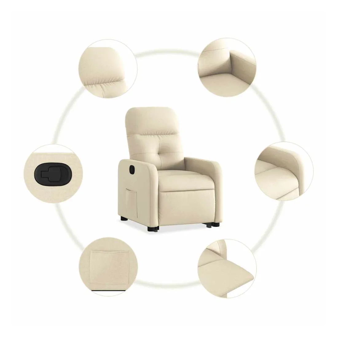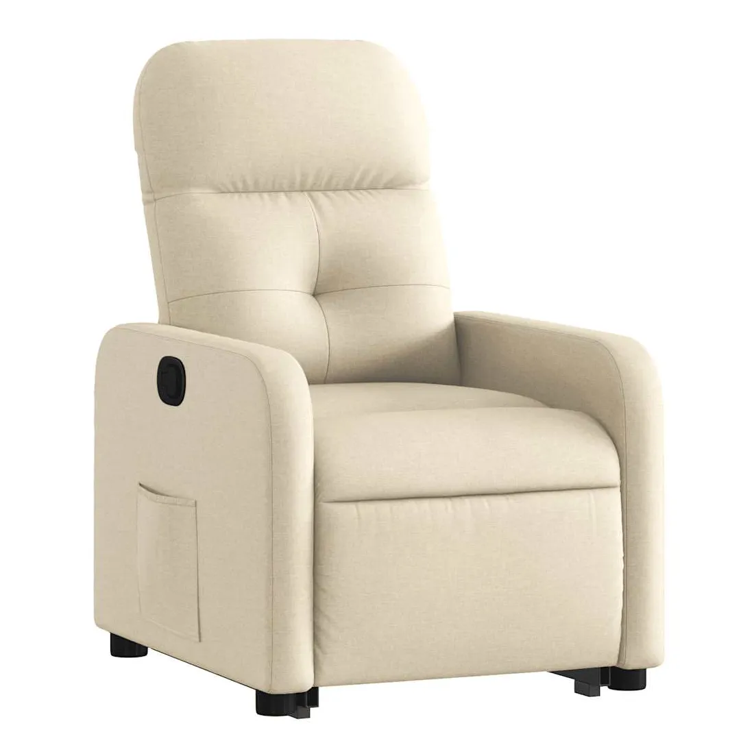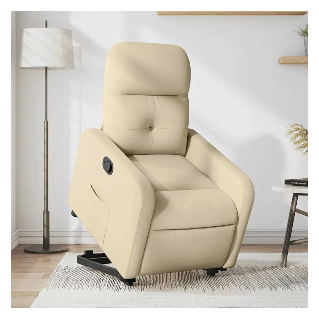Asseyez-vous et détendez-vous dans ce fauteuil inclinable très confortable ! Fonction de levage électrique : ce fauteuil inclinable pour personnes âgées est équipé d'un moteur électrique pour la fonction de levage. Grâce à la fonction qui pousse toute la chaise vers le haut, vous pouvez facilement vous tenir debout sans stresser votre dos et vos genoux en appuyant simplement sur le bouton.Fonction d'inclinaison manuelle : ce fauteuil inclinable est doté d'une poignée du côté droit. Vous pouvez régler manuellement le repose-pieds et le dossier dans n'importe quelle position selon votre confort en tirant simplement sur la poignée. Cette fonction permet une inclinaison maximale de 135 degrés. De plus, le dossier peut revenir rapidement à sa position d'origine en tirant simplement sur la poignée.Expérience d'assise confortable : le siège, le dossier et les larges accoudoirs bien rembourrés recouverts de tissu procurent une sensation confortable et chaleureuse, vous permettant de vous sentir enveloppé lorsque vous êtes assis. Le tissu présente un aspect simple et épuré et est respirant et durable.Poche latérale pratique : ce fauteuil est doté d'une poche latérale pour vous permettre de garder vos objets essentiels à portée de main.Cadre solide et stable : le cadre en bois et en métal offre une structure solide et une grande stabilité. Ce fauteuil inclinable est confortable et durable.