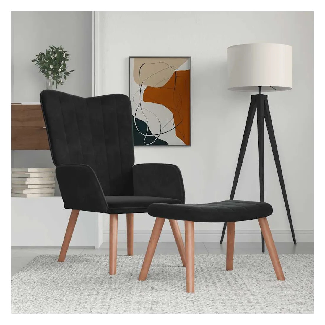 Cette chaise de relaxation avec repose-pied est un excellent supplément à votre décor existant. Ce fauteuil, avec quelques lignes sur son dossier, est esthétique. Grâce à sa mousse capitonnée recouverte de velours doux au toucher, vous pourrez profiter d'un confort optimal pendant votre temps d'assise. Soutenu par un cadre en acier et des pieds en bois, le fauteuil de relaxation avec repose-pied est stable et durable.