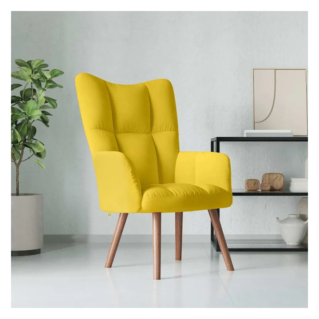 Cette chaise de relaxation est un excellent supplément à votre décor existant. Ce fauteuil, avec quelques blocs sur son dossier, est esthétique. Grâce à sa mousse épaisse capitonnée recouverte de velours doux au toucher, vous pourrez profiter d'un confort optimal pendant votre temps d'assise. Soutenu par un cadre en acier et des pieds en bois, le fauteuil de relaxation est stable et durable.