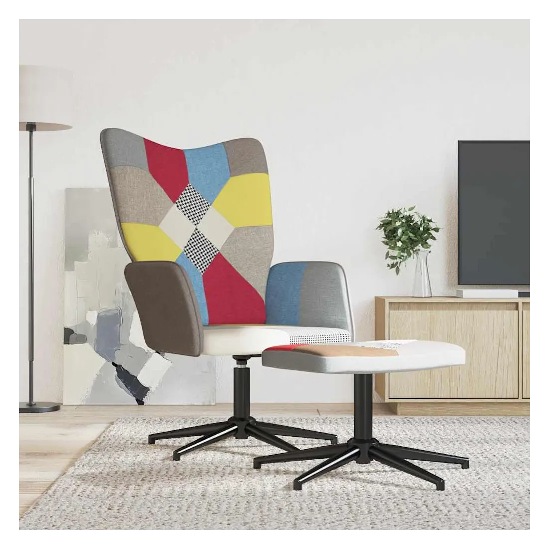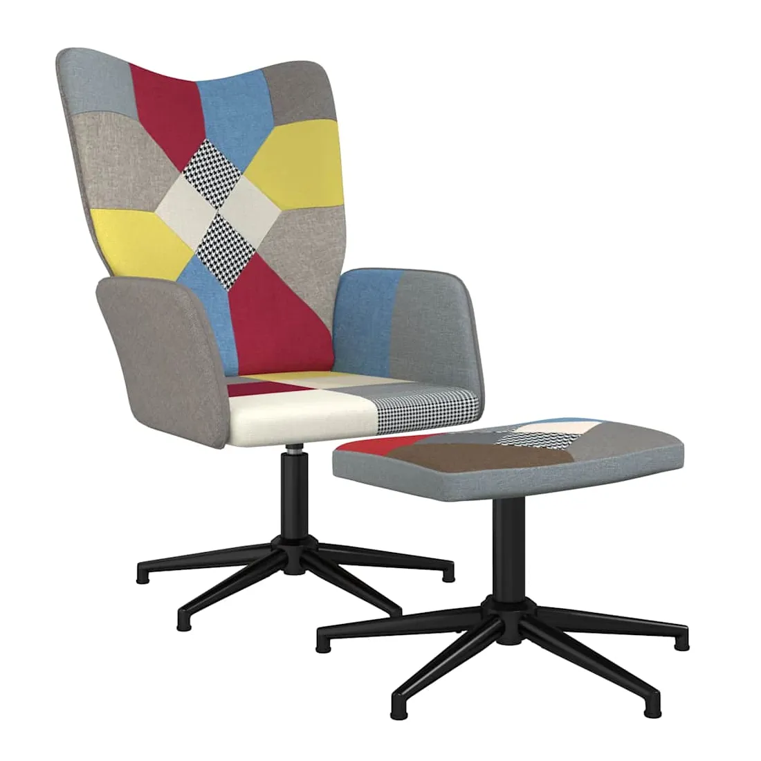Cette chaise de relaxation avec repose-pied est un excellent supplément à votre décor existant. Ce fauteuil, au design patchwork brillant, est esthétiquement plaisant. Grâce à sa mousse rembourrée recouverte de tissu doux au toucher, vous pourrez profiter d'un confort optimal pendant votre temps d'assise. Ce siège de relaxation peut pivoter à 360 degrés pour une grande flexibilité. Soutenue par un cadre en acier, la chaise de relaxation avec un repose-pied est stable et durable.