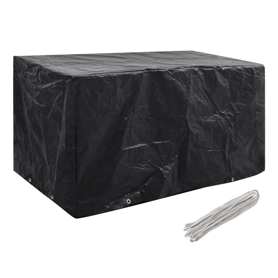 Cette housse de mobilier de jardin de haute qualité convient à la protection de votre mobilier en rotin contre la poussière, le vent, la pluie et les rayons UV toute l'année. Elle peut également être utilisée pour protéger des bancs ou des tables dans le jardin. La housse est faite de polyéthylène durable, qui est imperméable à l'eau, résistante aux UV, indéchirable et donc adaptée à un usage quotidien. Elle a 8 œillets en aluminium et une corde de fixation, donc elle s'adaptera mieux à votre meuble. La livraison comprend 2 housses de salon de jardin. Remarque : ce produit n'est pas 100 % étanche. Ainsi, nous vous recommandons de le traiter avec un spray imperméabilisant pour une meilleure fonction d'imperméabilité.