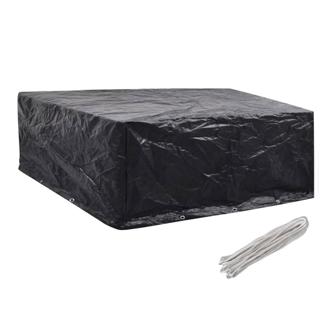 Cette housse de mobilier de jardin de haute qualité convient à la protection de votre mobilier en rotin contre la poussière, le vent, la pluie et les rayons UV toute l'année. Elle peut également être utilisée pour protéger des bancs ou des tables dans le jardin. La housse est faite de polyéthylène durable, qui est imperméable à l'eau, résistante aux UV, indéchirable et donc adaptée à un usage quotidien. Elle a 10 œillets en aluminium et une corde de fixation, donc elle s'adaptera mieux à votre meuble. La livraison comprend 2 housses de salon de jardin. Remarque : ce produit n'est pas 100 % étanche. Ainsi, nous vous recommandons de le traiter avec un spray imperméabilisant pour une meilleure fonction d'imperméabilité.