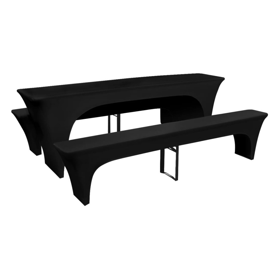 Housses de table et bancs Extensibles 3 pcs Noir 220x50x80 cm