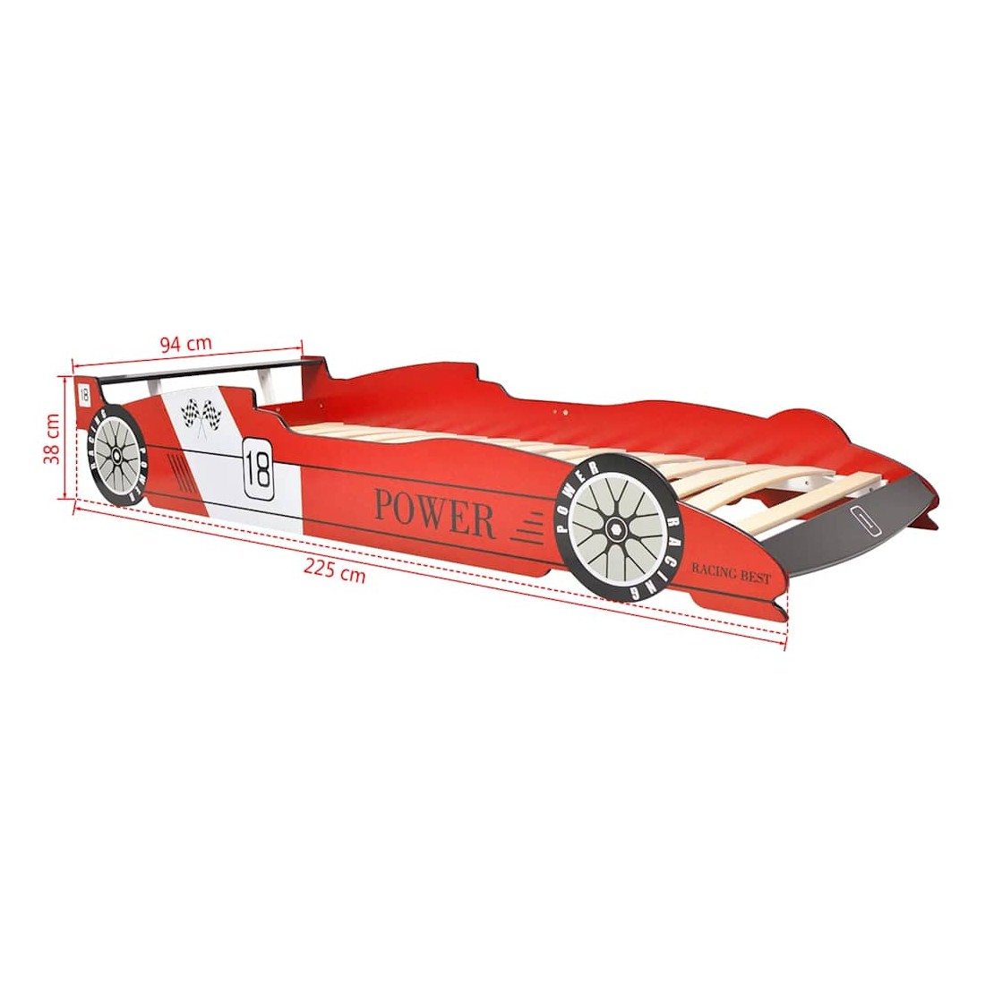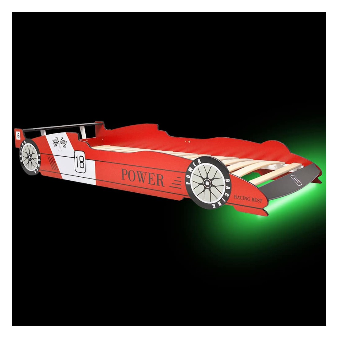 Lit voiture de course pour enfants avec LED 90 x 200 cm Rouge